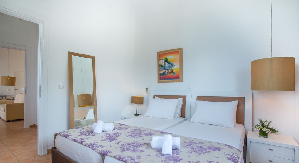 5 bedrooms (Two doubles, three twins) each with ensuite bathroom (shower, hair-dryer) and air-conditioning.