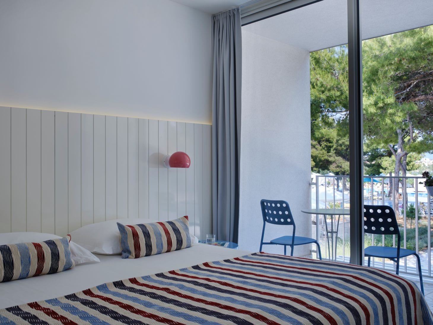This stylish and colourful 70.5m² suite surrounds families in a rainbow of comfort, luxury and fun, where balconies serve front-row seats to endless Adriatic vistas. Parents retreat to their plush double-bedded haven while young explorers conquer their twin-bed kingdom, and the living space with its convertible sofa and playful bunk beds—transforms effortlessly from a sunny play zone by day to a cozy dreamland by night. Two plush bathrooms with showers and thoughtful safety touches make every moment carefree, wrapping two adults and three children under 12 in a joyful bubble. Is your family ready to write its perfect holiday story?