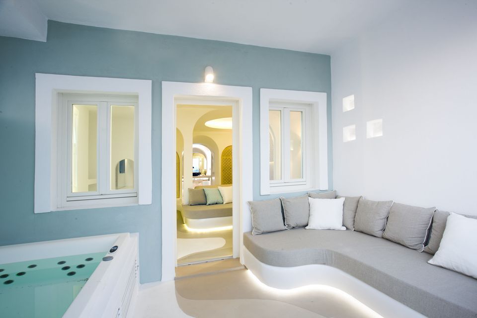 Total indoor size app. 27 - 33 sq.m.. Bedroom, sitting area, private balcony, private outdoor jacuzzi, sea view, bathroom with shower.
