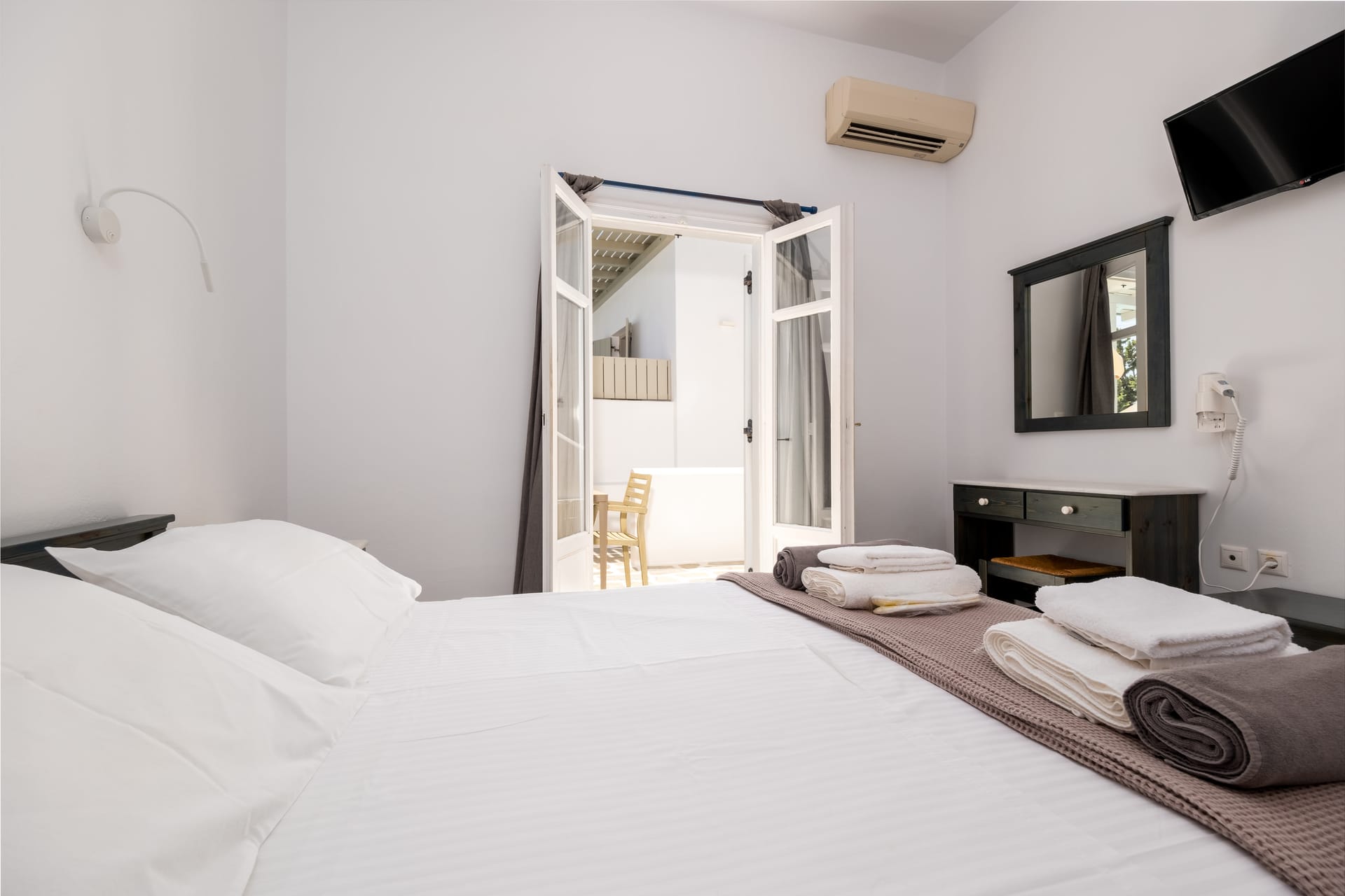 Our Senior Apartments are comfortable enough and can accommodate 4 people. Ideal for families of 4, as the parents can have their own bedroom with a double bed and the children their own big space, or even for group of friends.Consists of one bedroom with double bed, a big separate living room with kitchen, a sofa that can be transformed into two regular beds for adults, bath and veranda from the side of the swimming pool. It also includes fridge, telephone, A/C and LCD T.V. in both rooms, satellite channels, hairdryer, private safety box and free Wi-Fi.