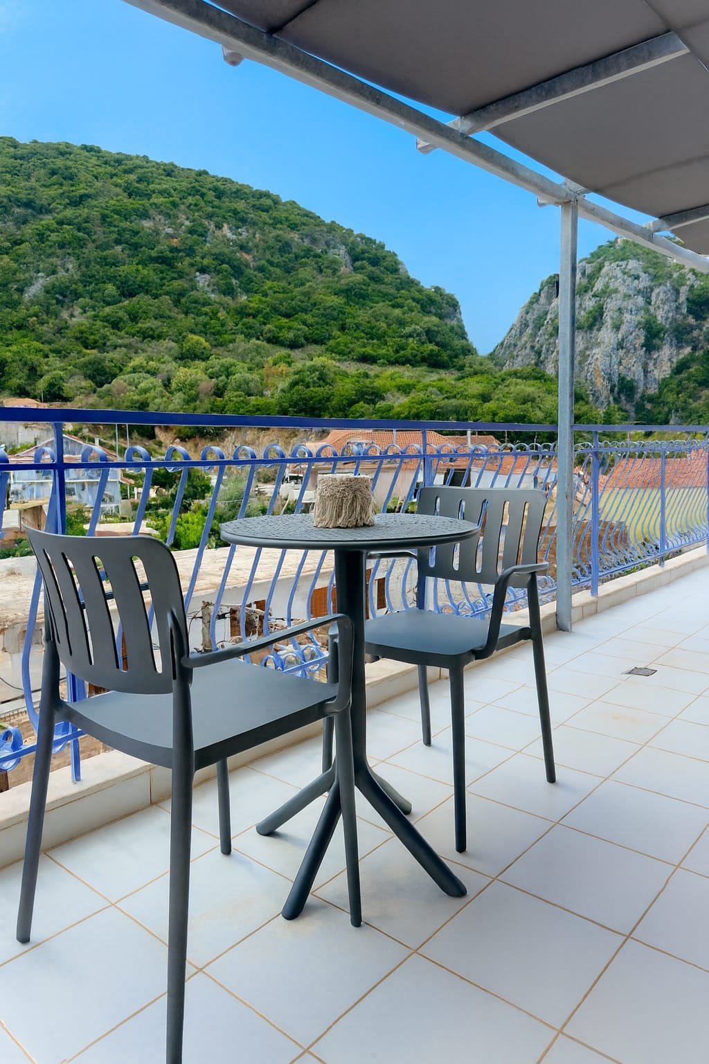 Tastefully decorated kefalonia studios with a furnished balcony overlooking the sea by side and the surrounding mountains.