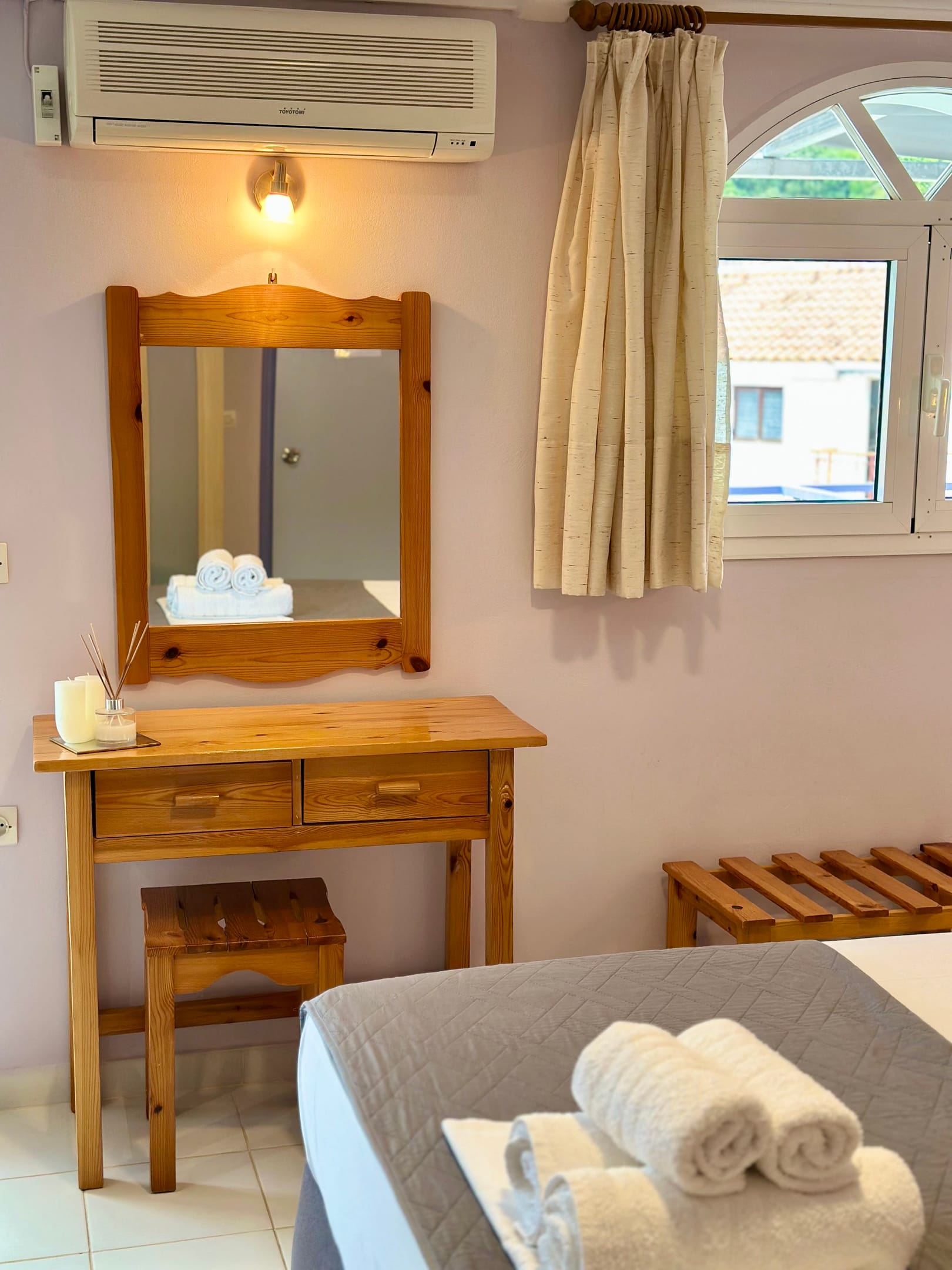 Tastefully decorated kefalonia studios with a furnished balcony overlooking the sea by side and the surrounding mountains on the other side.