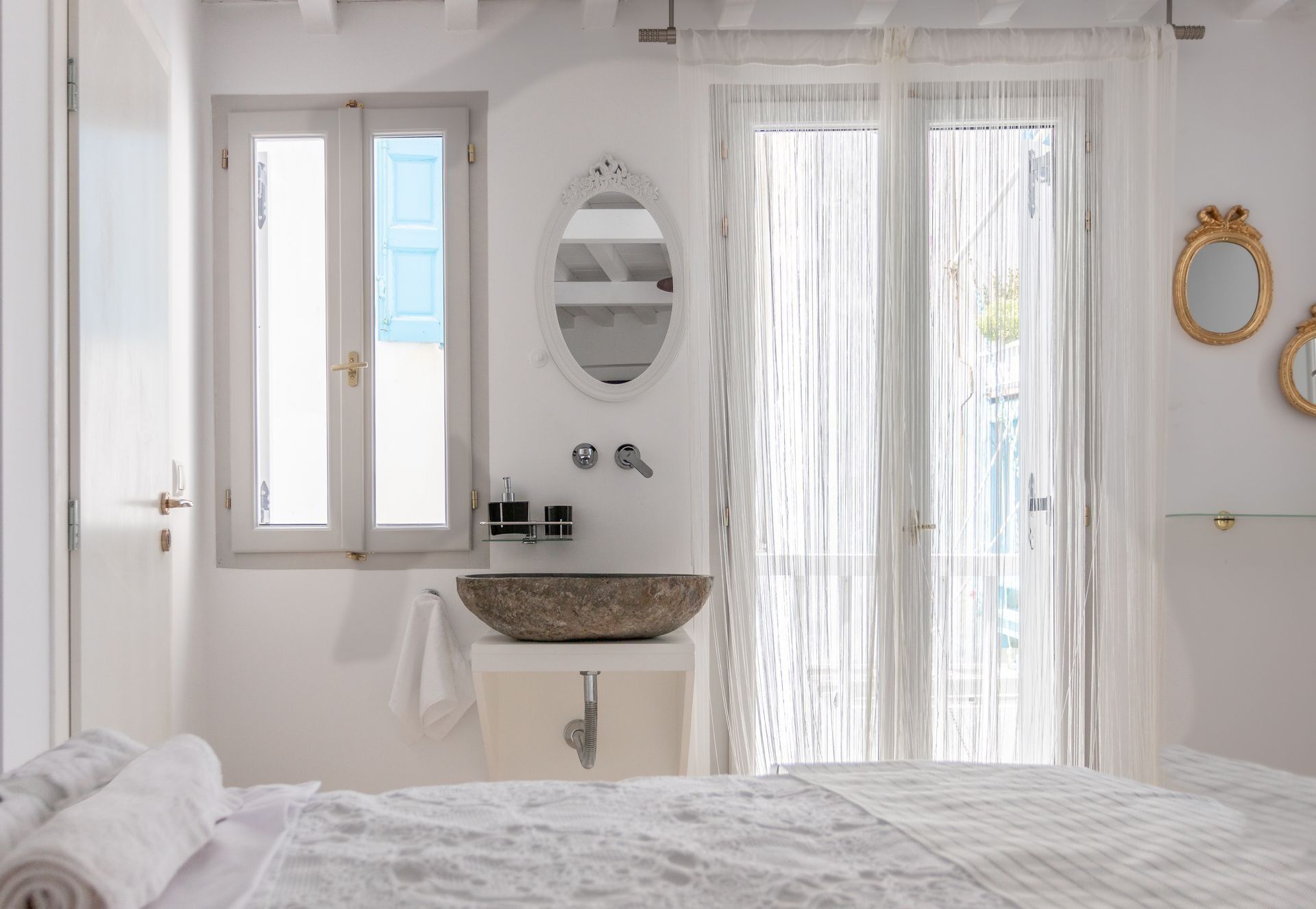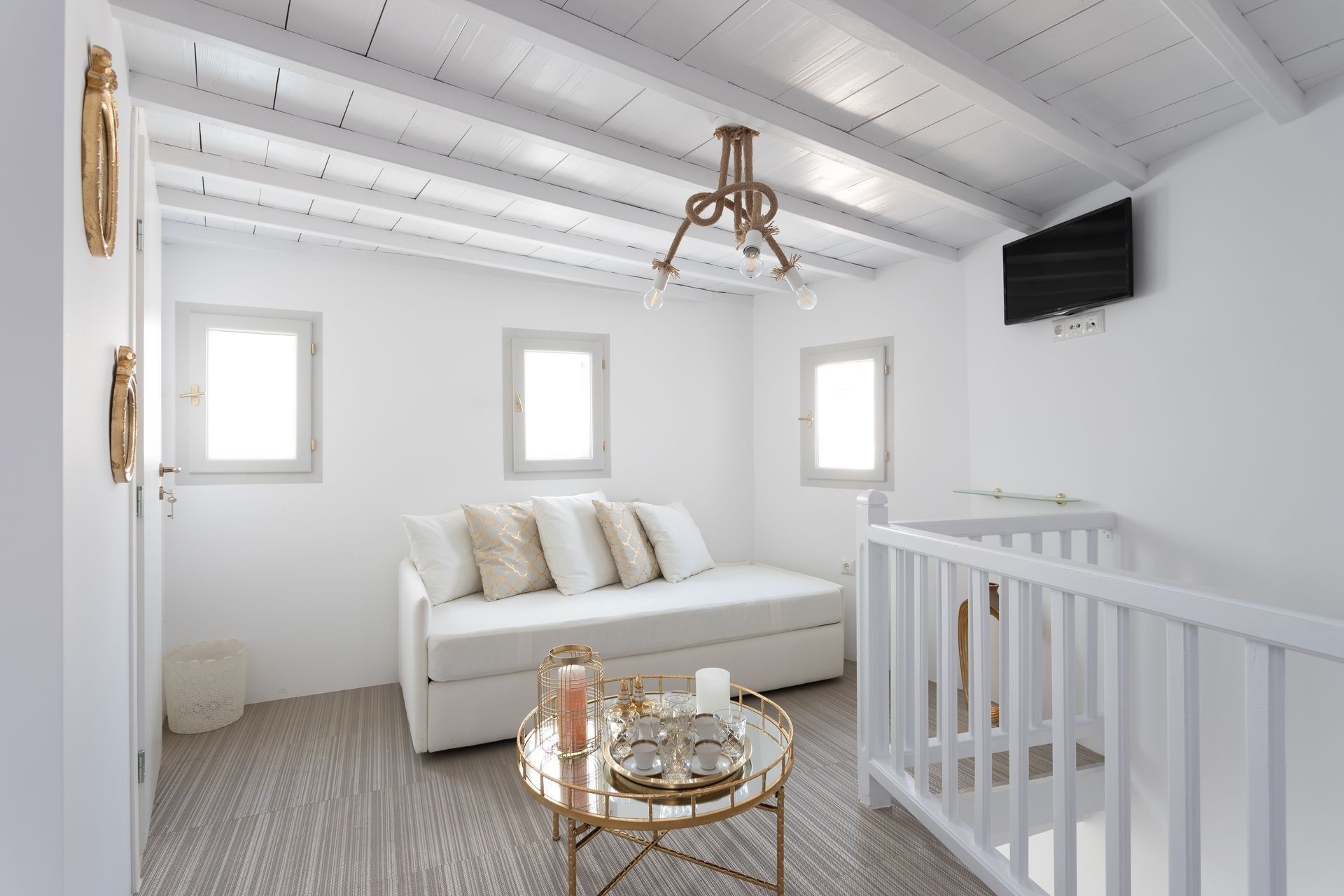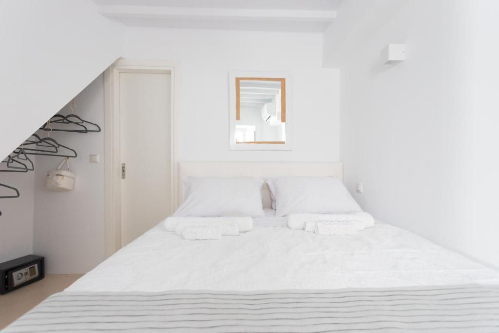It is a completely renovated building ,split across three levels of living space, in a calm and welcoming Cycladic style with carefully selected decor details. Suitable for hosting up to six people, it features two double bedrooms and a living room with a sofa that can be converted into a bed. At your disposal will be 2 private bathrooms and a private wc, while premium bed linen and towels are provided. The first level has a quaint balcony with town views, whereas a ladder connects the second floor to the rooftop terrace which will become guests favourite place to relax, as it boasts panoramic island views. The rooms have separate private entrances, therefore maintaining some autonomy, while all guests can share the roof terrace with its panoramic island views.