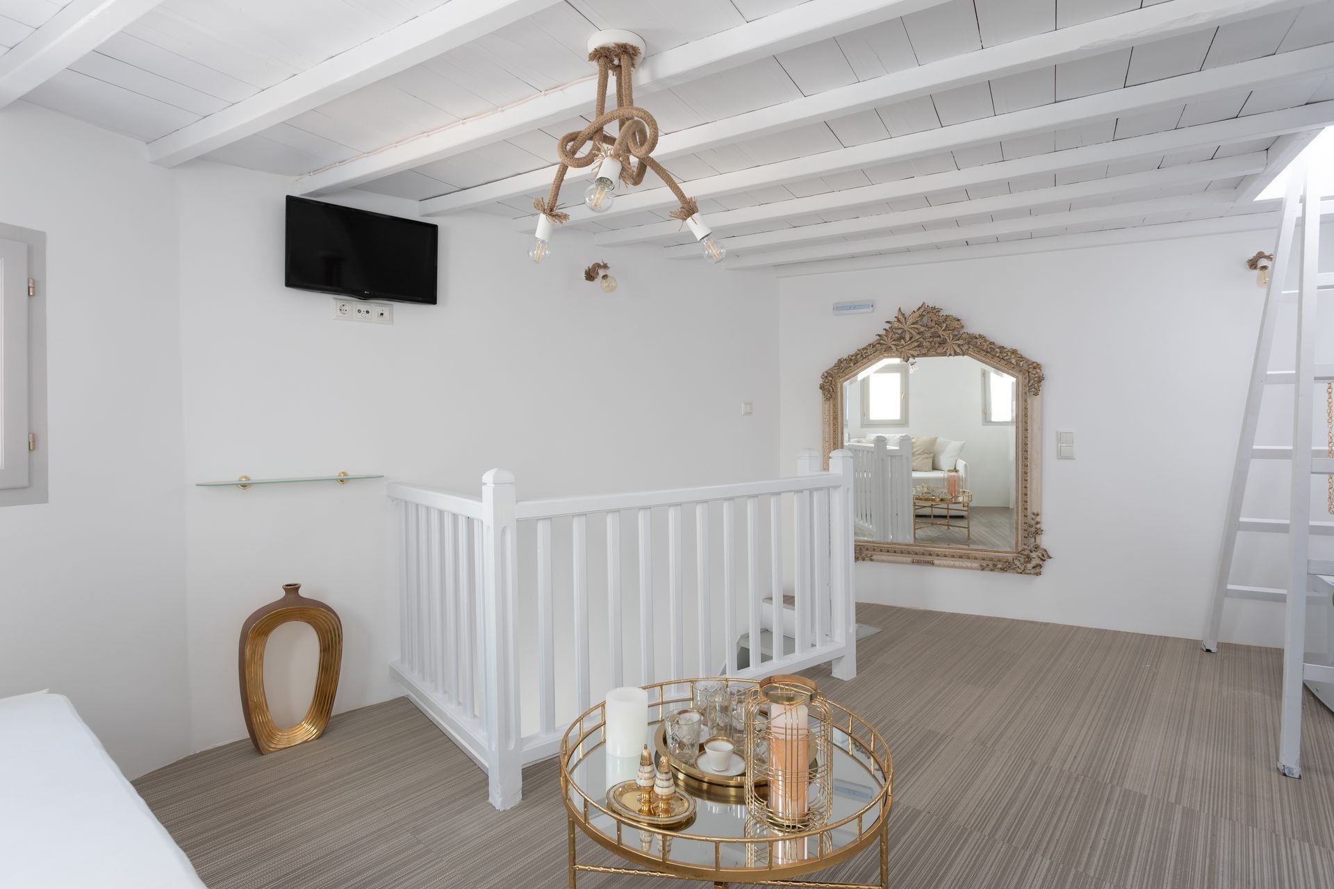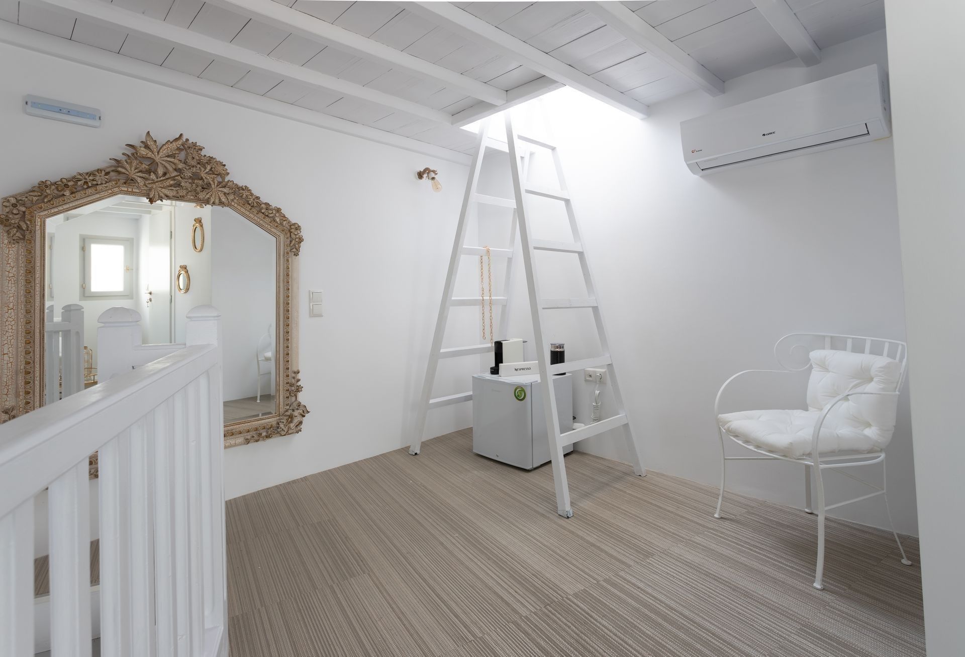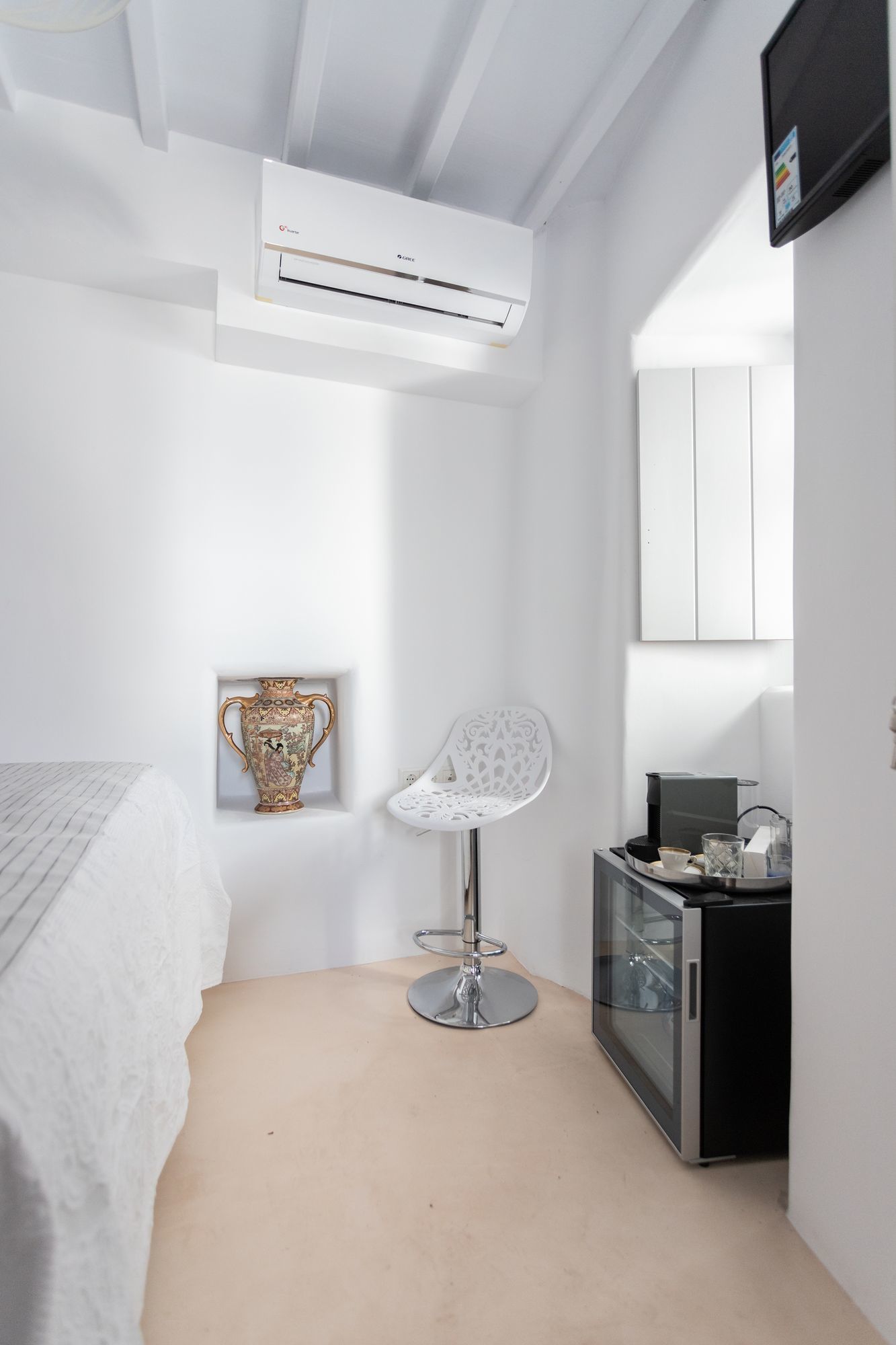 It is a completely renovated building ,split across three levels of living space, in a calm and welcoming Cycladic style with carefully selected decor details. Suitable for hosting up to six people, it features two double bedrooms and a living room with a sofa that can be converted into a bed. At your disposal will be 2 private bathrooms and a private wc, while premium bed linen and towels are provided. The first level has a quaint balcony with town views, whereas a ladder connects the second floor to the rooftop terrace which will become guests favourite place to relax, as it boasts panoramic island views. The rooms have separate private entrances, therefore maintaining some autonomy, while all guests can share the roof terrace with its panoramic island views.