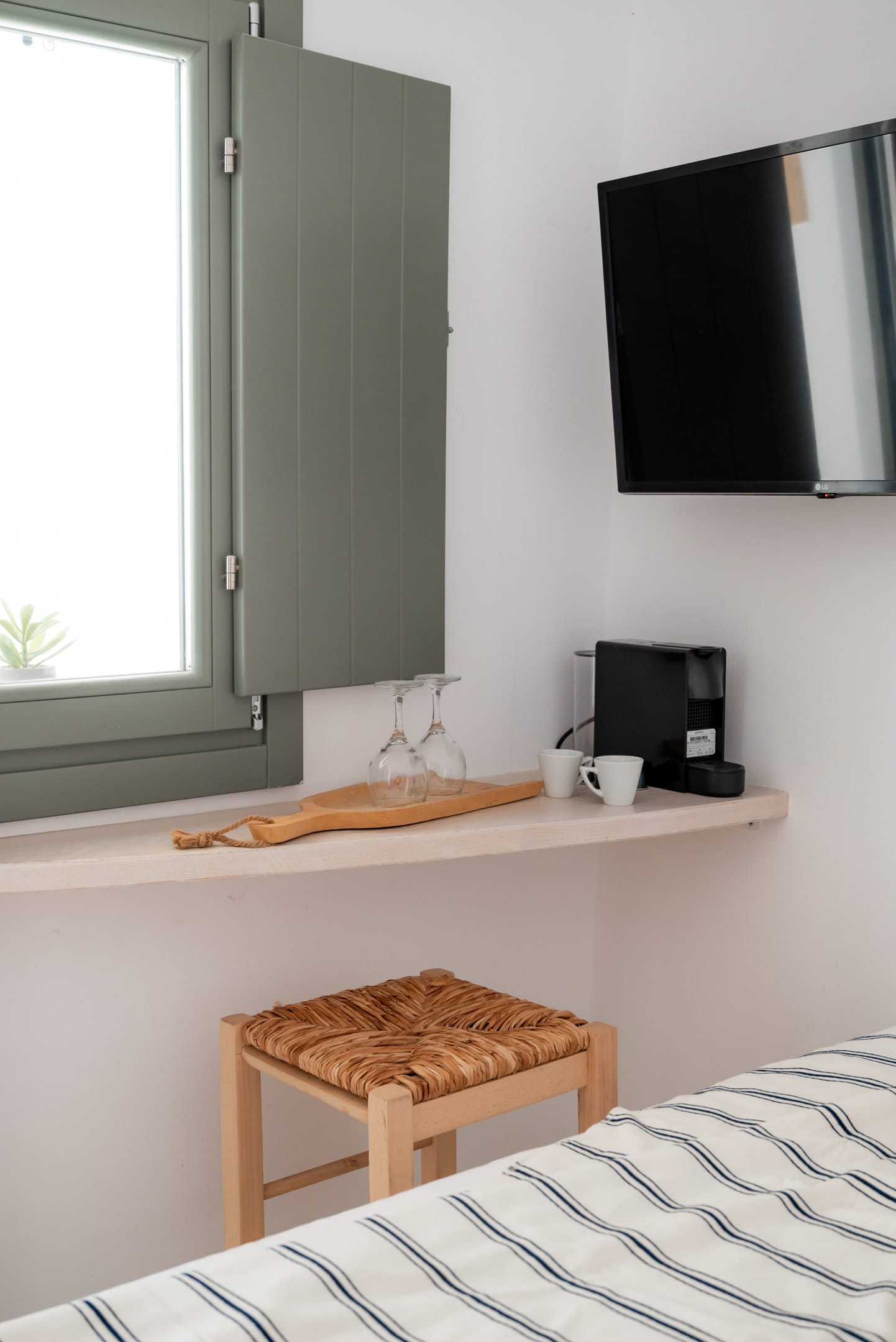 White Alley Studio: Offering a sun terrace with wondeful view, White Alley Studio is situated in the heart of the cosmopolitan Mykonos Town amongst the white-washed houses, just a few metres away from restaurants, bars, shopping areas and night life. It is a completely renovated space of 15 m² in a calm and welcoming Cycladic style with carefully selected decor details. At your disposal will be a double bed, open wardrobe and private bathroom with shower, while premium bed linen and towels are provided.