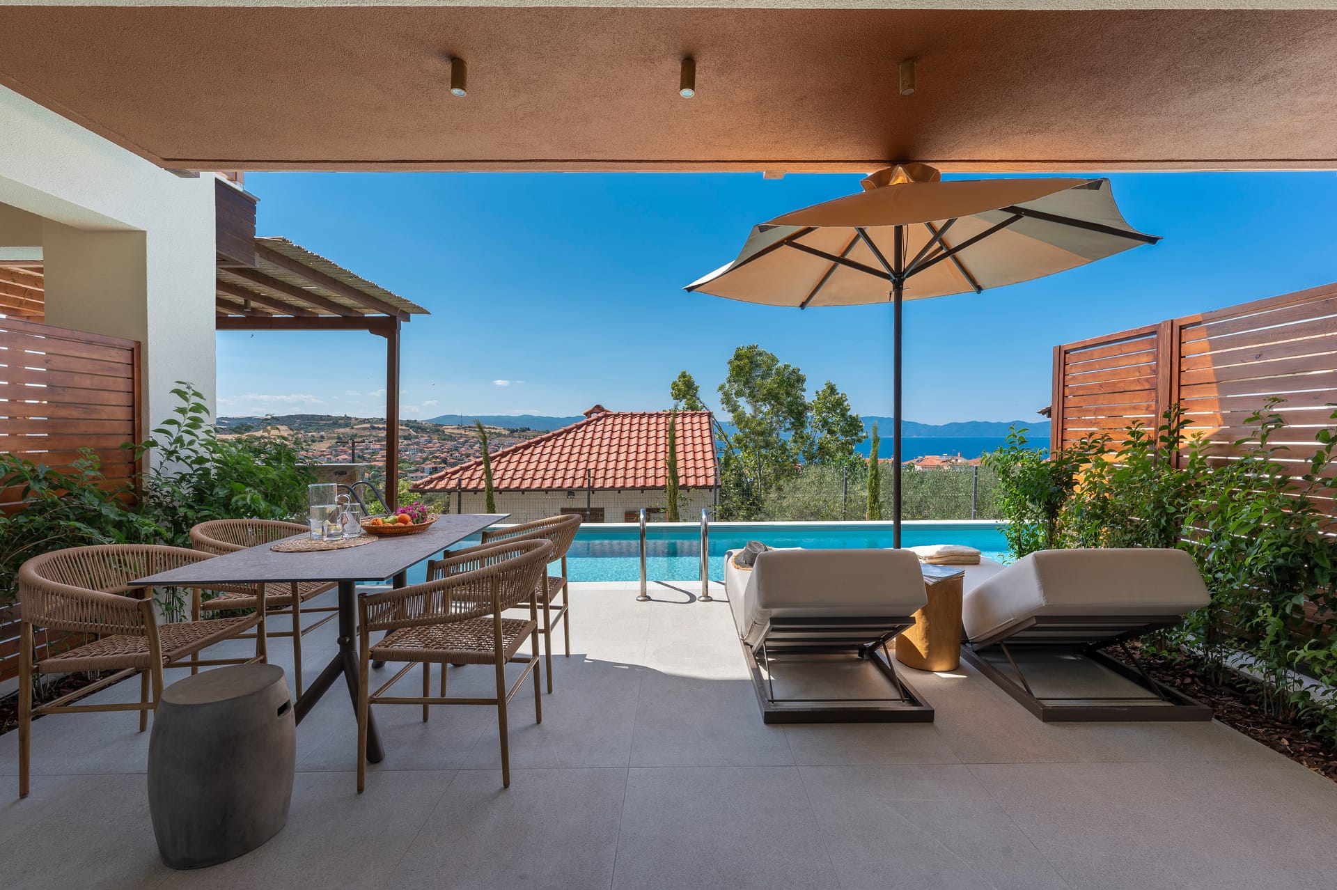 The Elegant Suite | Sea View can accommodate up to 4 persons in one double bed (160x200) and one double sofa bed in the living room (160x200).