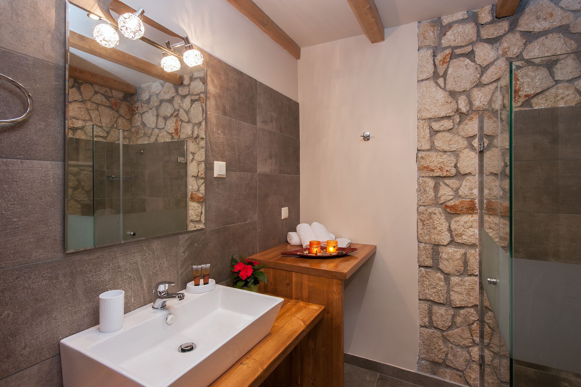 Luxury maisonettes have been finished to a high standard of modern lifestyle living. it sleeps two in an eco-style first floor loft accessed by a lovely wooden staircase. A king size bed with a mattress where you can choose soft or hard side up.The ground floor features a family size sofa that can easily turn into sleeping space for three. A fully equipped modern kitchen with dining table and a bathroom are also on the ground floor. A glass front fireplace is an additional welcoming feature in the open plan living space. Large patio doors open up onto a private veranda that is part of a fragrant orange tree garden. Flat screen smart TV’s are on both floors with secure internet coverage throughout. An energy saving heat pump provides pleasant and effective cooling and heating all year round.