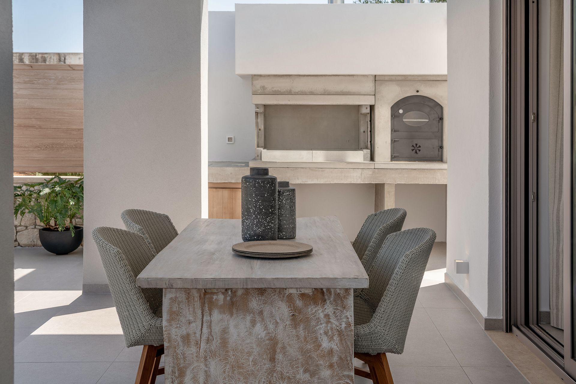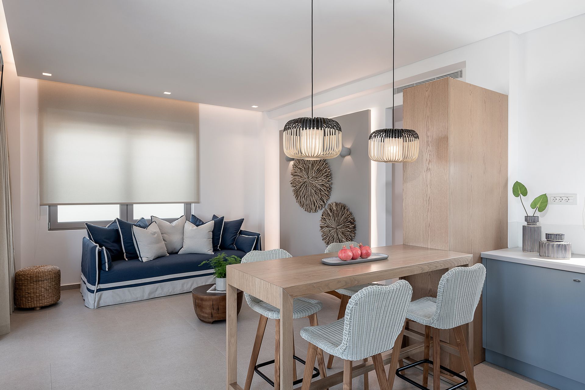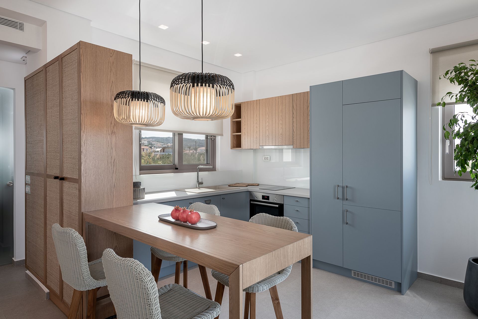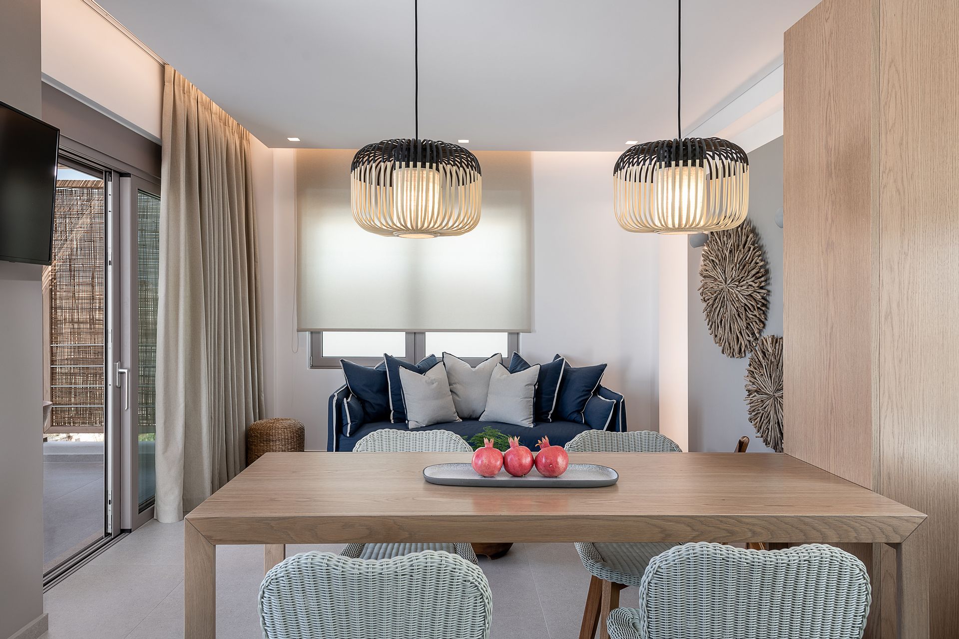 Kritamos Villa measures 100 sq.m and consists of two bedrooms (one with a queen bed and a single bed and the other with two single beds), living room, dining area, fully equipped kitchen, two bathrooms and spacious private veranda with comfortable lounge and dinning area.