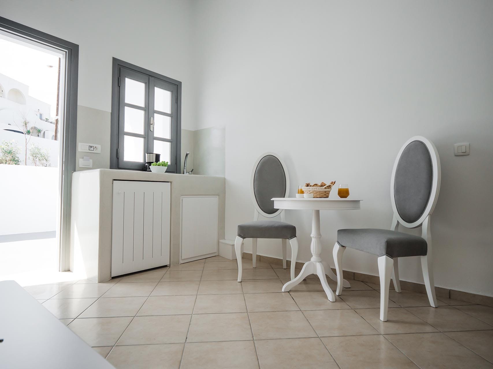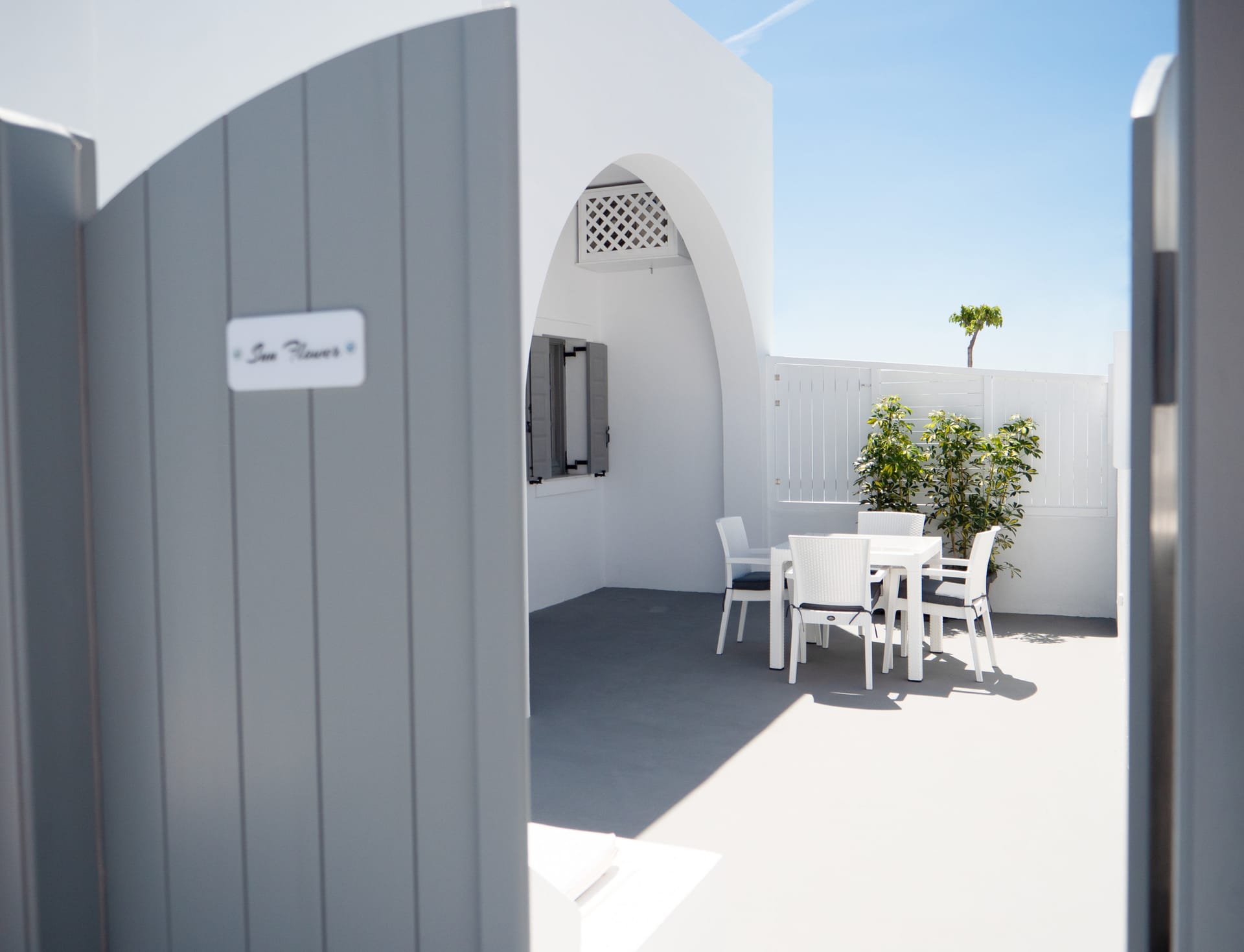 Sun Flower Suite with Outdoor Heated Jacuzzi stylishly decorated suite (37 sq.m.) has a private ample veranda with a private outdoor heated jacuzzi. It features an air conditioner, flat-screen TV, a kitchen for cooking, a built-in bed, and a seating area with 2 built-in sofa beds that can accommodate extra guests.