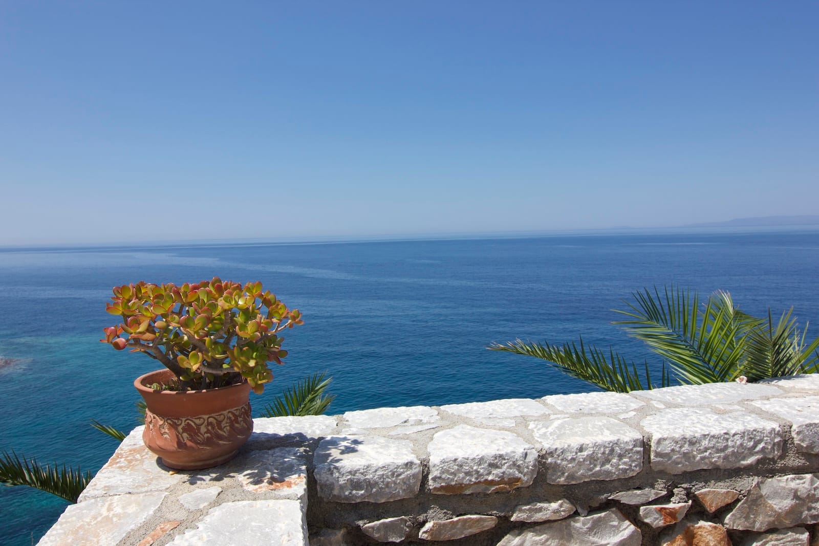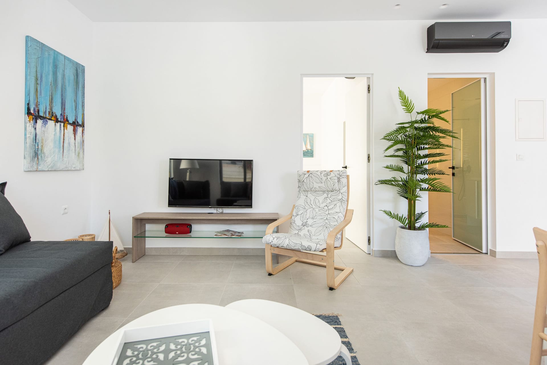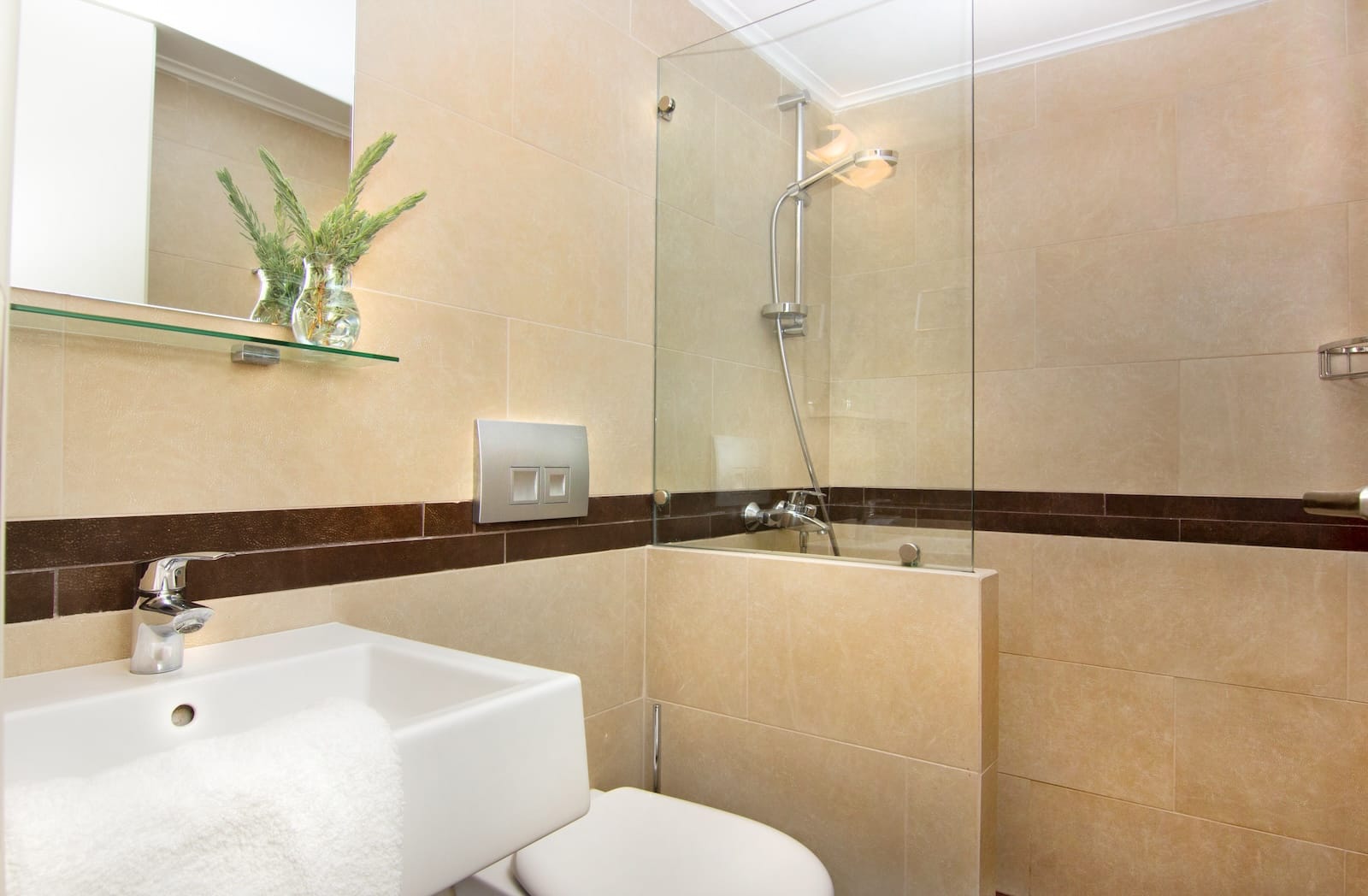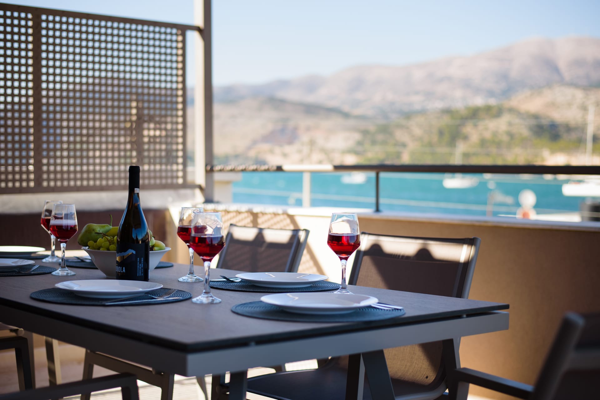 The double bedroom has French doors to the balcony and an en-suite marble bathroom. The twin bedroom enjoys sea views and use of a nearby shower room. Two balconies, including a large rear-facing one with dining furniture and sun loungers, make this the perfect spot to relax and soak up the Mediterranean sunshine.