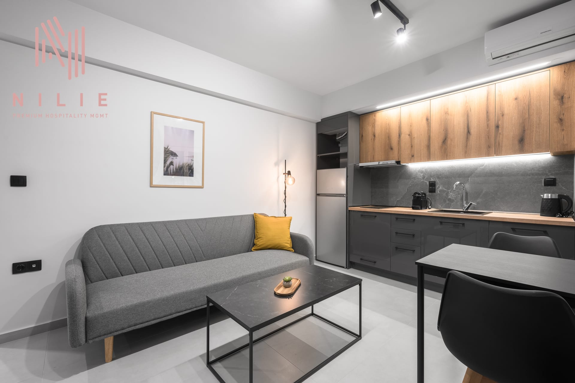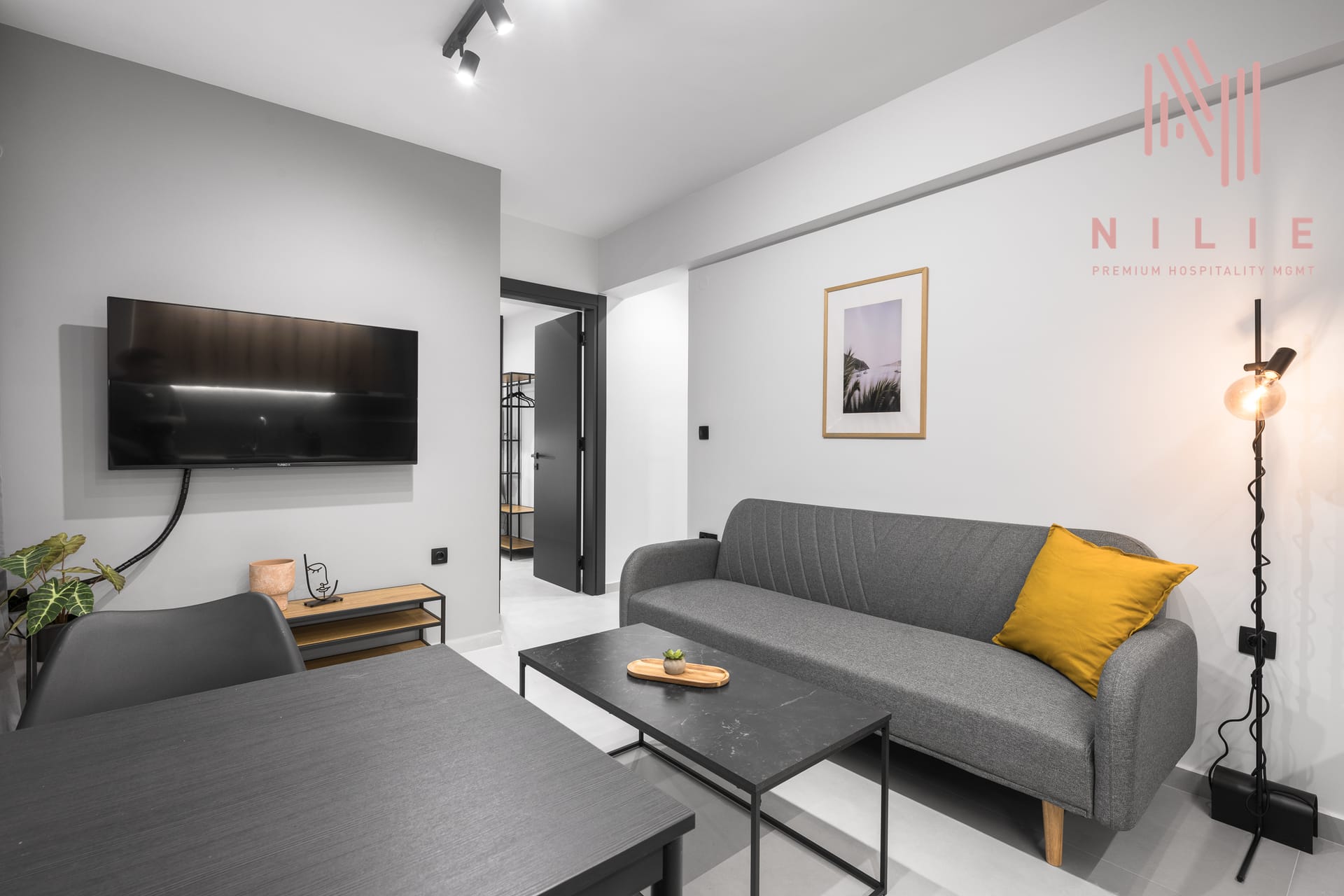 This delightful ground-floor, two-bedroom apartment is located in the prestigious Apollo Heights village within Aphrodite Hills Resort. The open-plan living and dining area is bright and inviting, featuring a fully equipped modern kitchen and comfortable seating for four, ideal for meals and relaxation.