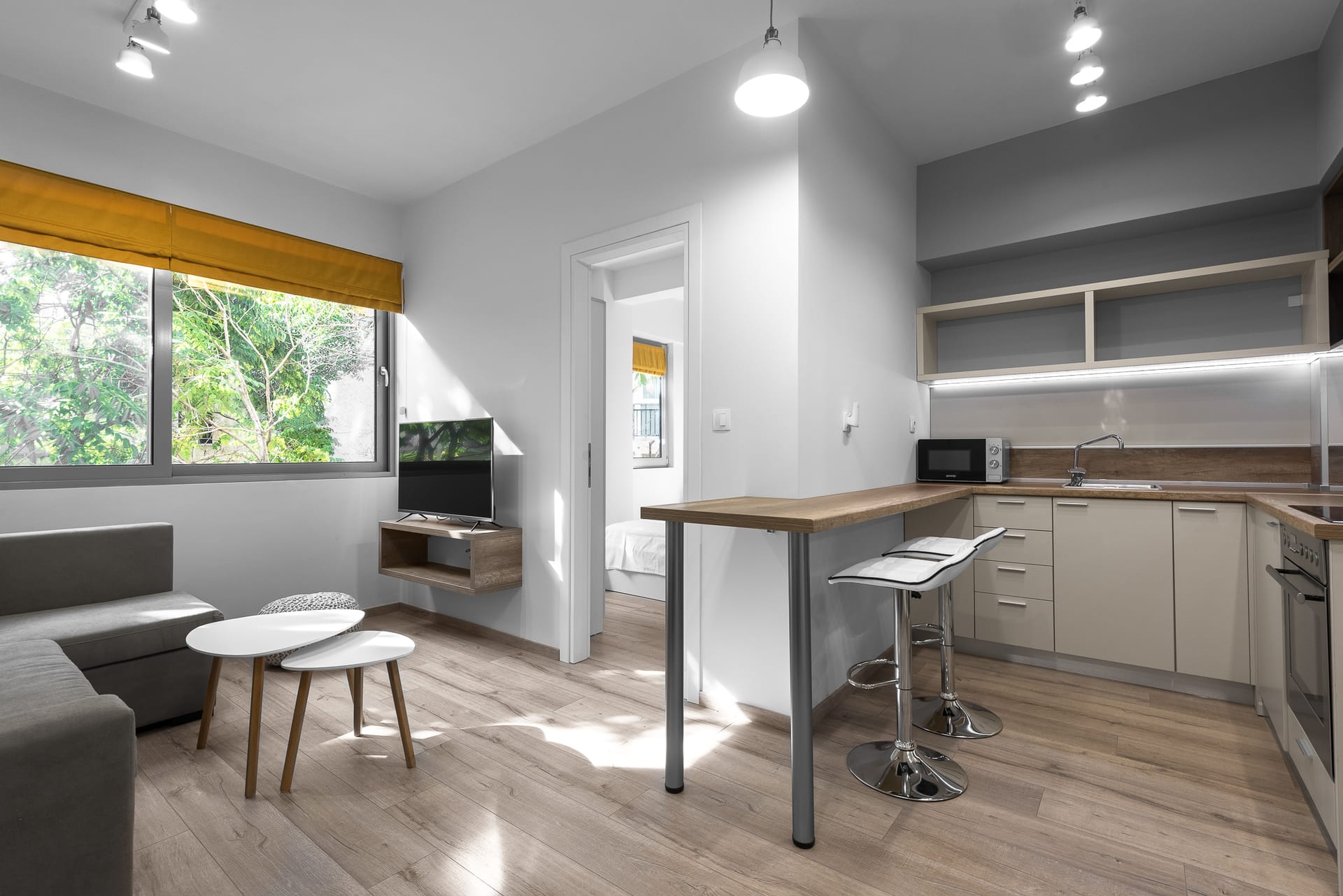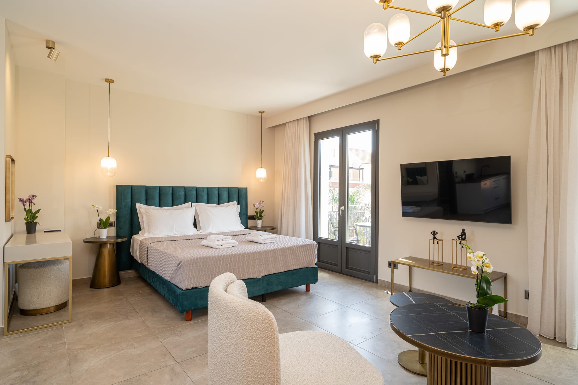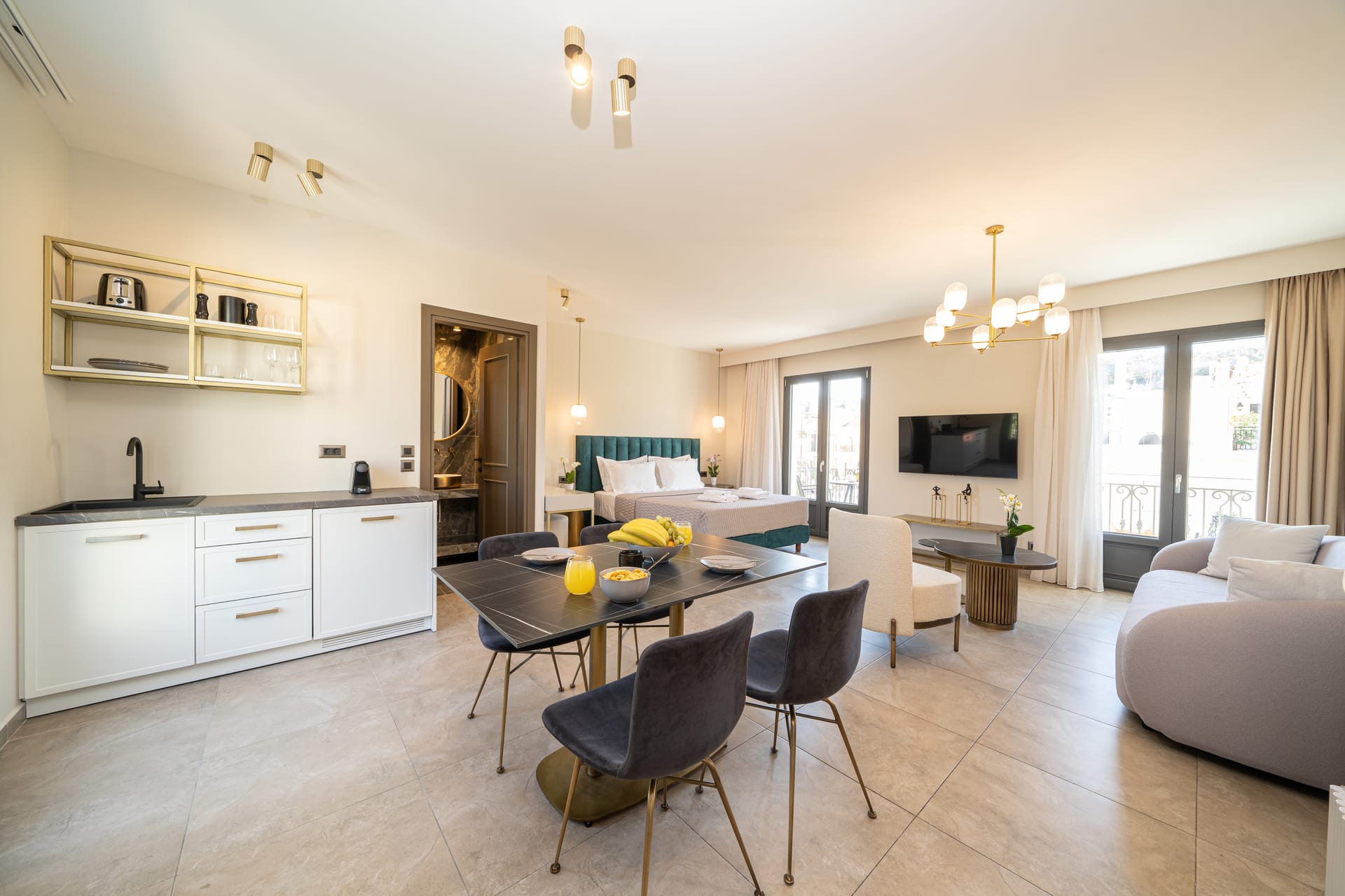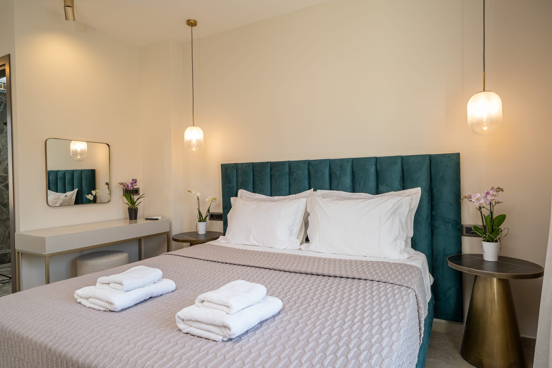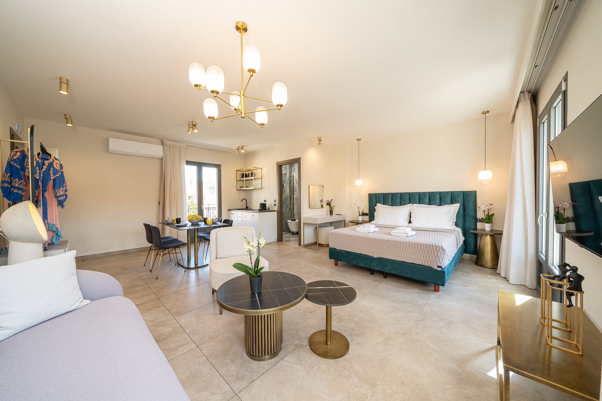 This modern two-bedroom apartment in Zephyros Village offers spacious living and a large terrace with panoramic mountain, valley, and sea views,perfect for families or two couples. It’s just steps from the communal pool and within easy reach of all resort amenities.