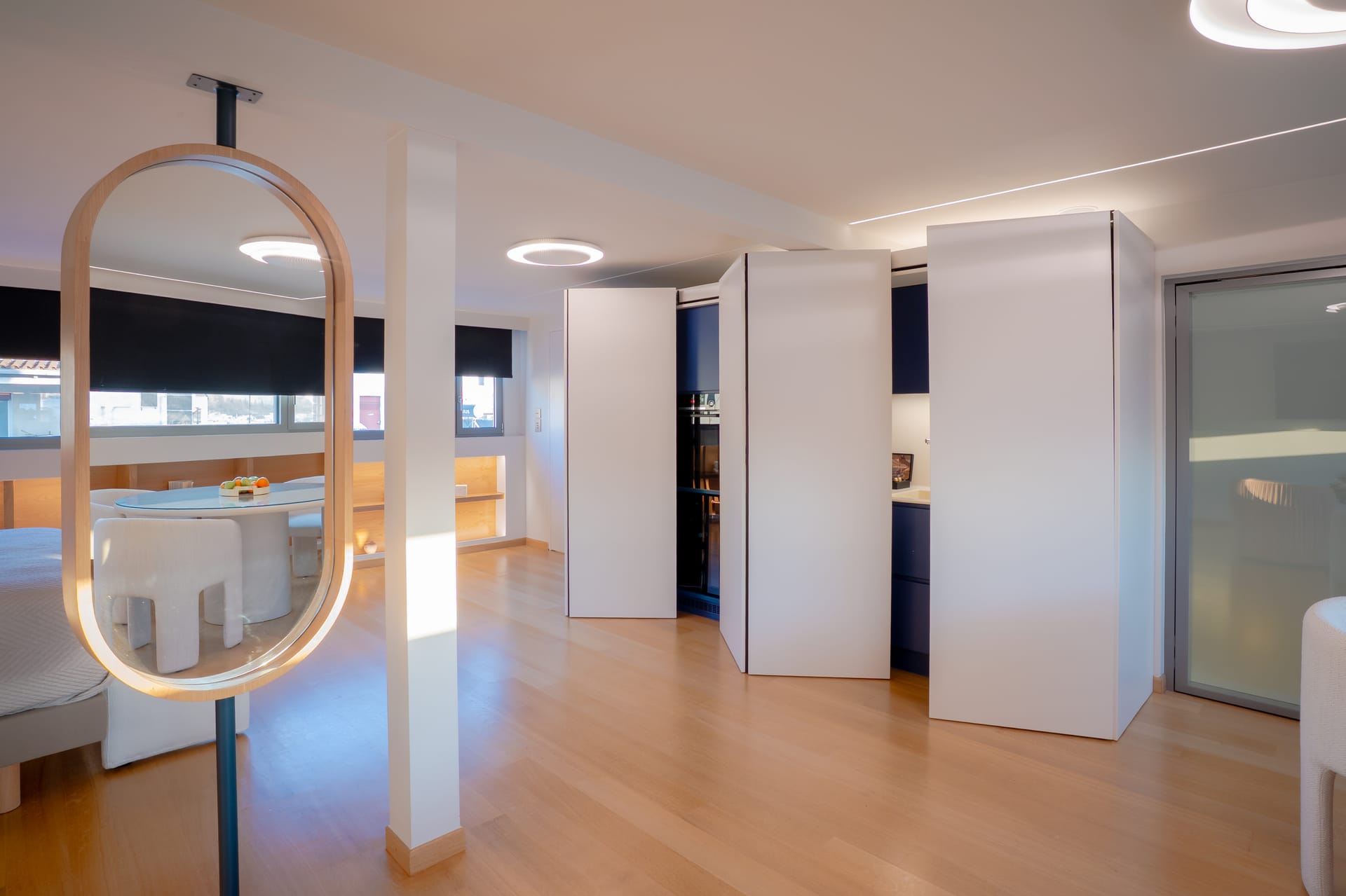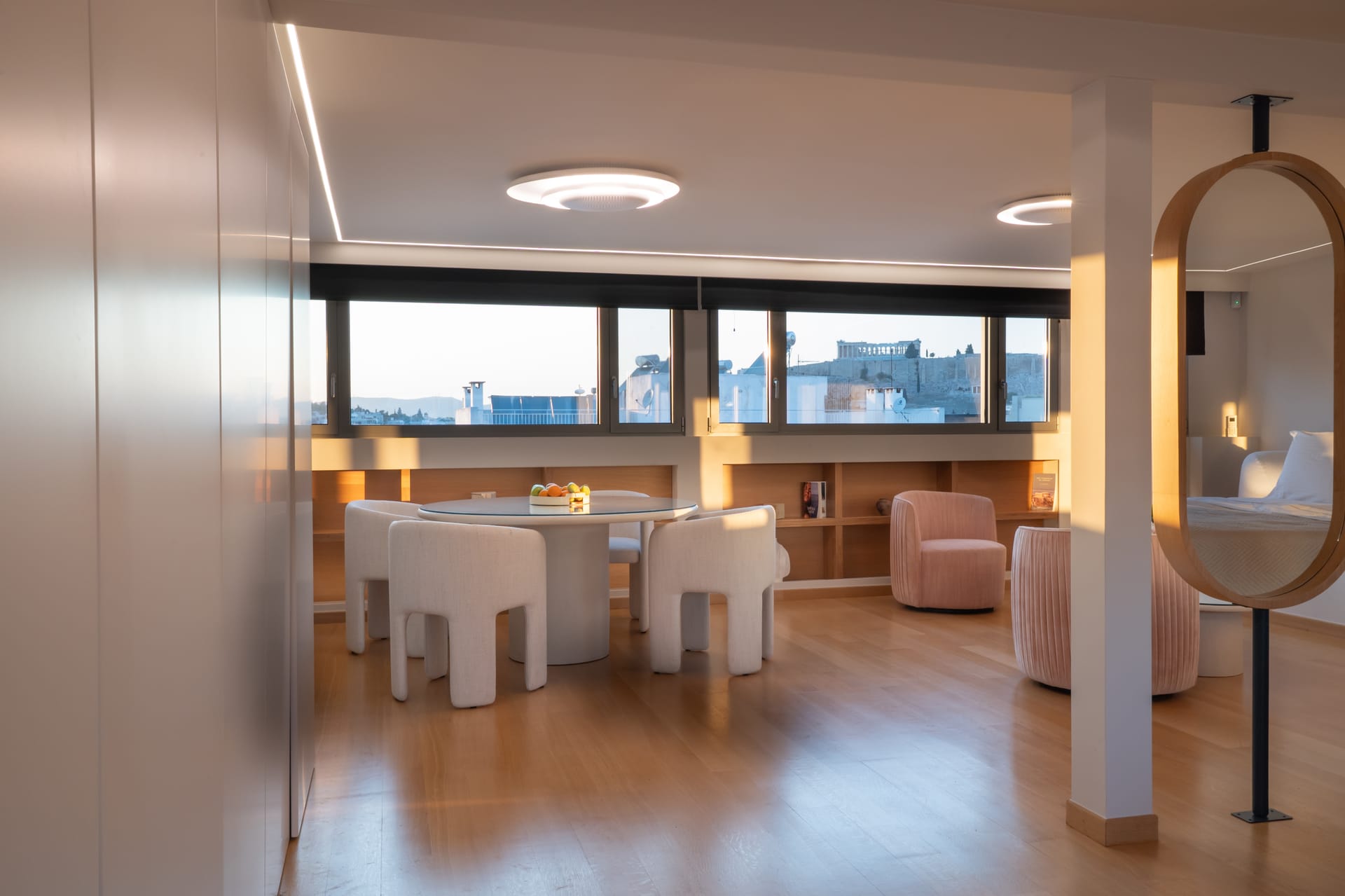 Spanning 75 sq.m, the apartment features sleek, modern interiors and high-end finishes throughout. Enjoy the luxury of a Cocomat bed, where you can unwind in pure comfort, surrounded by Guy Laroche linens that add a touch of elegance to the serene bedroom. The bathroom is equipped with premium Korres amenities, ensuring you feel pampered with every use. And the apartment boasts an amazing Acropolis view, adding to the breathtaking atmosphere of this chic, inviting space.
