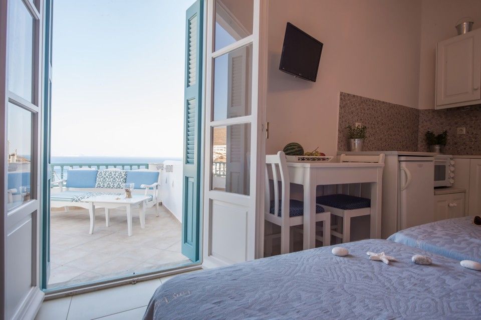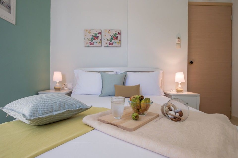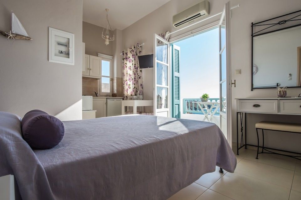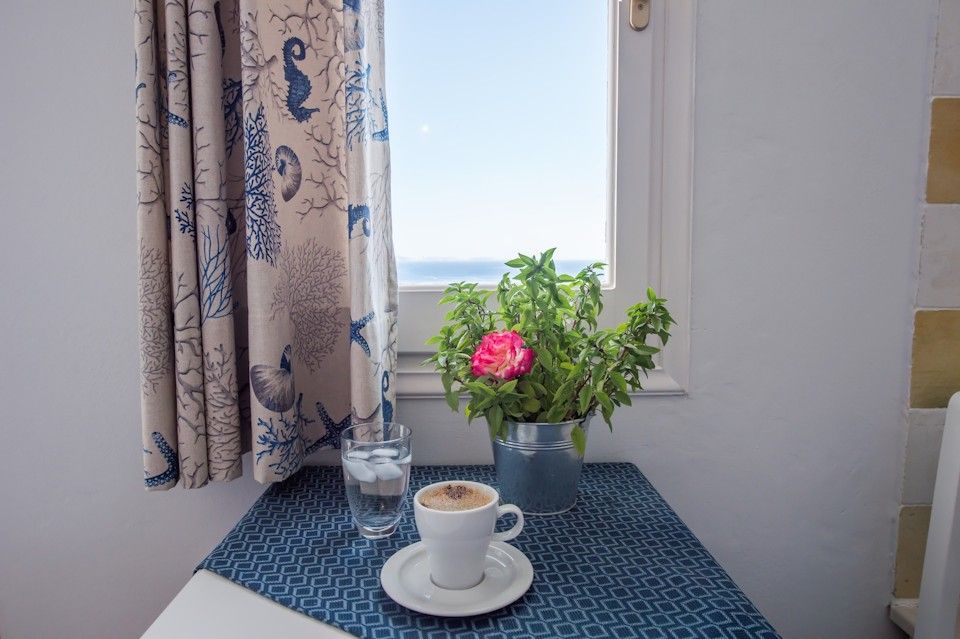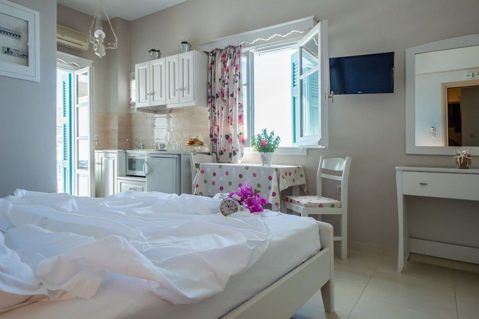 Flat-screen TV, A/C,Kitchenette with coffee/tea making facilities and mini fridge, Safe Deposit Box, Private bathroom with shower, bath amenities and hair-dryer, Separate private balconies with a magnificent Sea and City’s Venetian Castle View, Pleasant surroundings and Daily housekeeping.