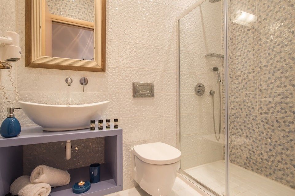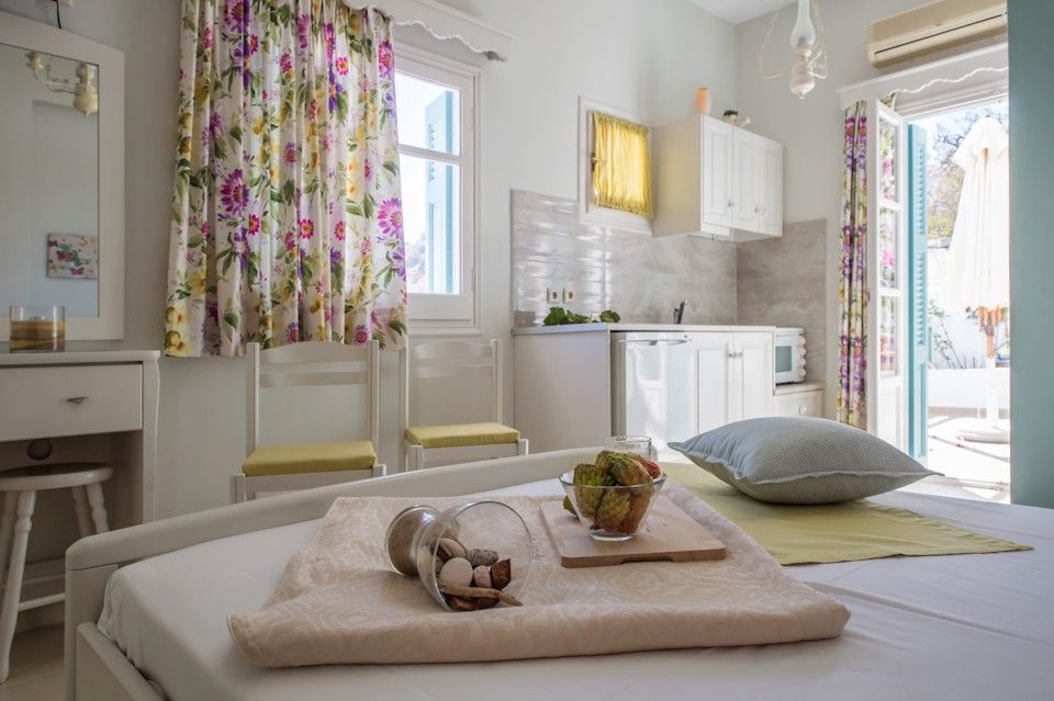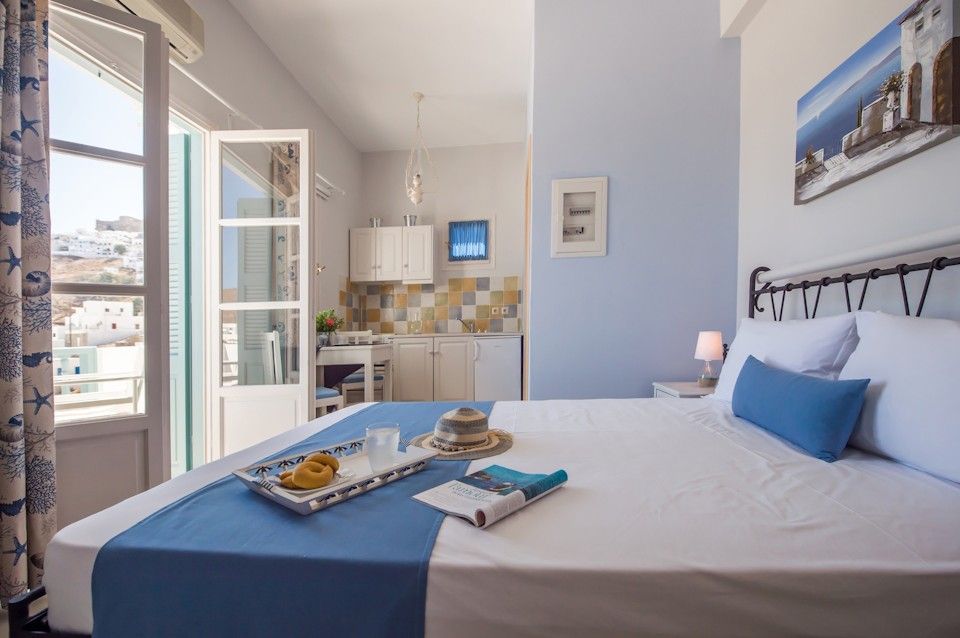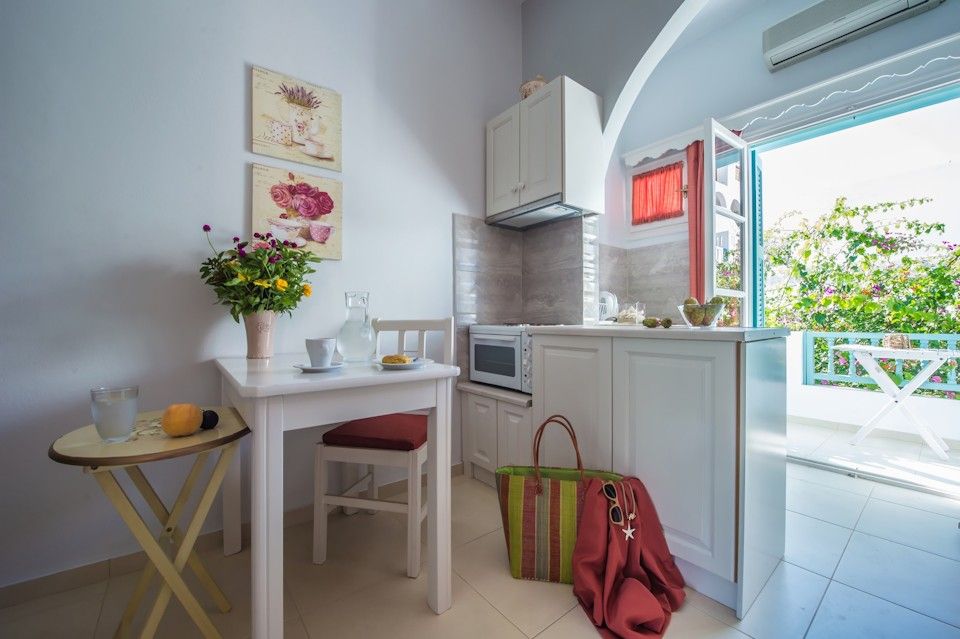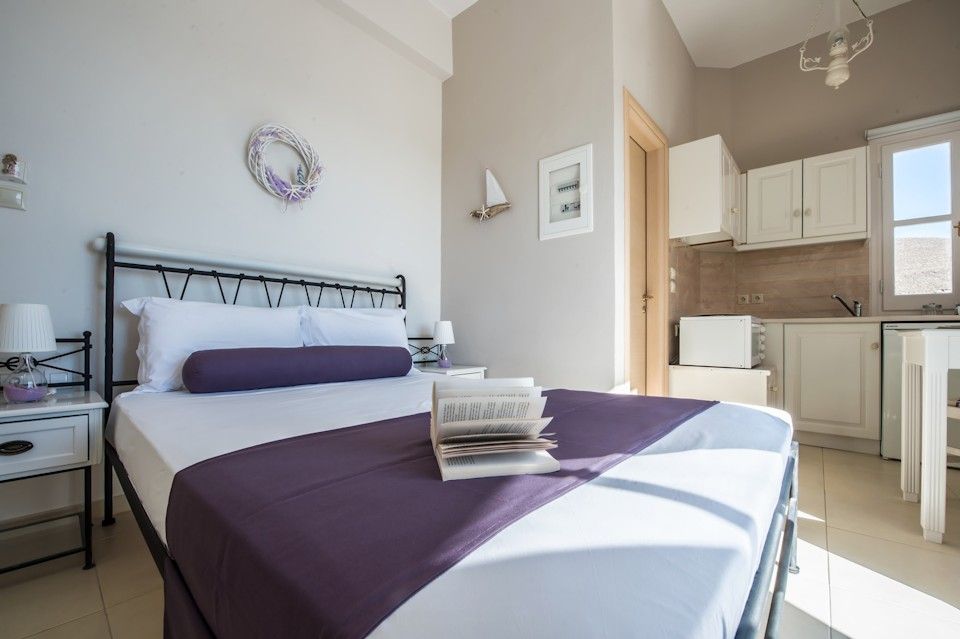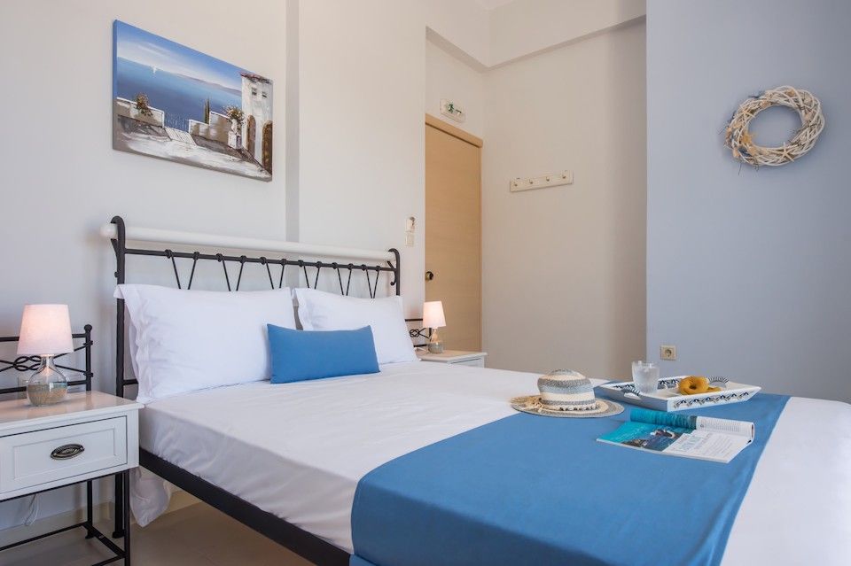 Flat-screen TV, A/C,Kitchenette with coffee/tea making facilities and mini fridge, Safe Deposit Box, Private bathroom with shower, bath amenities and hair-dryer, Separate private balconies with a magnificent Sea and City’s Venetian Castle View, Pleasant surroundings and Daily housekeeping.