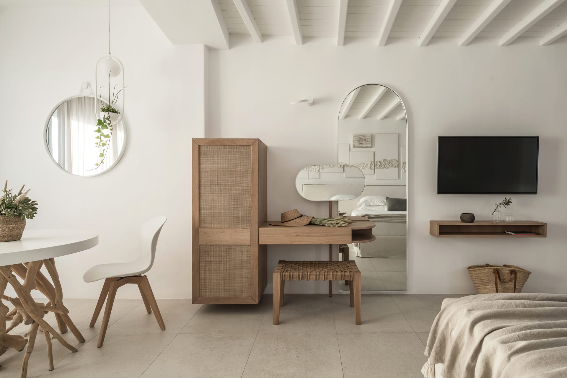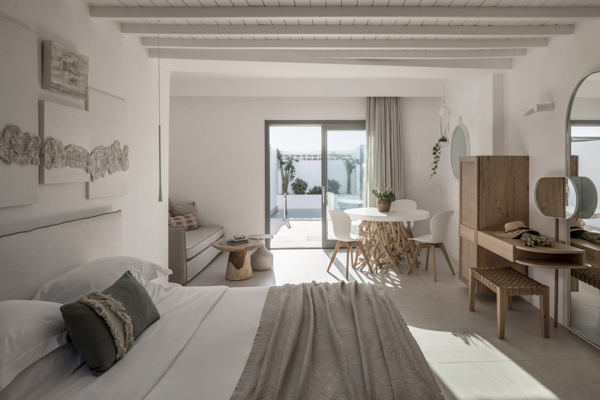 Modern design with natural muted colors offers soft textures beddings, outfitted with Candia Mediterranean mattresses.