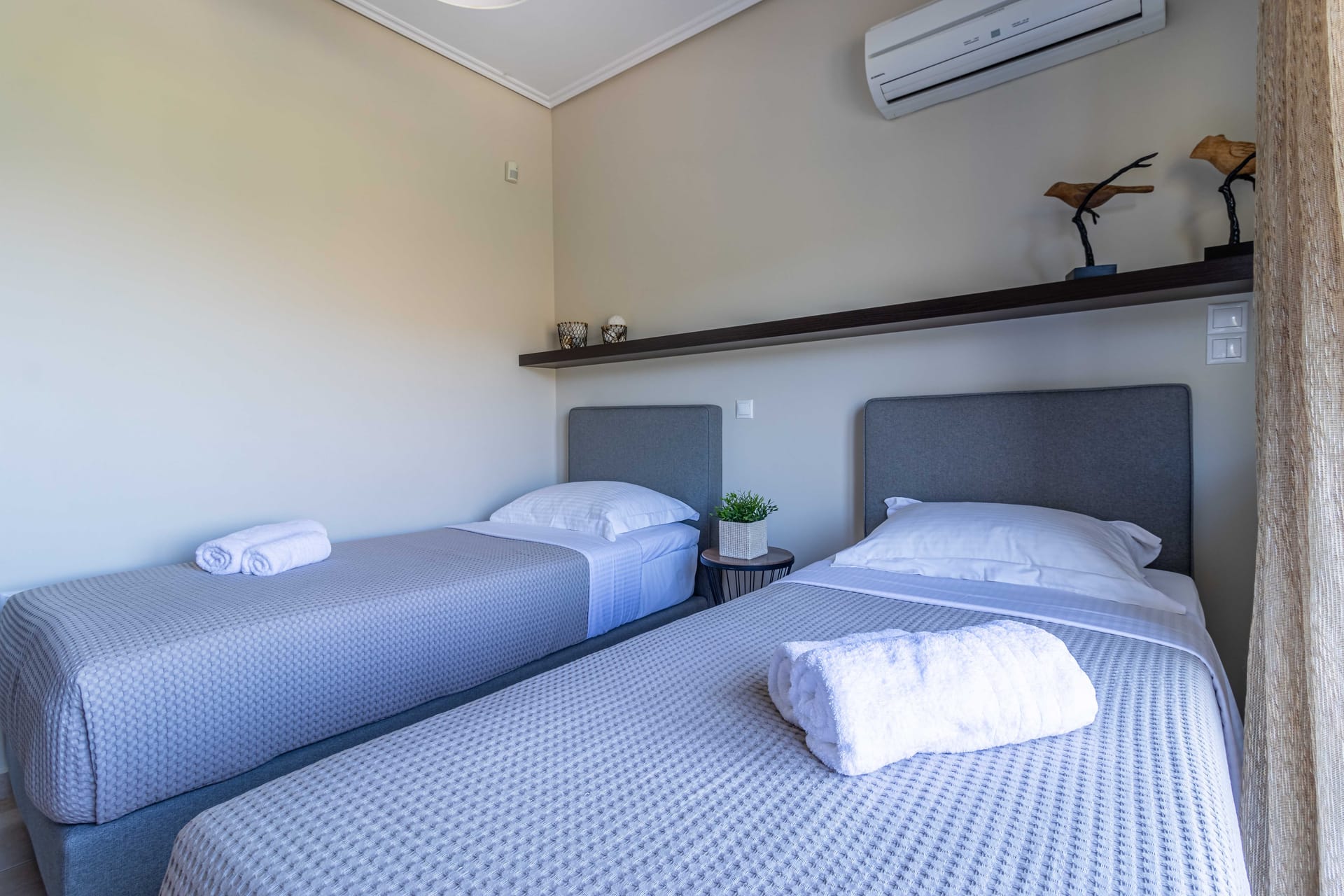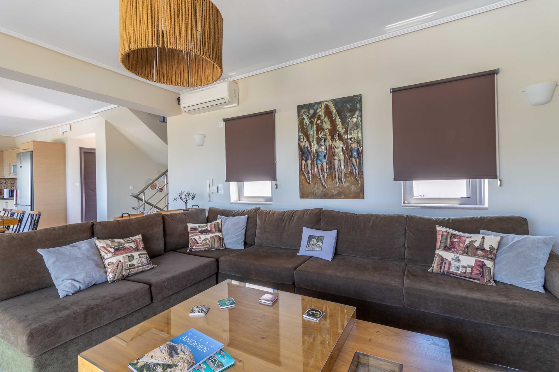 The interiors are designed with sophisticated aesthetic, combining the modern comforts of a country house with the simplicity of a quiet retreat, making the Maisonette the perfect destination for peaceful and relaxing holidays.