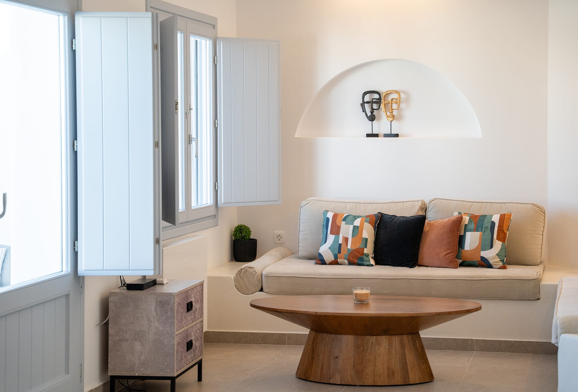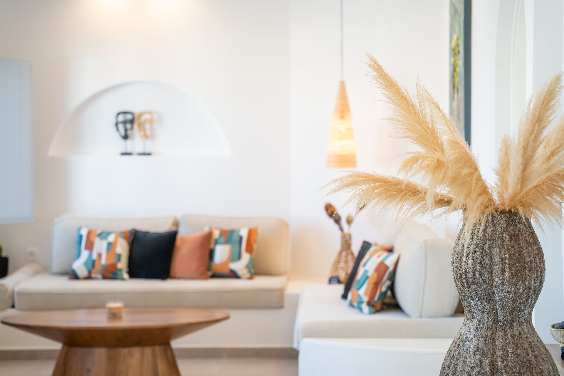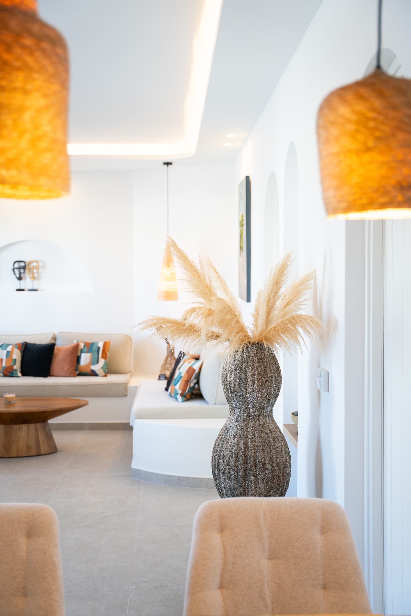 The villa is mainly made of wood, marble, granite and earth tones that complement the surrounding natural world. Traditional carpenters have poured all their skill and dexterity in building the furniture you will enjoy.On the ground floor you will find a spacious, welcoming living room, a fully equipped kitchen decorated with style and skill and a comfortable bedroom with 2 beds, bathroom and shower. On the top floor a master bedroom awaits, with an en-suite bathroom, a Jacuzzi and a balcony, from where you can gaze at the spectacular Ionian view every morning.The outdoor spaces are framed by stone walls and boast a wonderful yard with ceramic flooring in earth tones, a variety of flower beds and a roofed balcony-dining room where you can enjoy your homemade meals prepared by yourselves in your traditional wood-fired oven.The final touch is the blue water of the large swimming pool that becomes one with the horizon and the endless blue of the Ionian Sea.