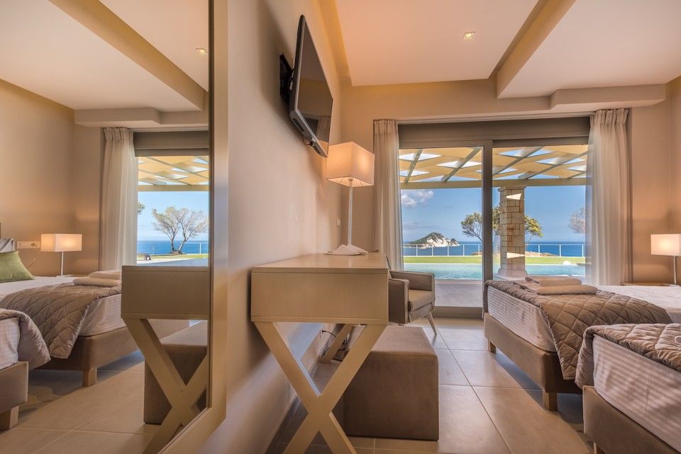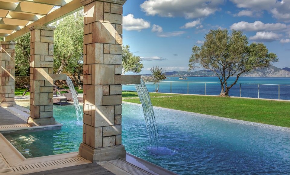 Artina Luxury Villa is built on a private property measuring 21 acres, on a hill overlooking the gulf of Keri, Marathonisi Island and the blue waters of the Ionian Sea. These breathtaking panoramic views will draw you in creating a unique paradise-like feel that will make your vacation heavenly. The beach is just a few meters through a private footpath.