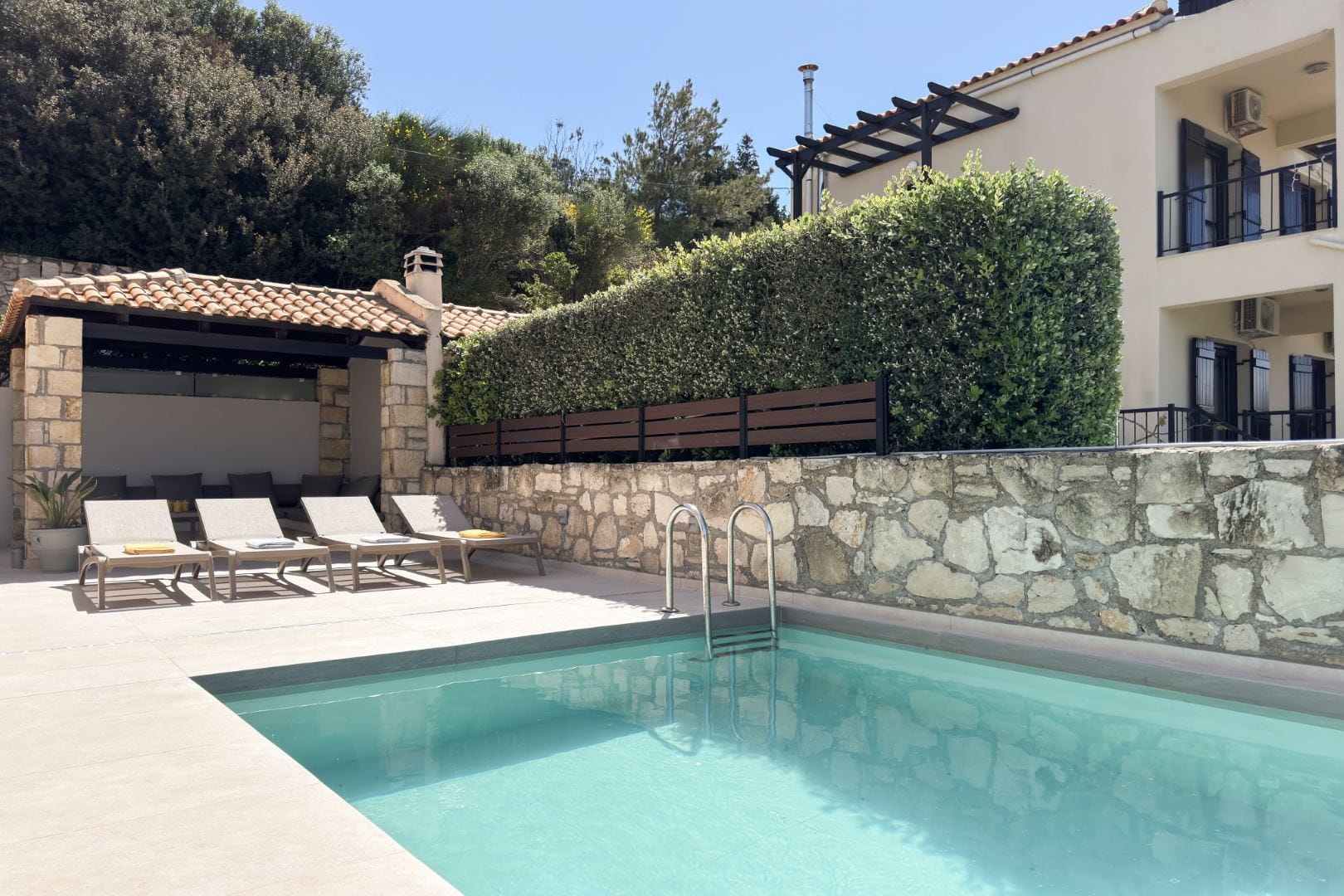 The villa’s convenient location also provides easy access to nearby attractions. It is 17 kilometers from the Port of Kissamos and 43 kilometers from Chania International Airport, making it a perfect base for exploring western Crete and its many treasures.