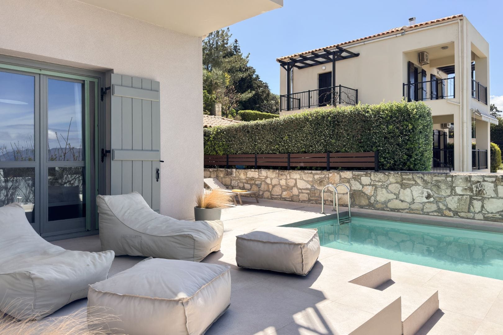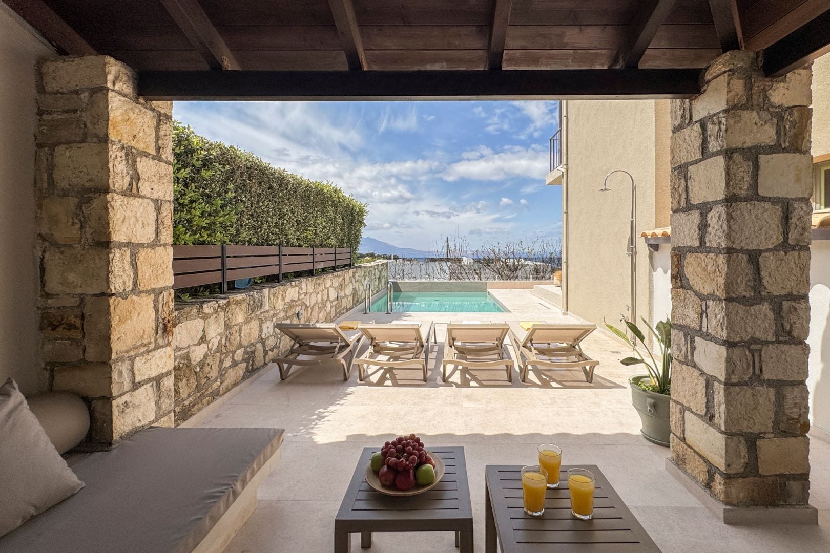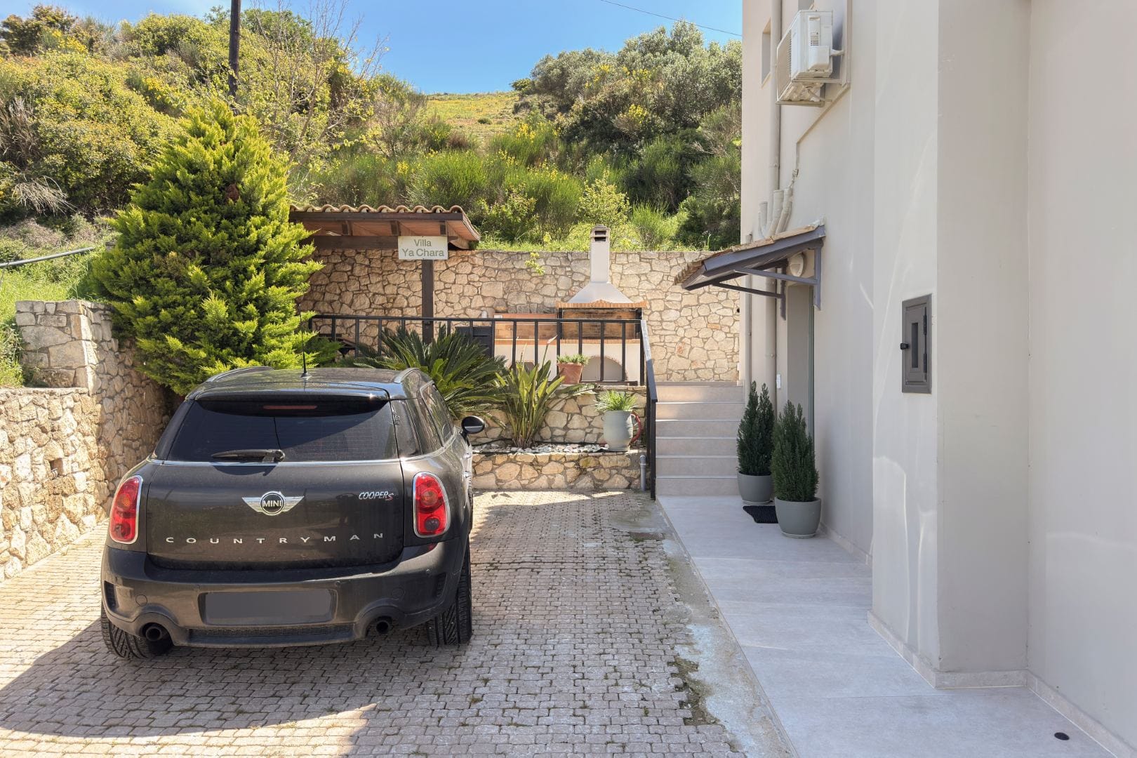 Ya Chara Villa is situated in the traditional Cretan village of Ravdouha, about 25 kilometers west of Chania. Its location offers a harmonious blend of natural beauty and cultural charm. The village, set on a verdant hillside, boasts sweeping views of the olive groves, rugged mountains, and the serene Kissamos Bay.