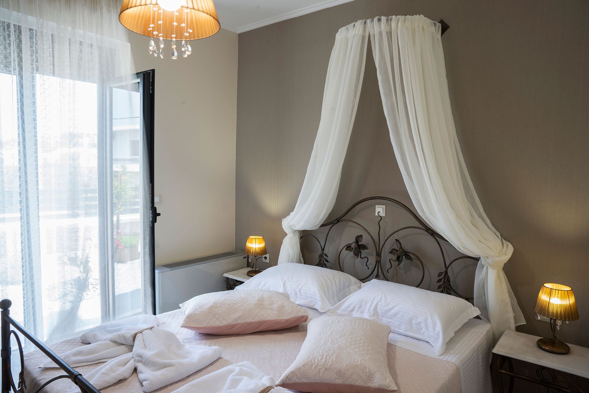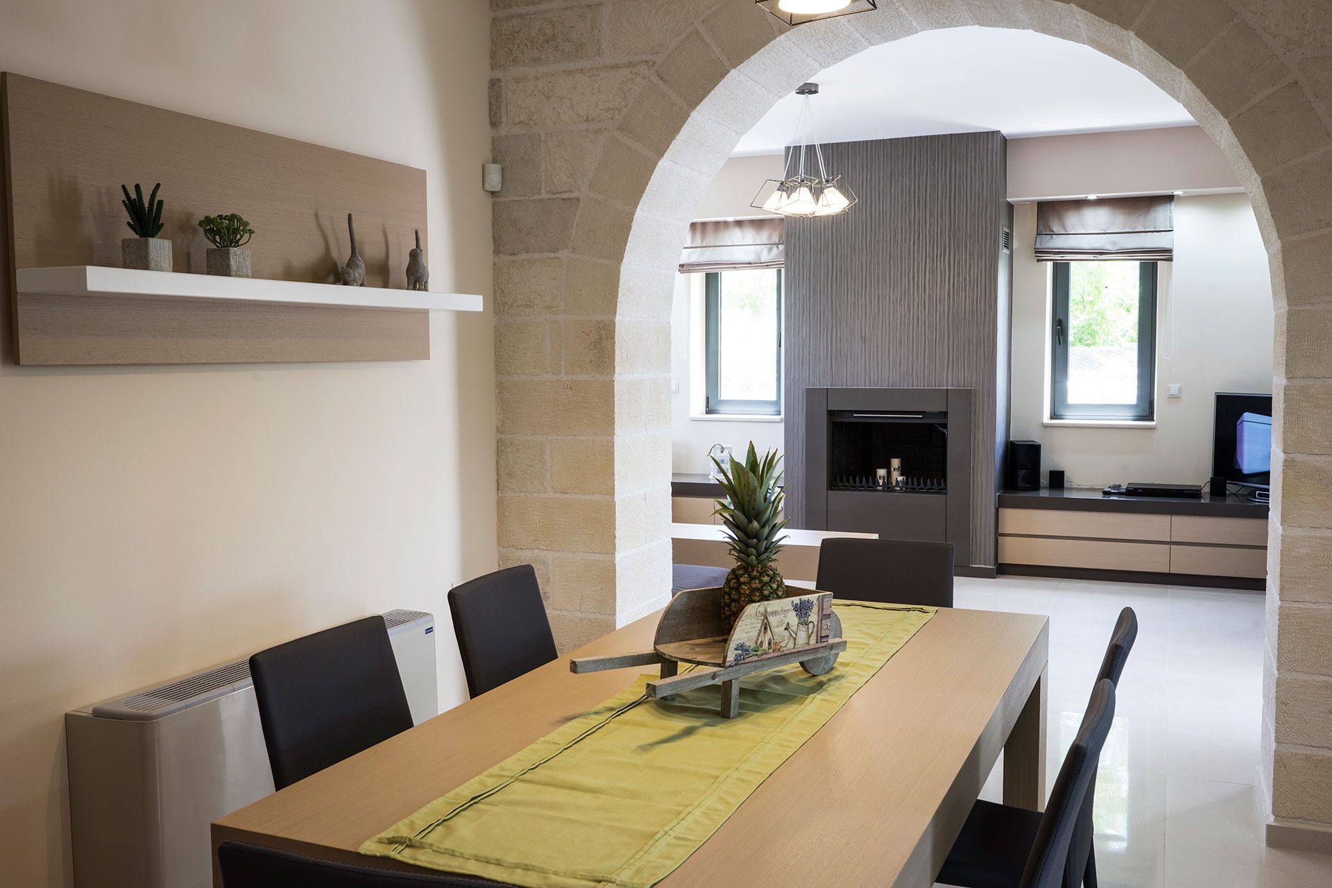 Decorated spaces, rooms with modern furnishings and earthy bright colours, creating an atmosphere of total relaxation.