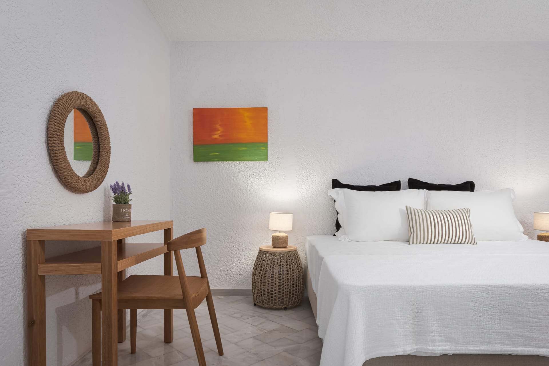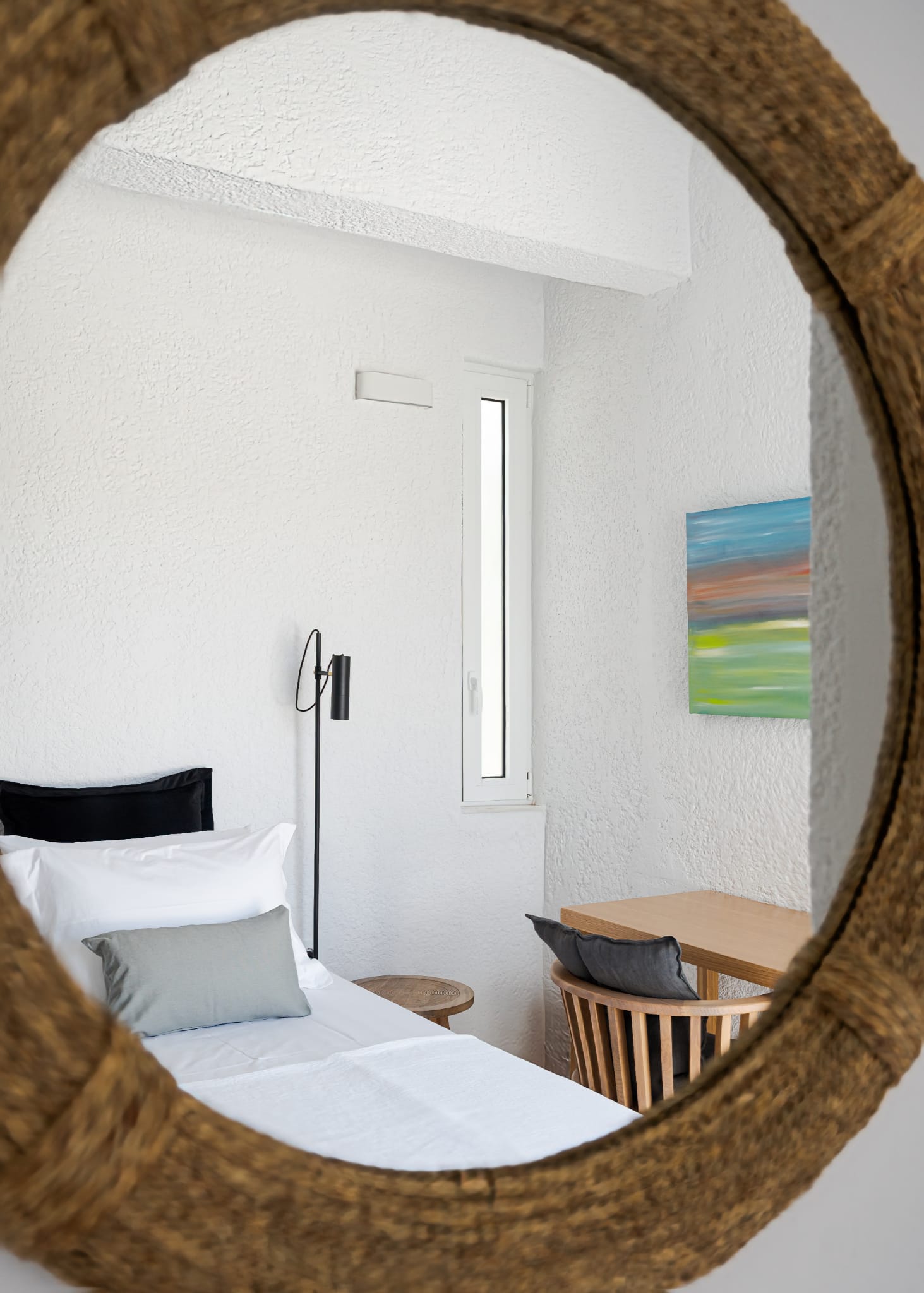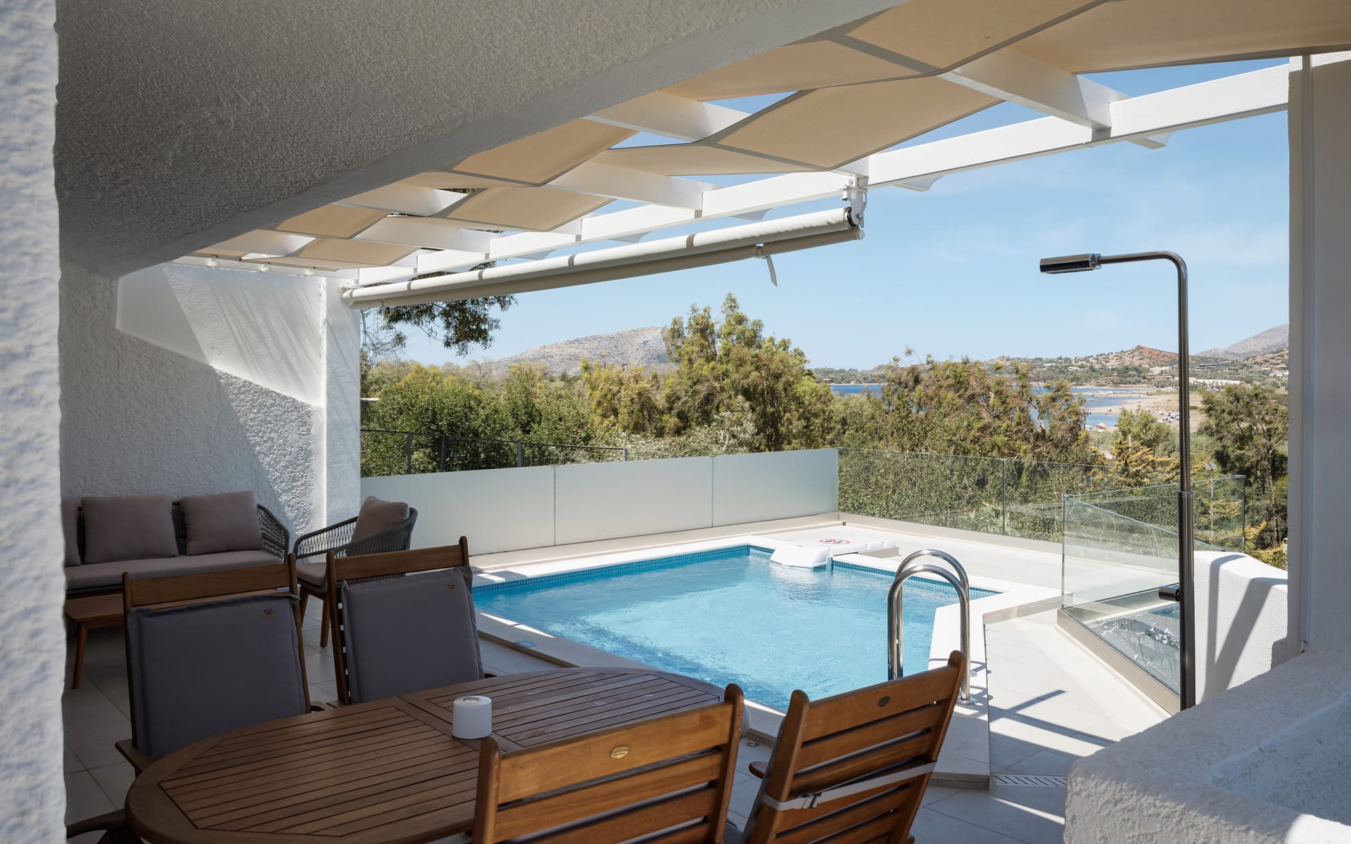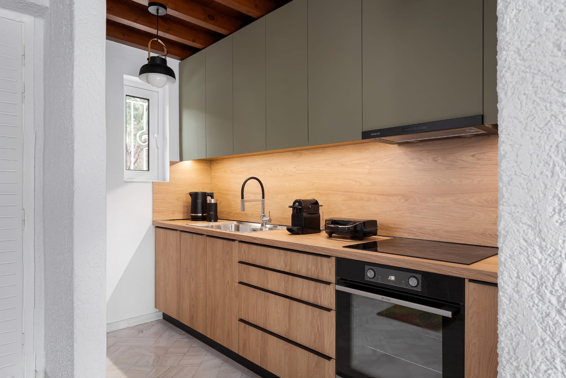 The true highlight of the villa lies outdoors. The private pool is set on a sun-drenched terrace with panoramic views of the Aegean Sea. The outdoor seating area, and BBQ facilities make it an ideal setting for laid-back afternoons or sunset dinners with family and friends. From the terrace, you can enjoy uninterrupted views of the lush landscape, sparkling sea, and sandy beach just a short stroll away.
