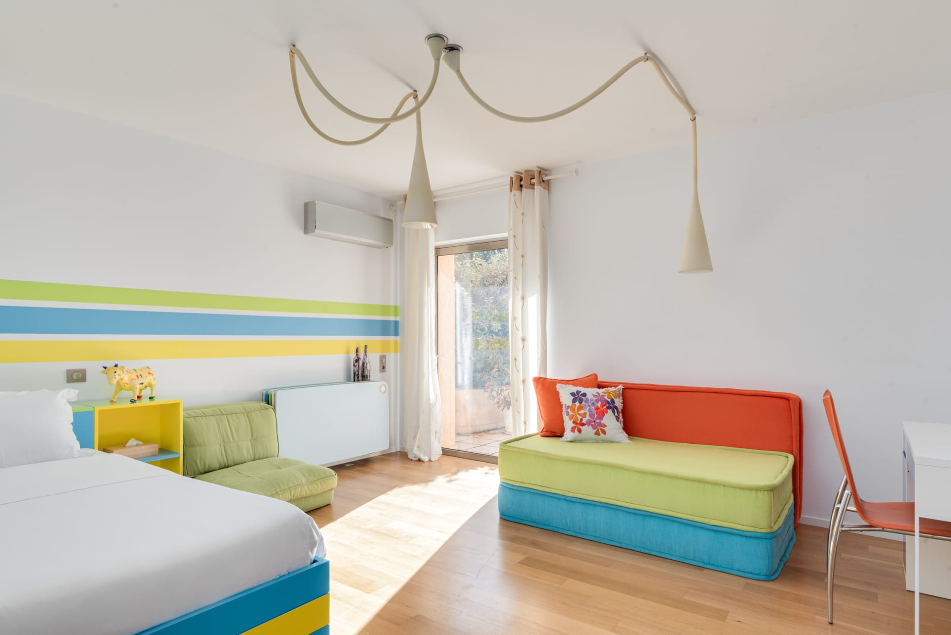 The villa’s accommodations are equally impressive. The master suite boasts an en-suite bathroom with an 8-square-meter steam bath and shower, offering a private spa-like retreat. Both the master and the second double bedroom are en-suite, featuring polished wooden floors throughout. The third bedroom has twin beds and a pull-out bed, sharing a bathroom with both a shower and a bathtub—providing flexibility for all guests.