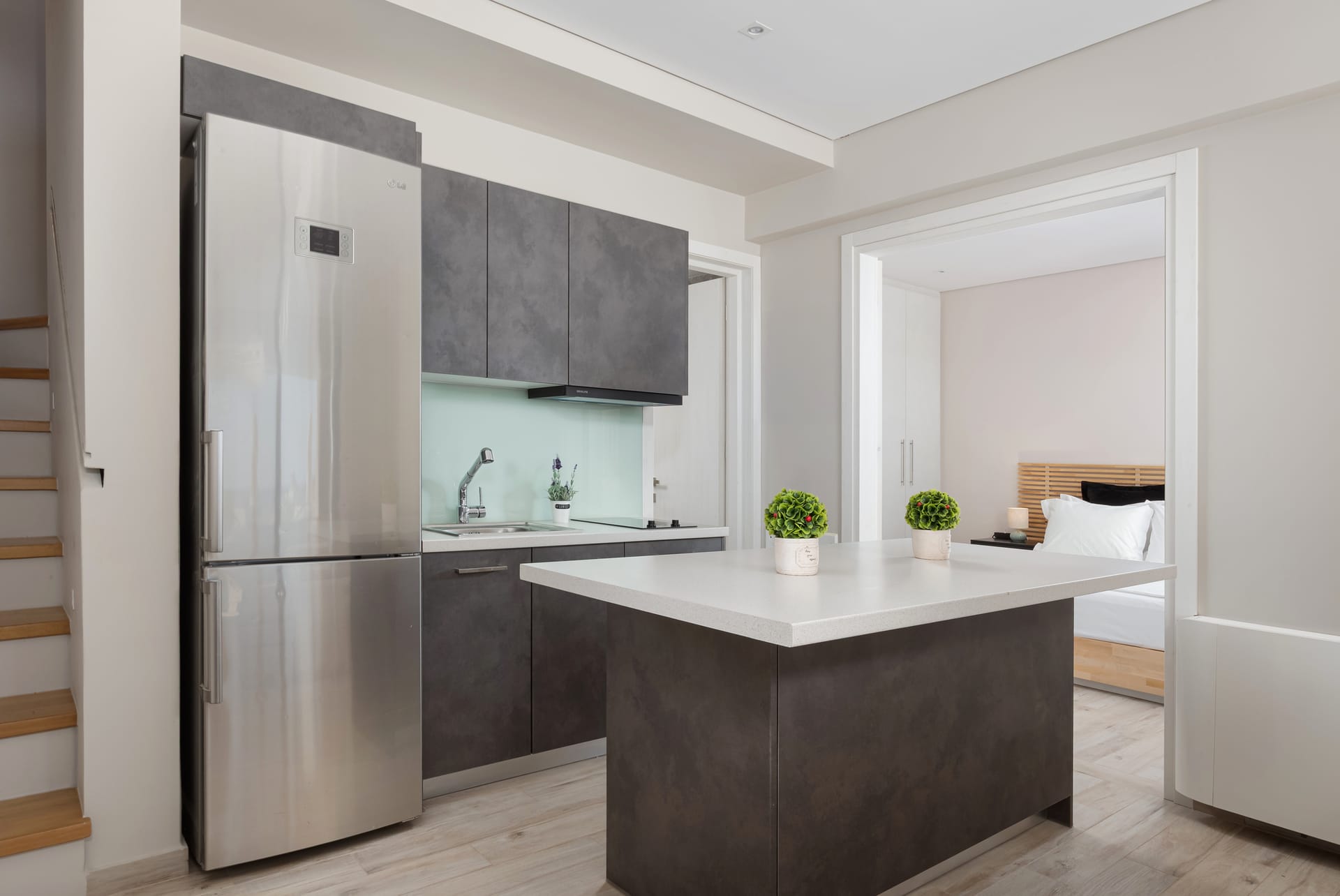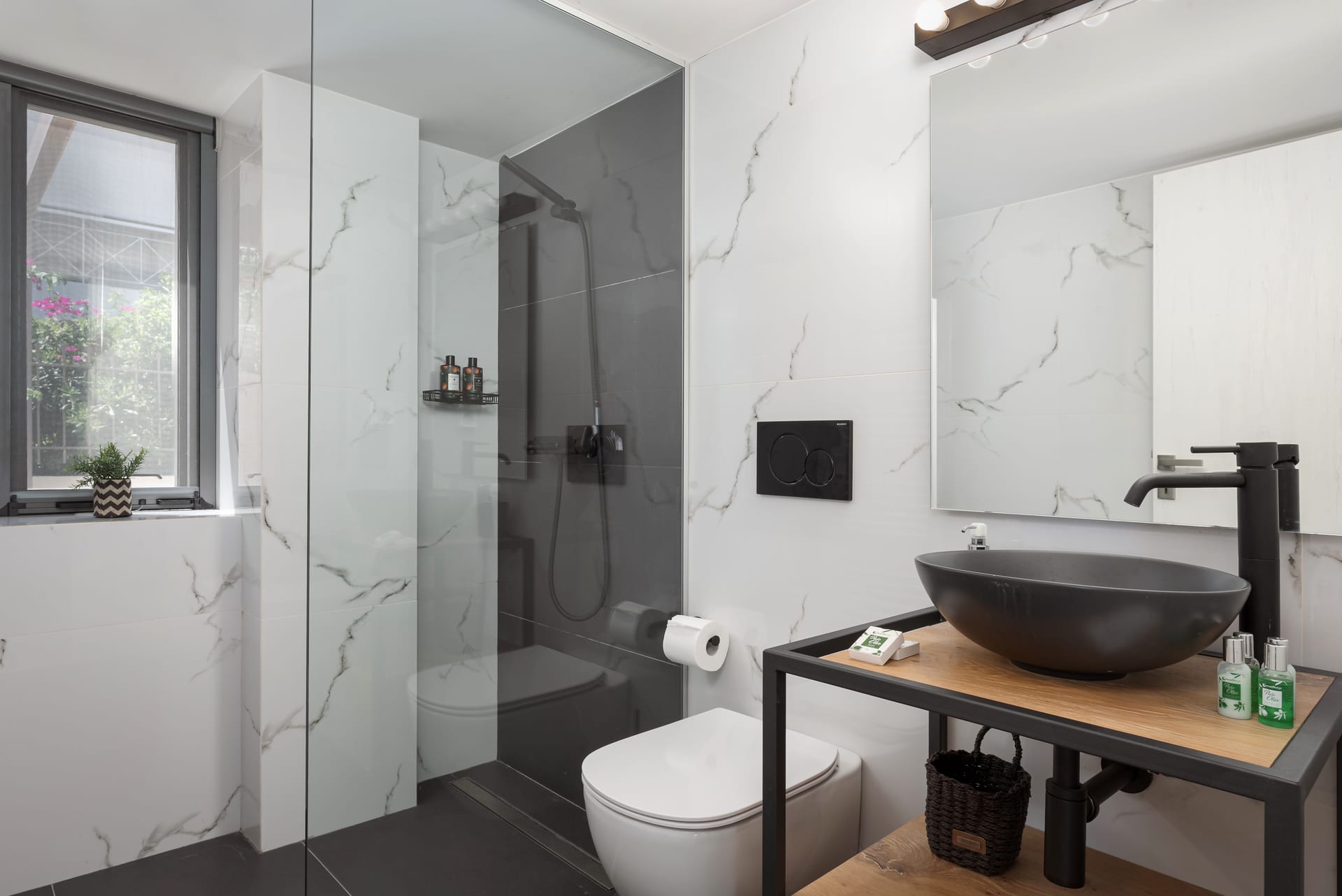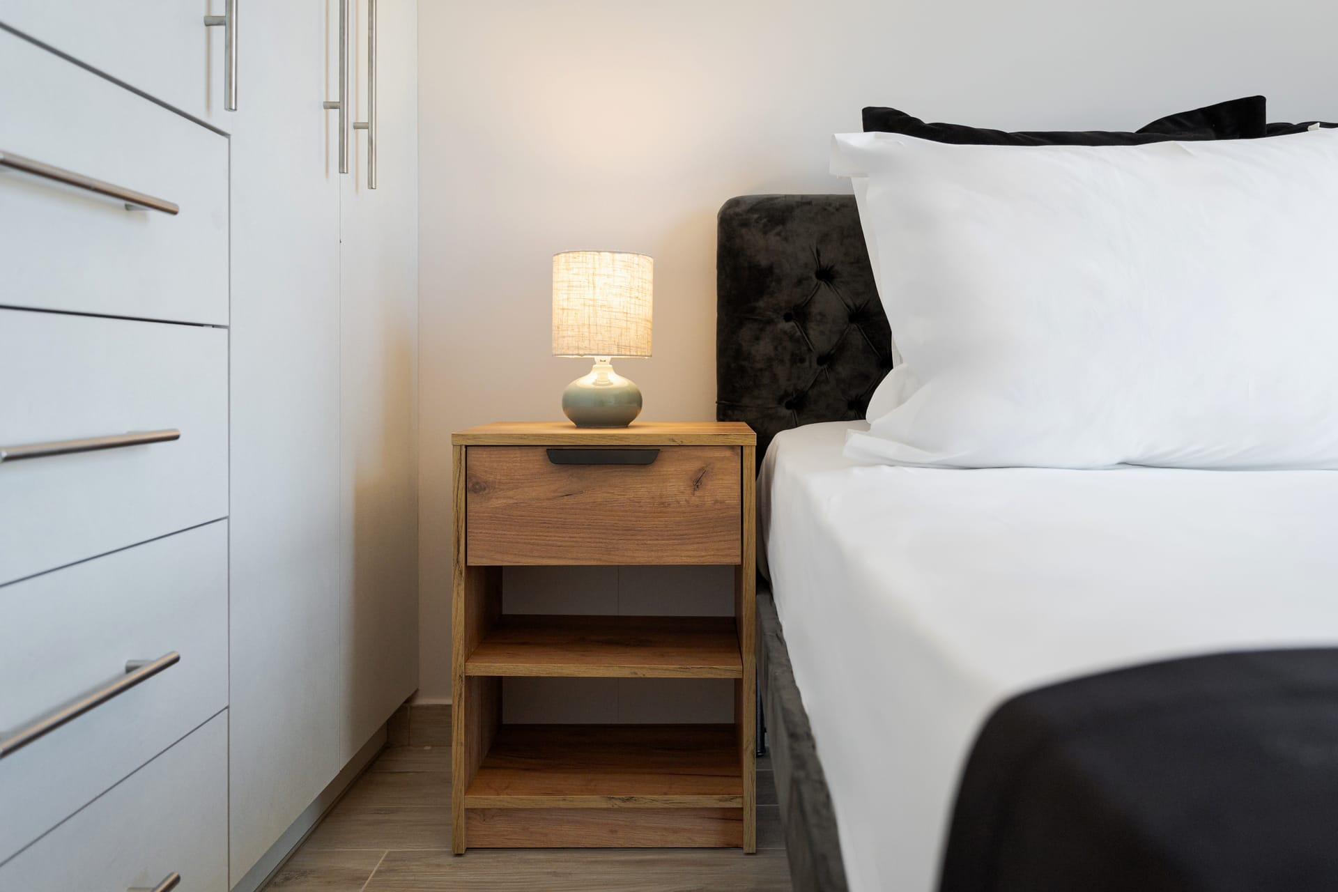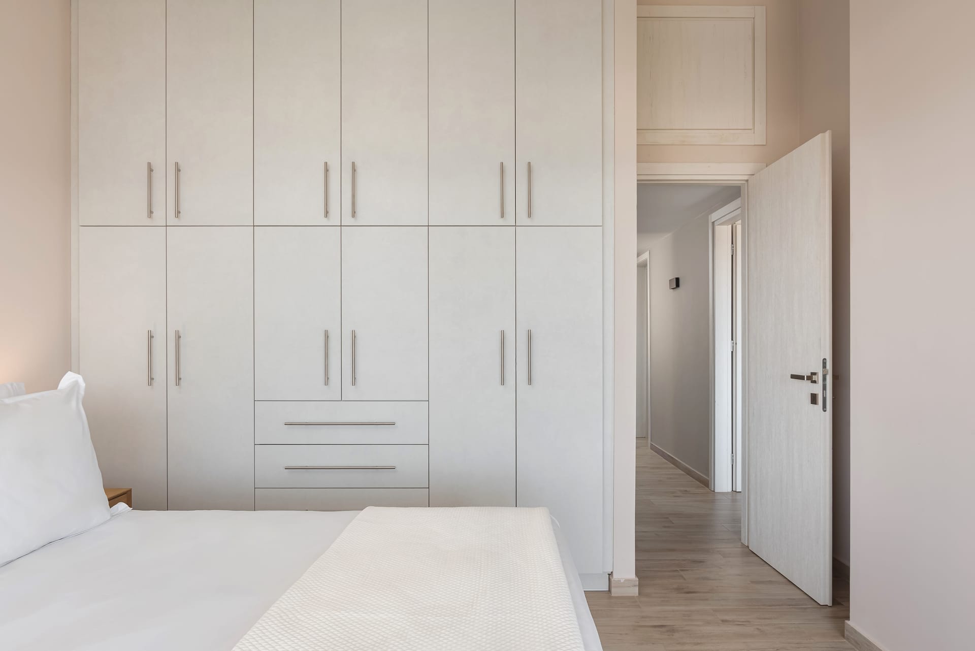 Outdoors, guests can enjoy a private patio ideal for dining or lounging in the sun, as well as a balcony that offers uninterrupted views of the coastline—an ideal spot for morning coffee or evening drinks. Whether you're cooling off in the pool, enjoying alfresco meals, or simply soaking in the calm atmosphere, every corner of Villa Nefeli is designed to elevate your stay.