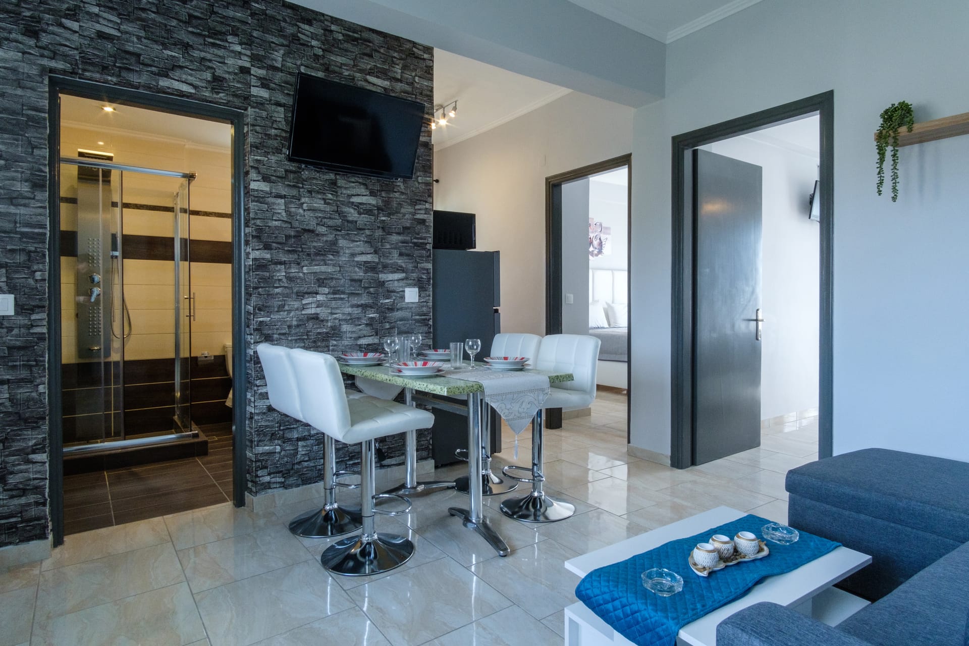 Accommodation: Athens Syntagma Ermou Studio welcomes you with a blend of simplicity and sophistication. The studio features one bedroom and a living room with a sofa bed, seamlessly integrated into one inviting space. A fully equipped kitchenette adds a touch of convenience, and the street view provides a dynamic backdrop to your Athenian stay.