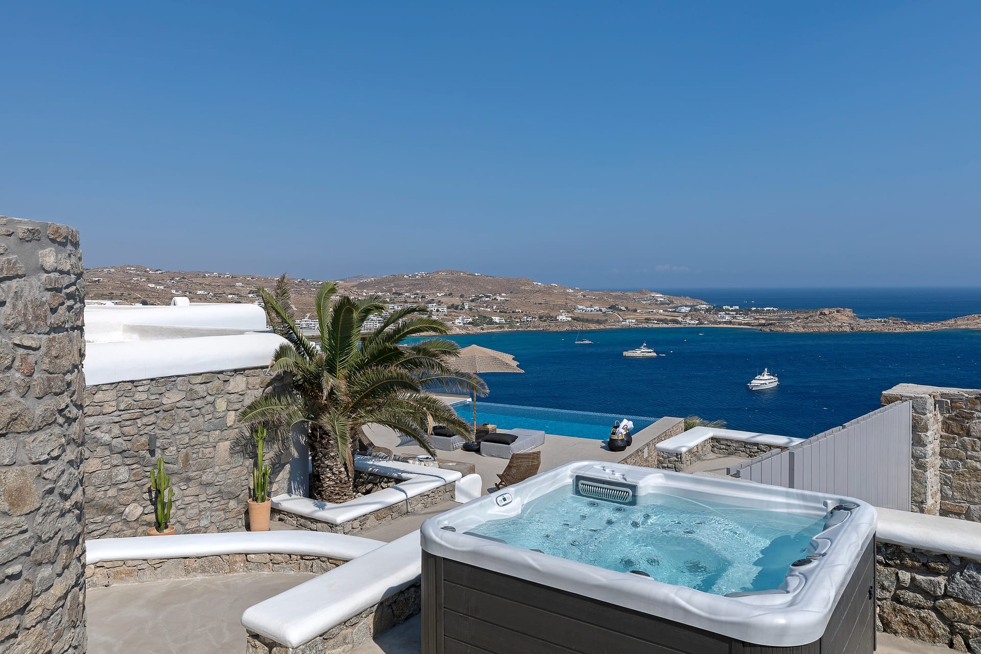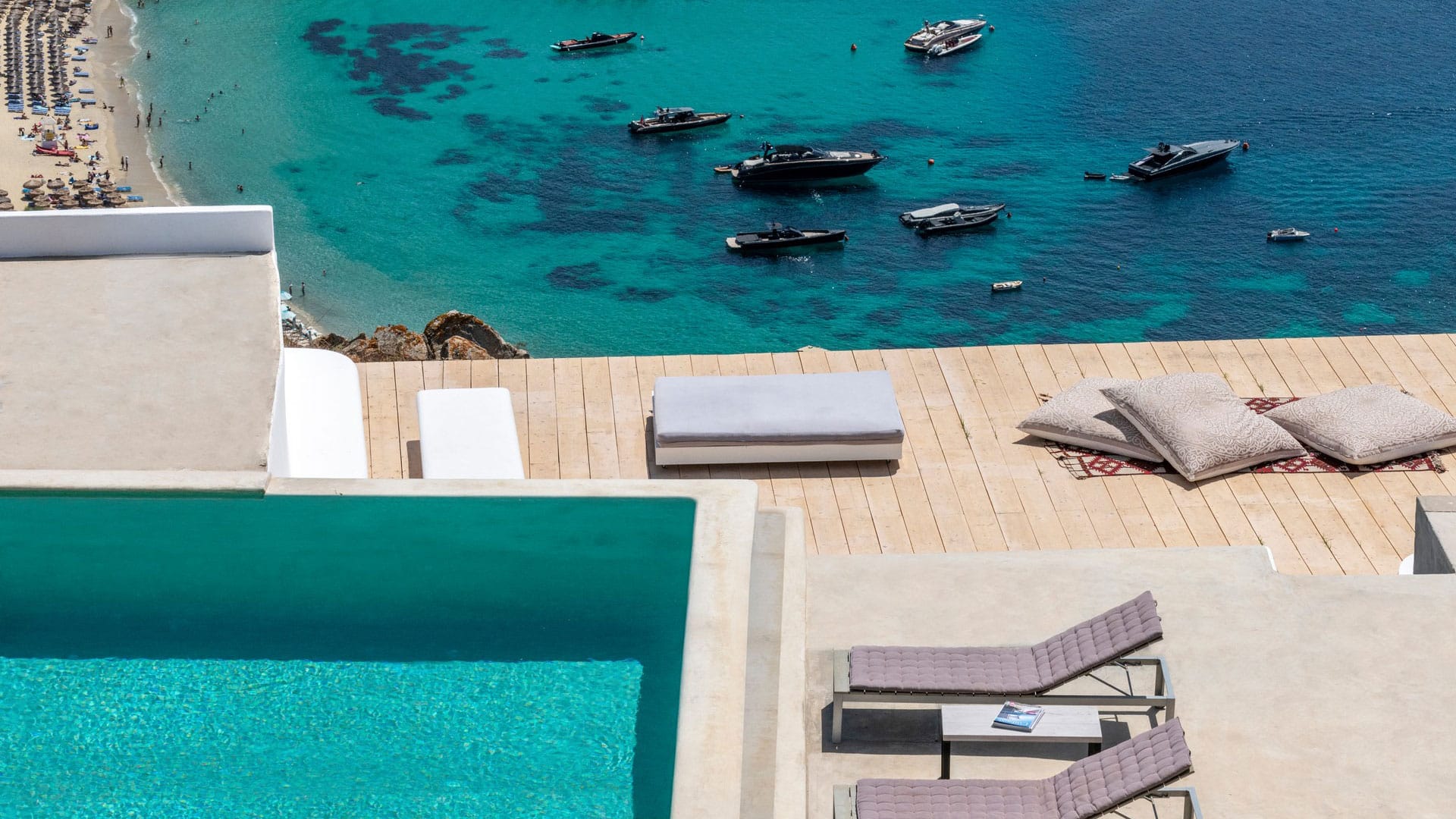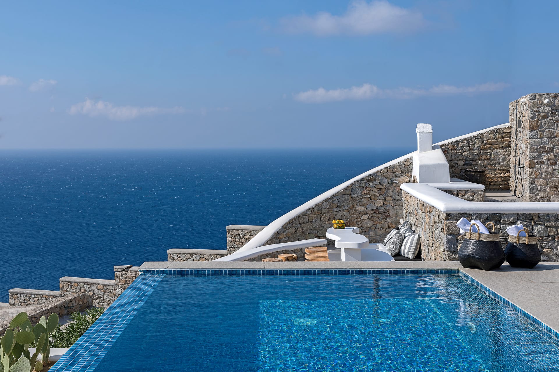 · A private 10 meter luxury overflow pool with salted water, luxurious decks and loungers, shower with warm and cold water beside the pool.