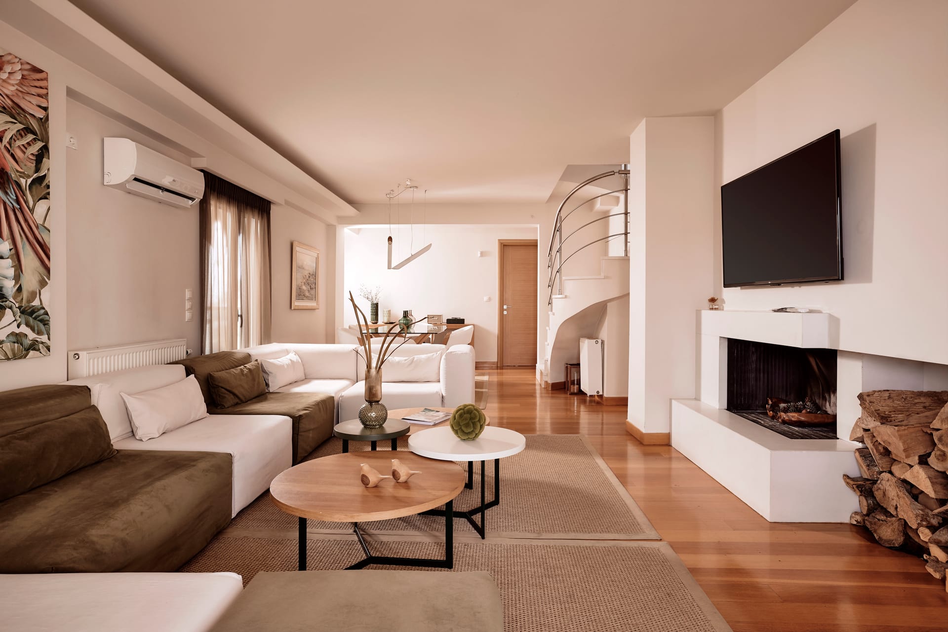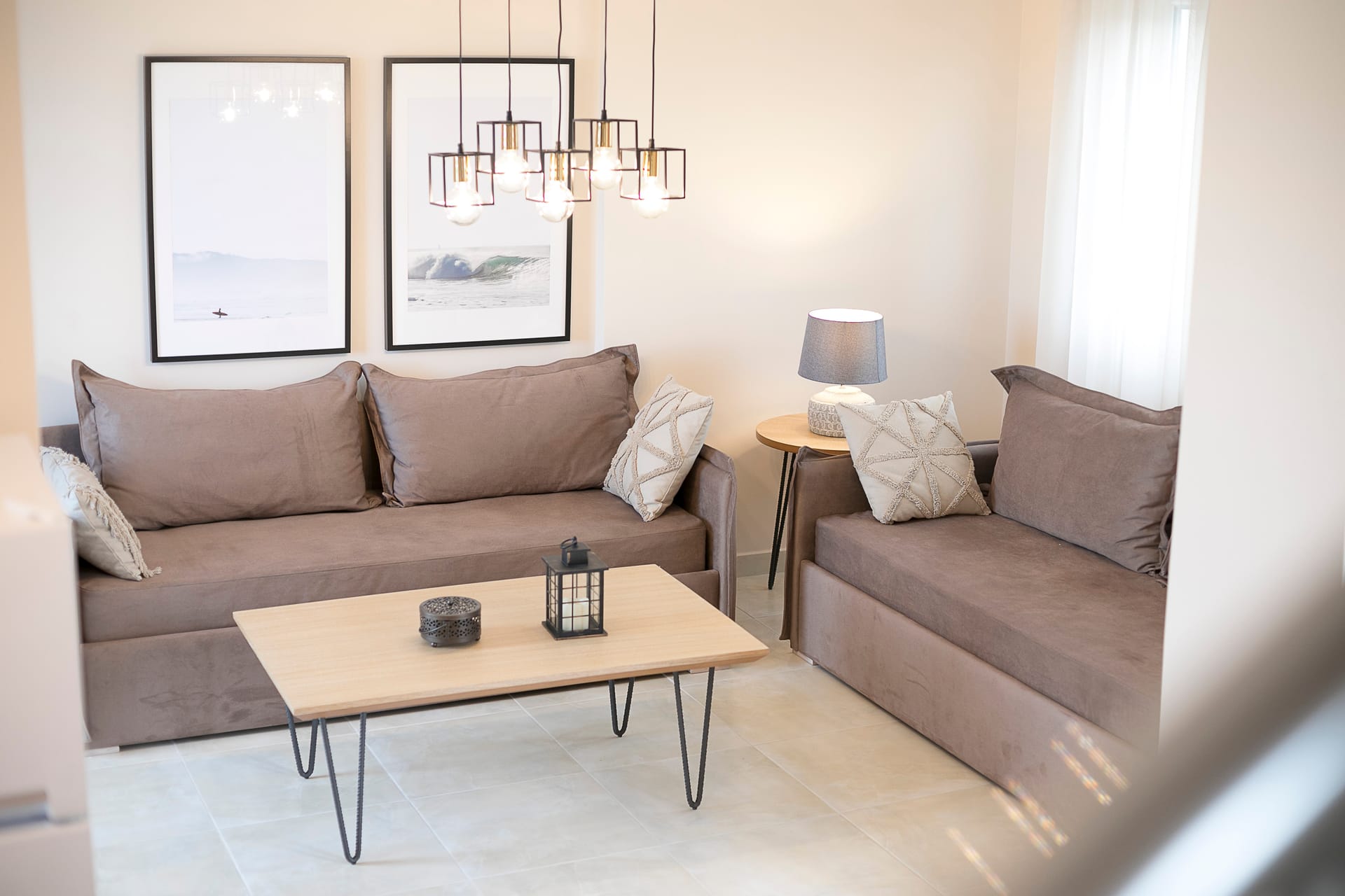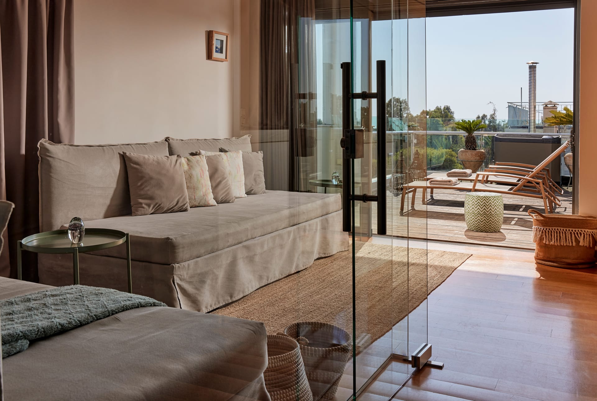 This Suite features the following services and amenities: daily standard housekeeping service, wireless [Wi-Fi] Internet access [free of charge], air conditioning [individually controlled], safe [free of charge], welcome tray with complimentary coffee, equipped with an espresso machine by Nespresso, a kettle & coffee / tea making facilities, mini fridge with complimentary bottled water [upon arrival], satellite Smart TV with Netflix streaming service, Radio / CD player, sofa, closet, mirror, bathroom with shower, bath towels, beach towels [on request / free of charge], bath amenities [soap, shampoo & shower gel], hairdryer, iron [free of charge], baby high chair [upon request / free of charge], baby cot [upon request / free of charge] and private entrance and patio with outdoor furniture.