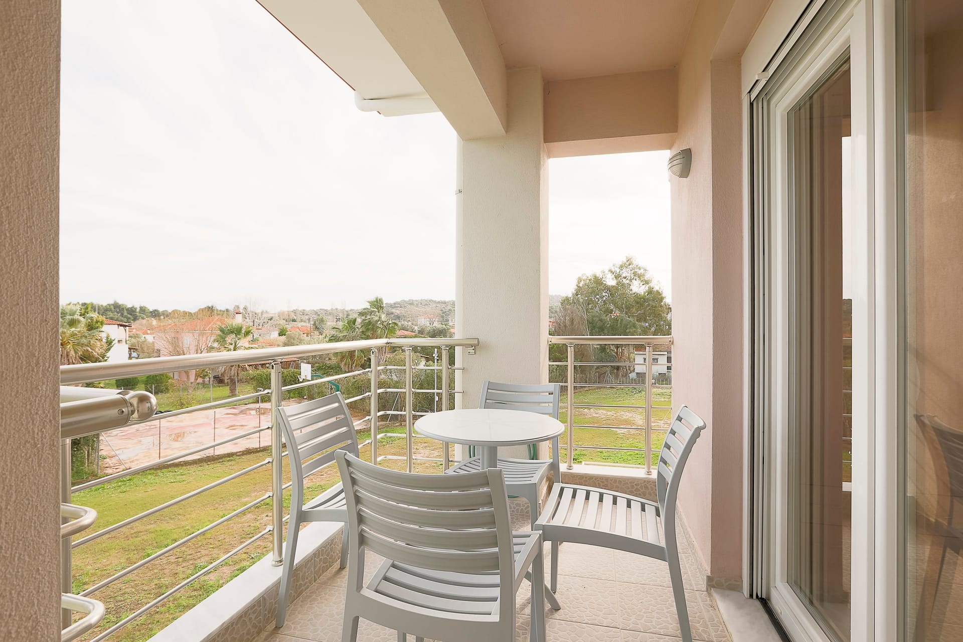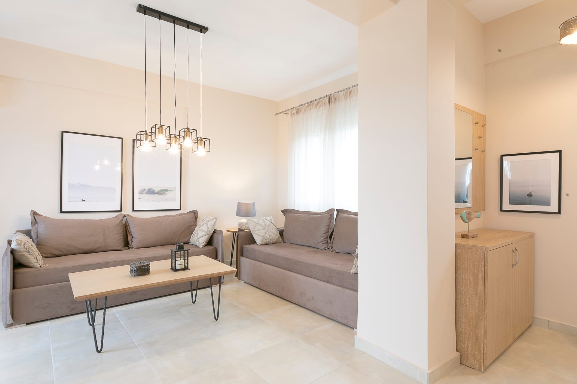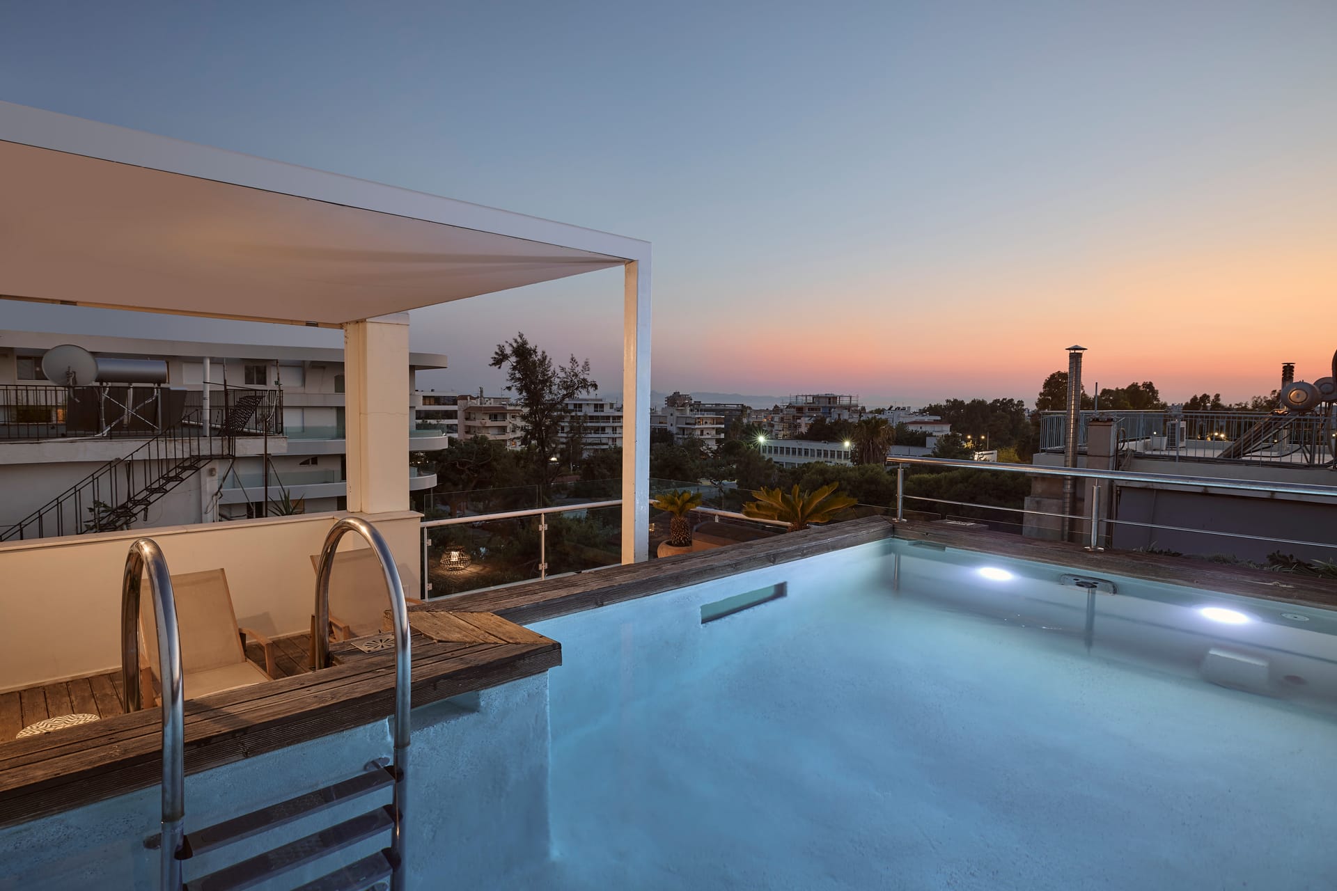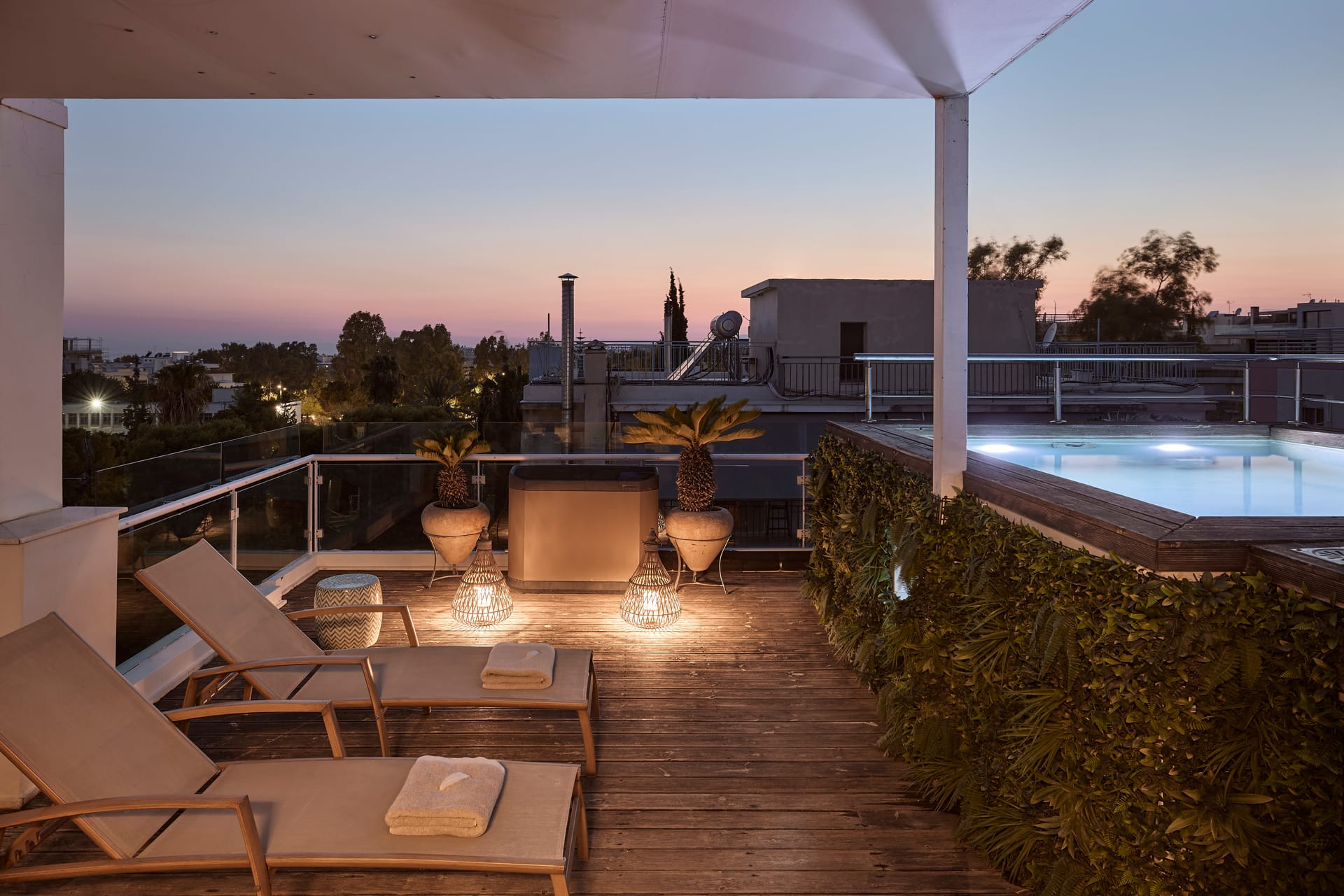 This Suite features the following services and amenities: daily standard housekeeping service, wireless [Wi-Fi] Internet access [free of charge], air conditioning [individually controlled], safe [free of charge], welcome tray with complimentary coffee, equipped with an espresso machine by Nespresso, a kettle & coffee / tea making facilities, mini fridge with complimentary bottled water [upon arrival], satellite Smart TV with Netflix streaming service, Radio / CD player, sofa, closet, mirror, bathroom with shower, bath towels, beach towels [on request / free of charge], bath amenities [soap, shampoo & shower gel], hairdryer, iron [free of charge], baby high chair [upon request / free of charge], baby cot [upon request / free of charge] and private entrance and patio with outdoor furniture.