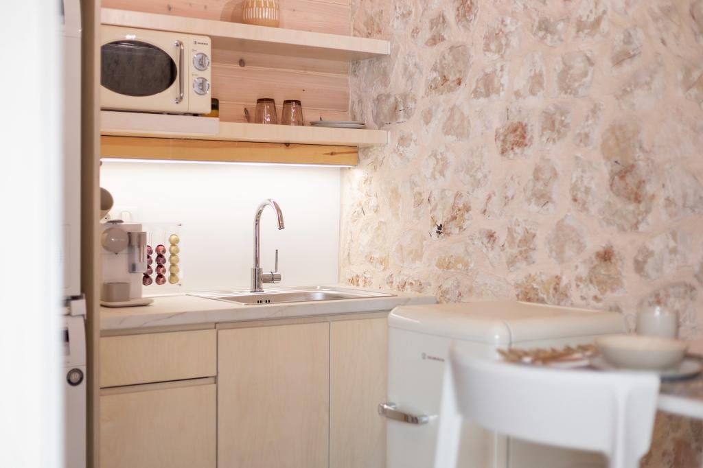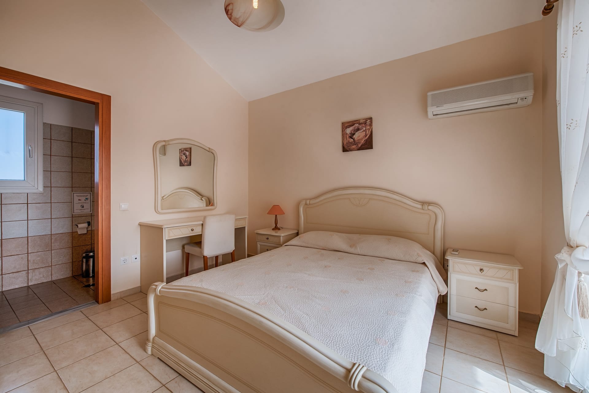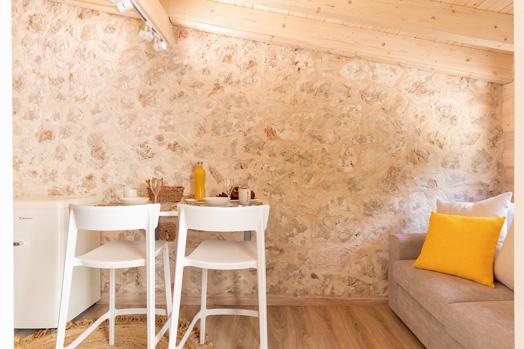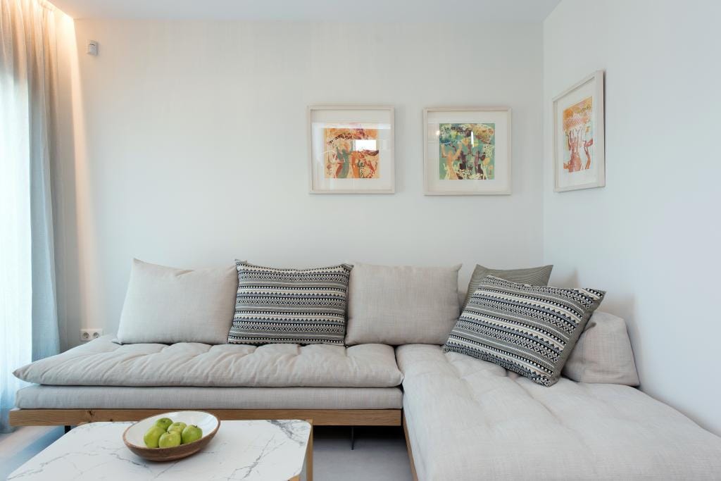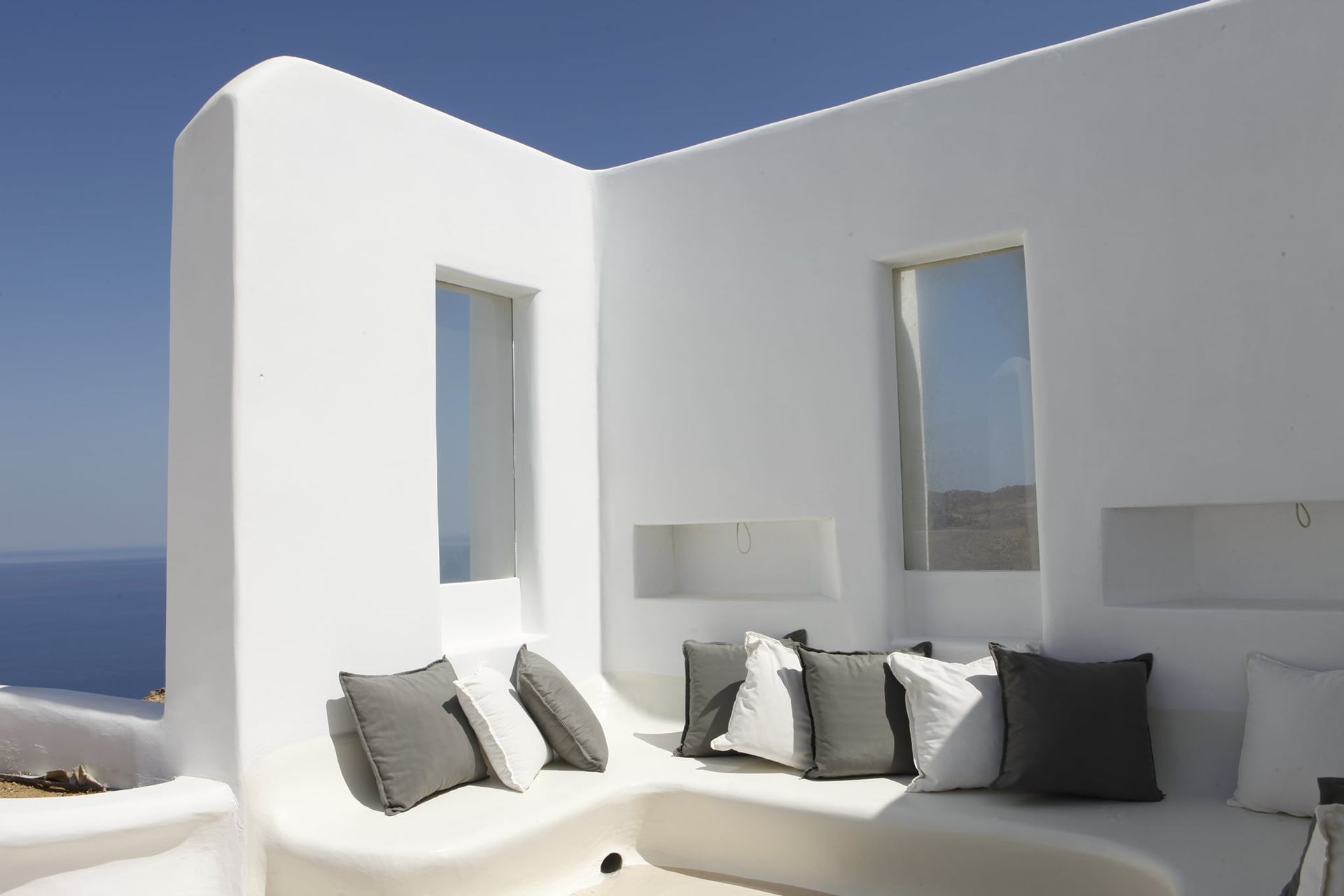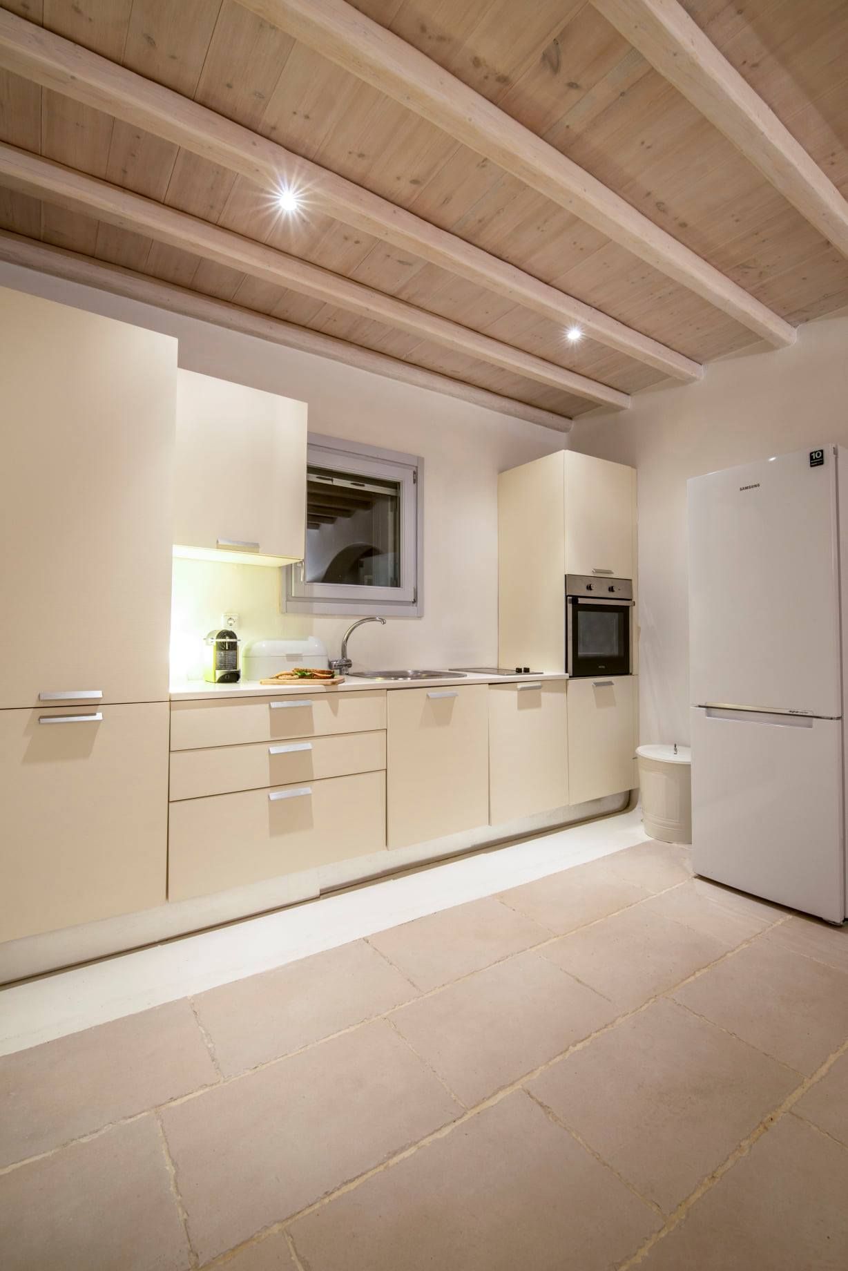 Costelle Villa is simply and minimally furnished and decorated in a way to create a cool and modern vibe throughout the house, ideal for a vacation of absolute relaxation. The villa features a large beautiful living room and open plan kitchen, three spacious bedrooms, including one family room, a bathroom and an amazing outside yard with a stylish swimming pool. In the common areas, the contemporary style in decoration along with the tall ceilings create a sensation of infinite space. Large French windows allow the sunlight to shine through the rooms and reflect naturally to the pale silverish tones on walls and furniture. All bedrooms follow the simple yet elegant decoration and form an amazing space of comfort, enticing even the most demanding guest to lay down and indulge in an unprecedented state of relaxation. A luxurious bathroom completes this elegant scenery, ideal for the vacation of a lifetime.