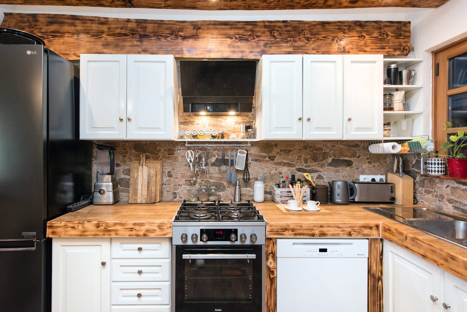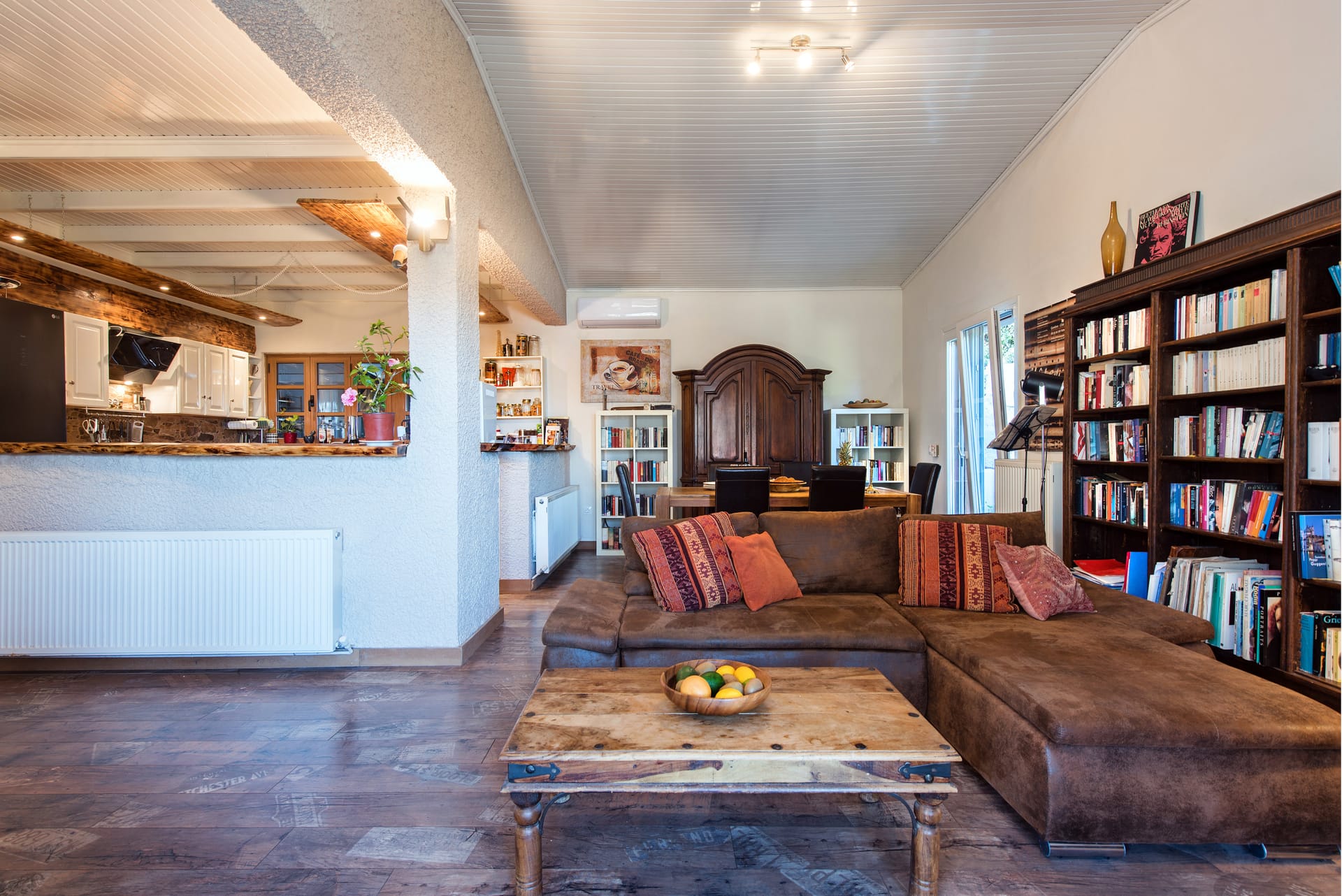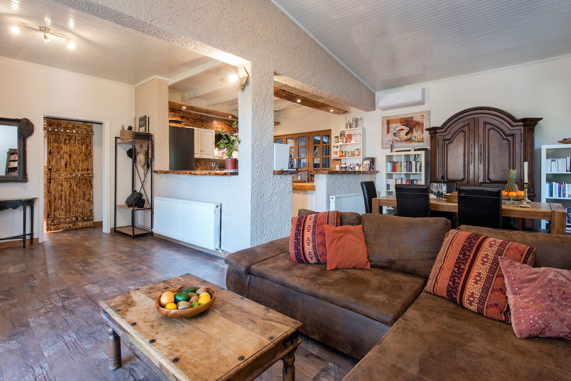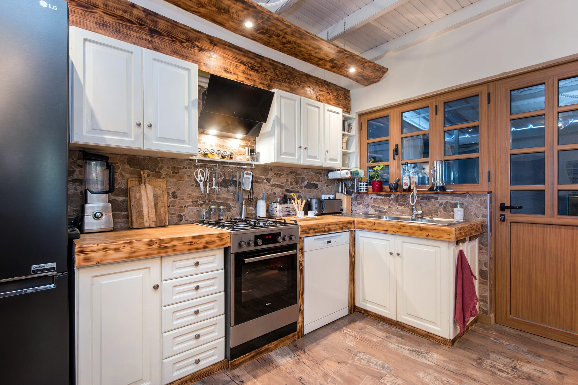 The kitchen is a haven for culinary delights, with polished wooden countertops and gleaming stainless steel appliances providing the perfect backdrop for preparing delicious meals with fresh local ingredients sourced from nearby markets and orchards. A farmhouse-style dining table invites guests to linger over leisurely meals, while French doors open onto a sun-drenched terrace where alfresco dining becomes an everyday pleasure.