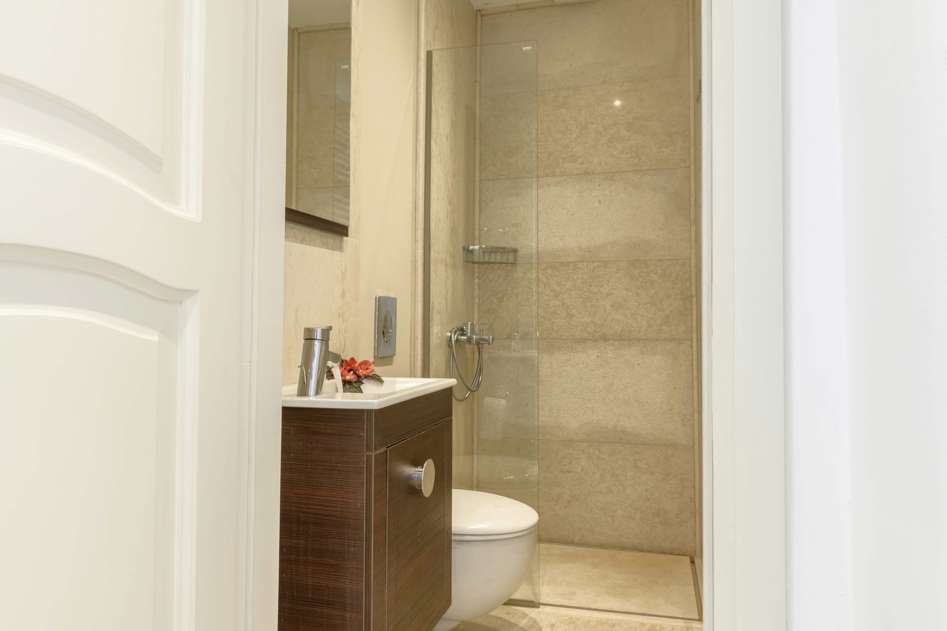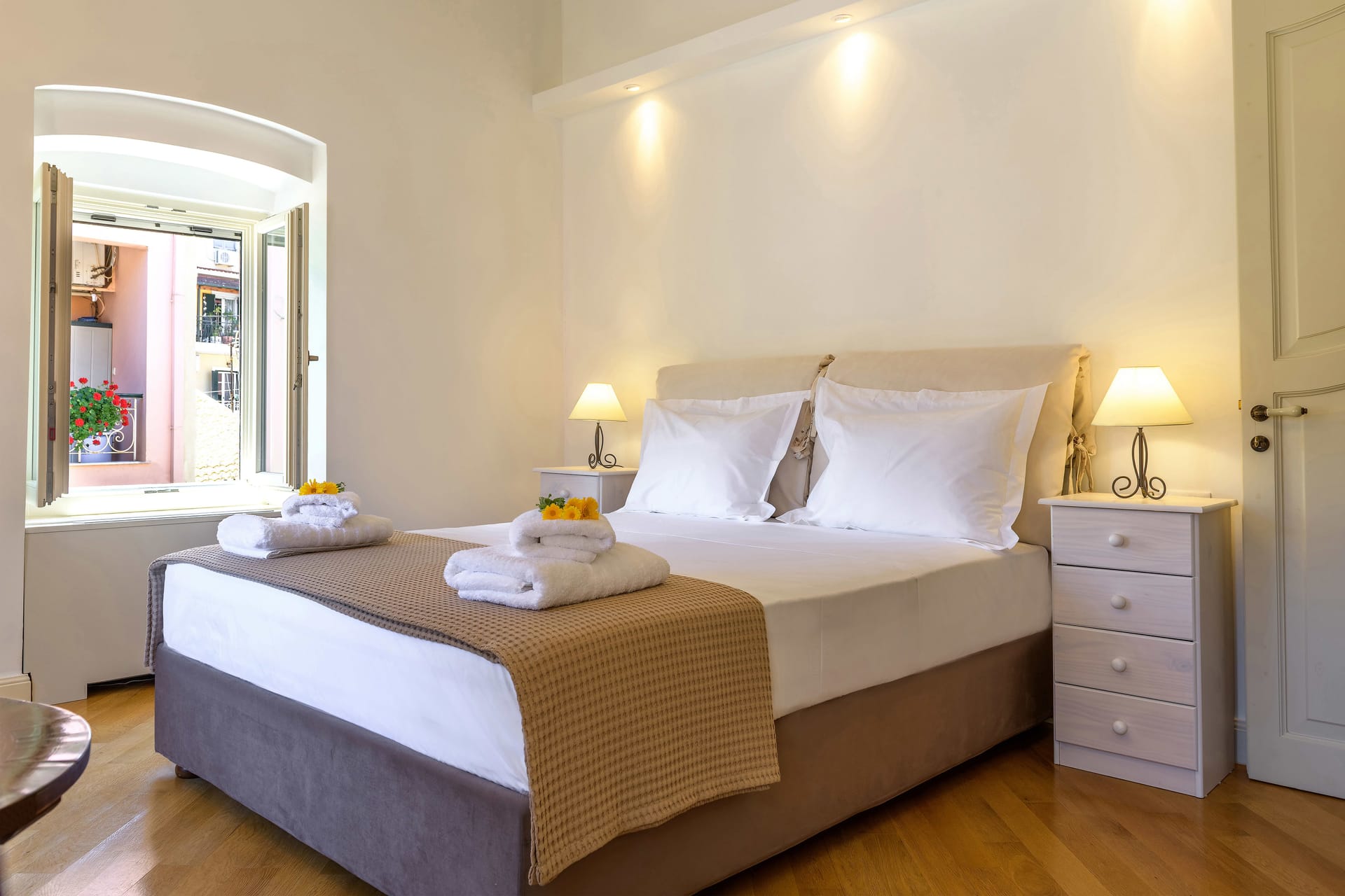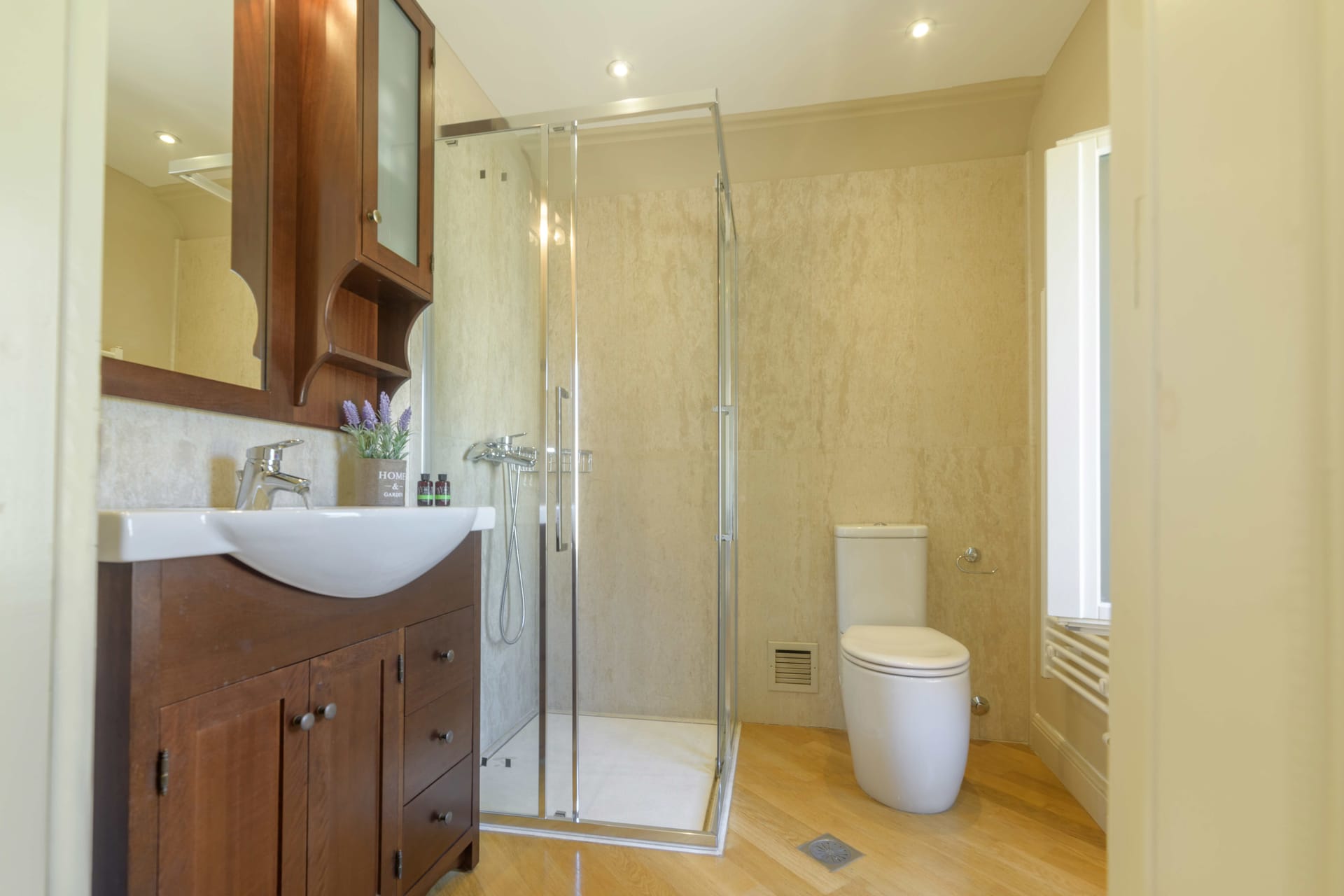 Climbing up the stairs, on the floor, two beautiful bedrooms – a double and a twin one – await to offer peaceful times to guests. White wood details, bright colours, wooden floors and large windows create a serene ambiance, ideal for the vacation of a lifetime. Simple yet elegant bathrooms offer comfort and style, all in one, and only for those who know how to appreciate good taste.