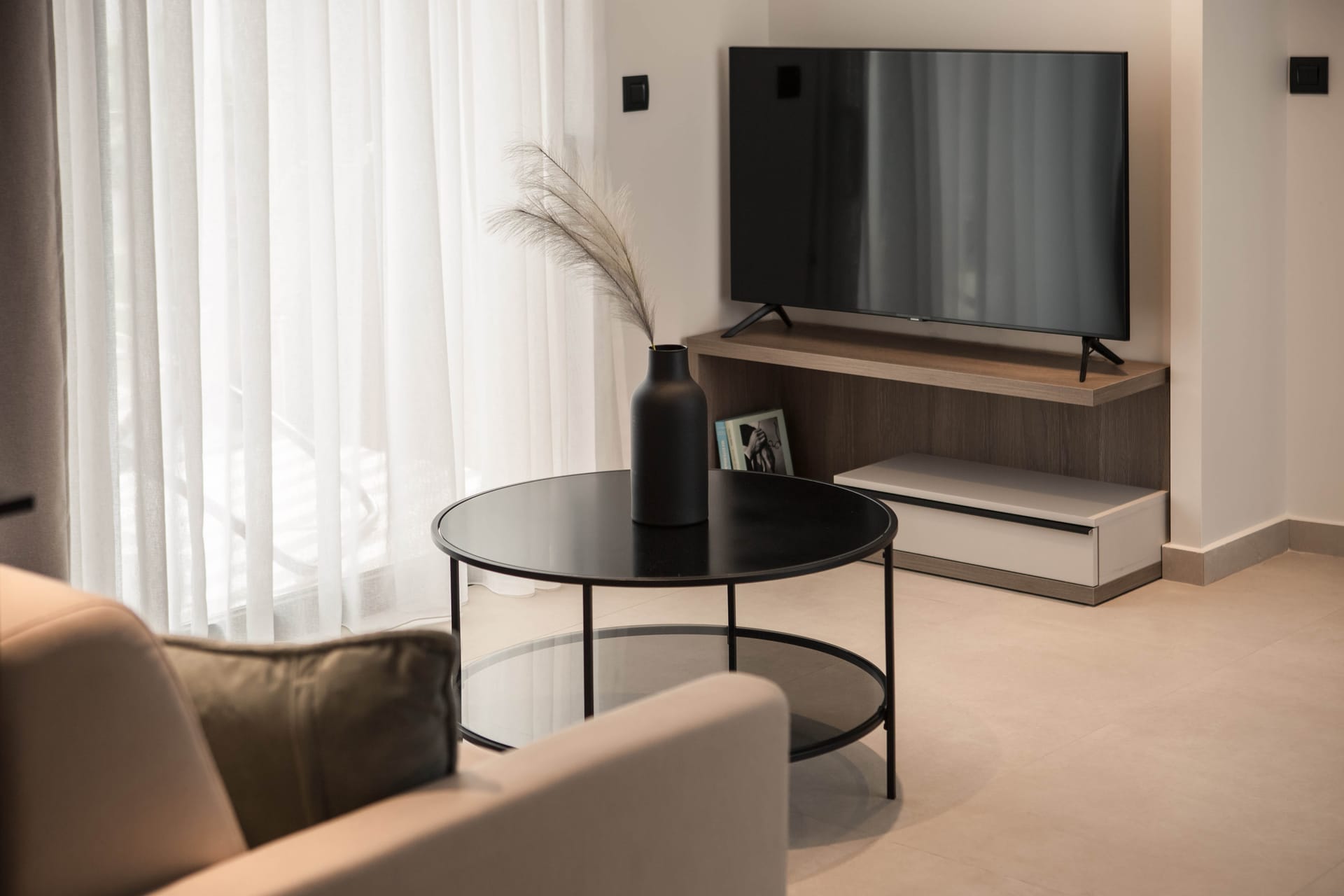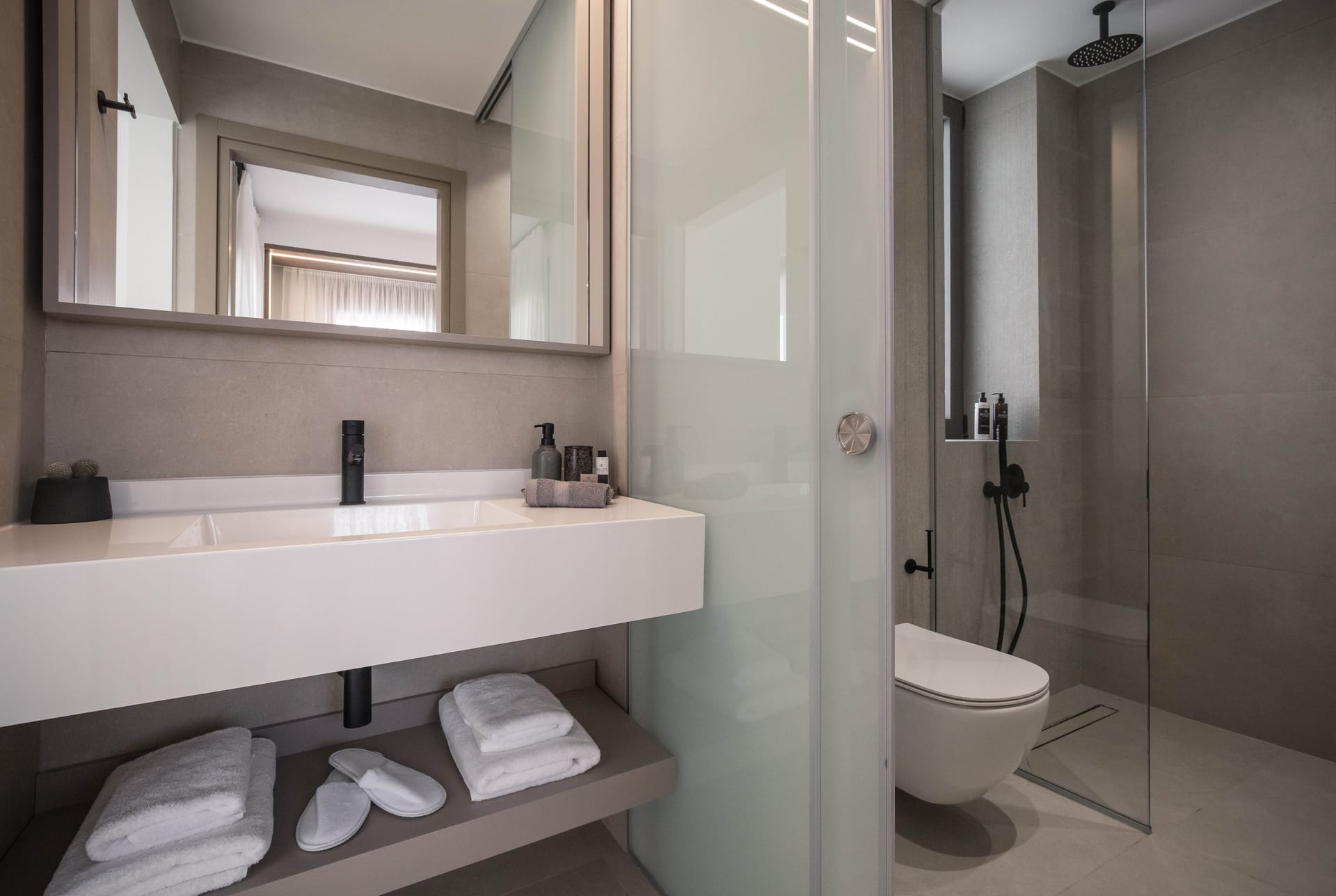 Welcome to our Junior Suite with City View, a spacious accommodation spanning 50 square meters. Ideal for a family of 4 people, this suite offers a delightful urban escape for both adults and children. It is consisted of one bedroom, that features a Double Bed with coco-mat mattress as well as, there is a living room adorned with a double Sofa Bed, providing flexibility and comfort.