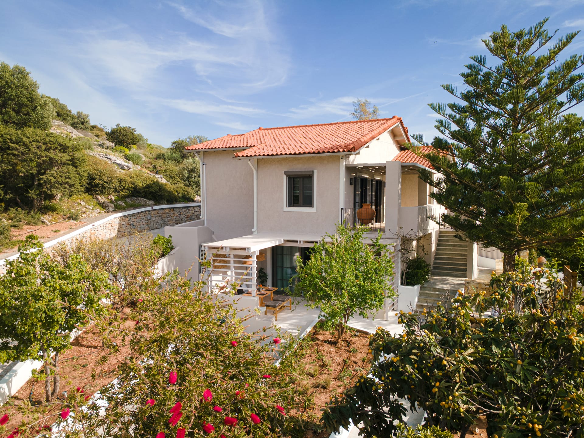 Nestled in the serene beauty of Chariclea Villa Retreats, the Eco House offers a perfect blend of sustainability, luxury, and comfort. Designed to accommodate 4 adults and 2 children, this elegant villa is an ideal escape for families, couples, or small groups seeking relaxation in a breathtaking natural setting.