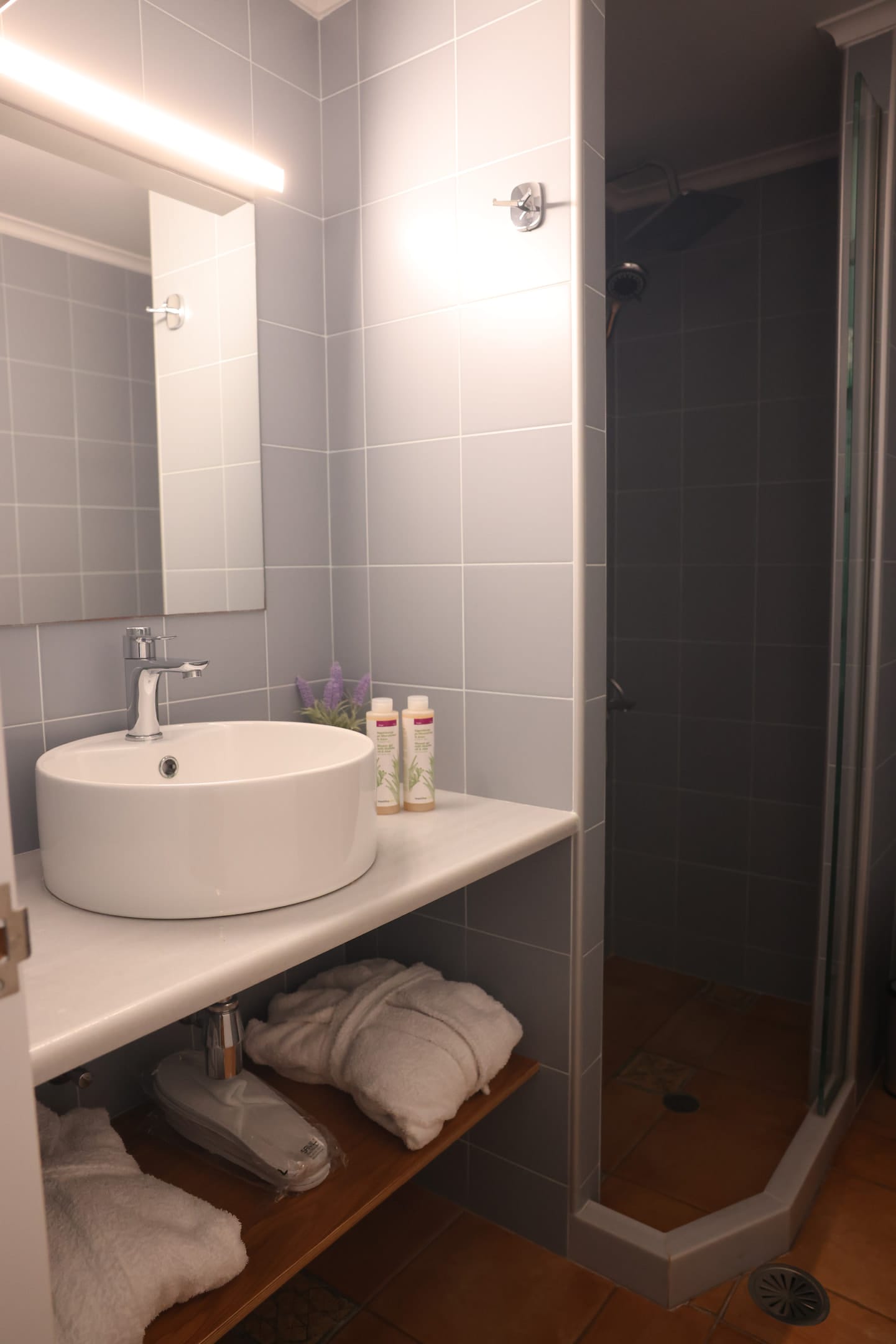 The bathrooms have fitted shower cabins, w/c, sockets with a protective cap, face and body towels, bathrobes and slippers while mastihashop personal care products will surprise you with their quality and aroma.