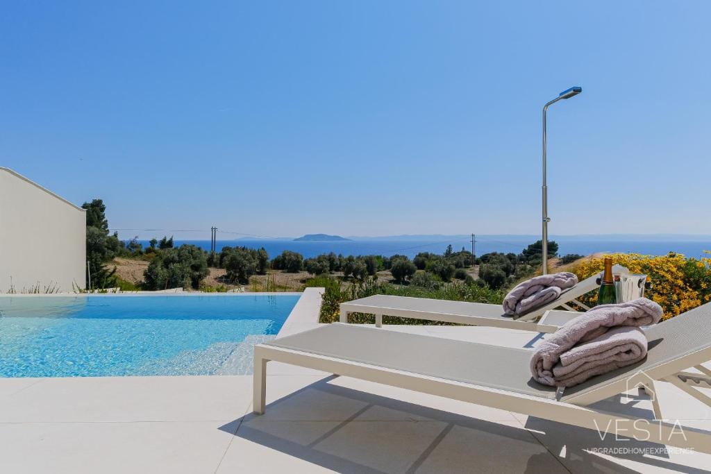 Brand new Seafront villa offers modern comforts and a magnificent ambiance to its guests. The villa has a large private swimming pool and a spacious garden with children’s play area in the area of Sfakaki, with a private path to the beach in front. Enjoy the sea views while seated on the outdoor furniture under the shaded area, next to the large 40 sq meter private pool.
