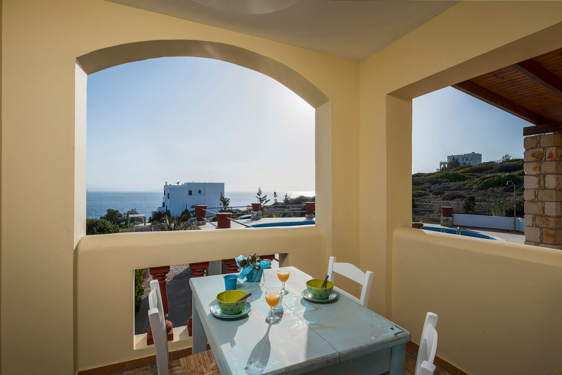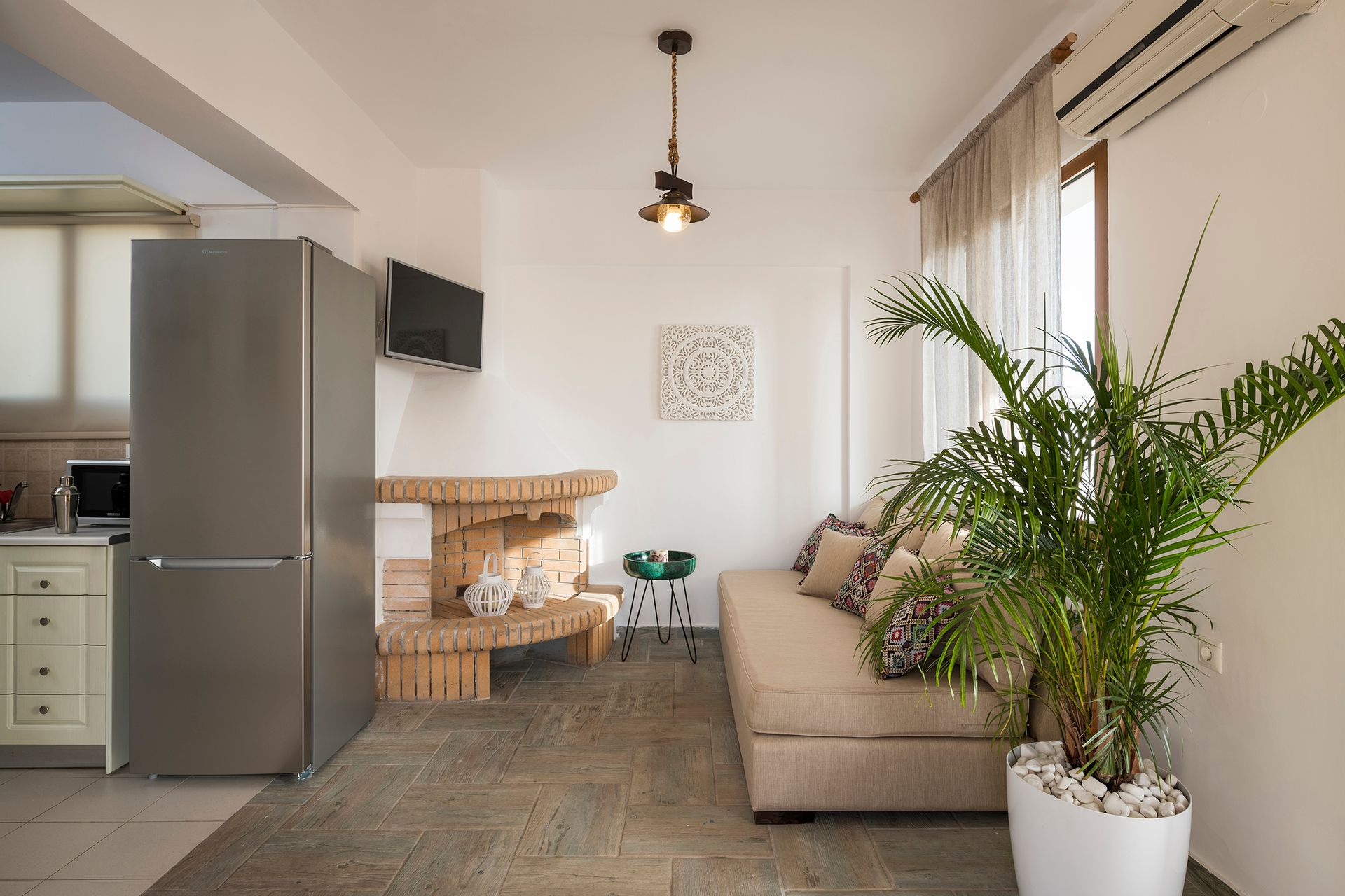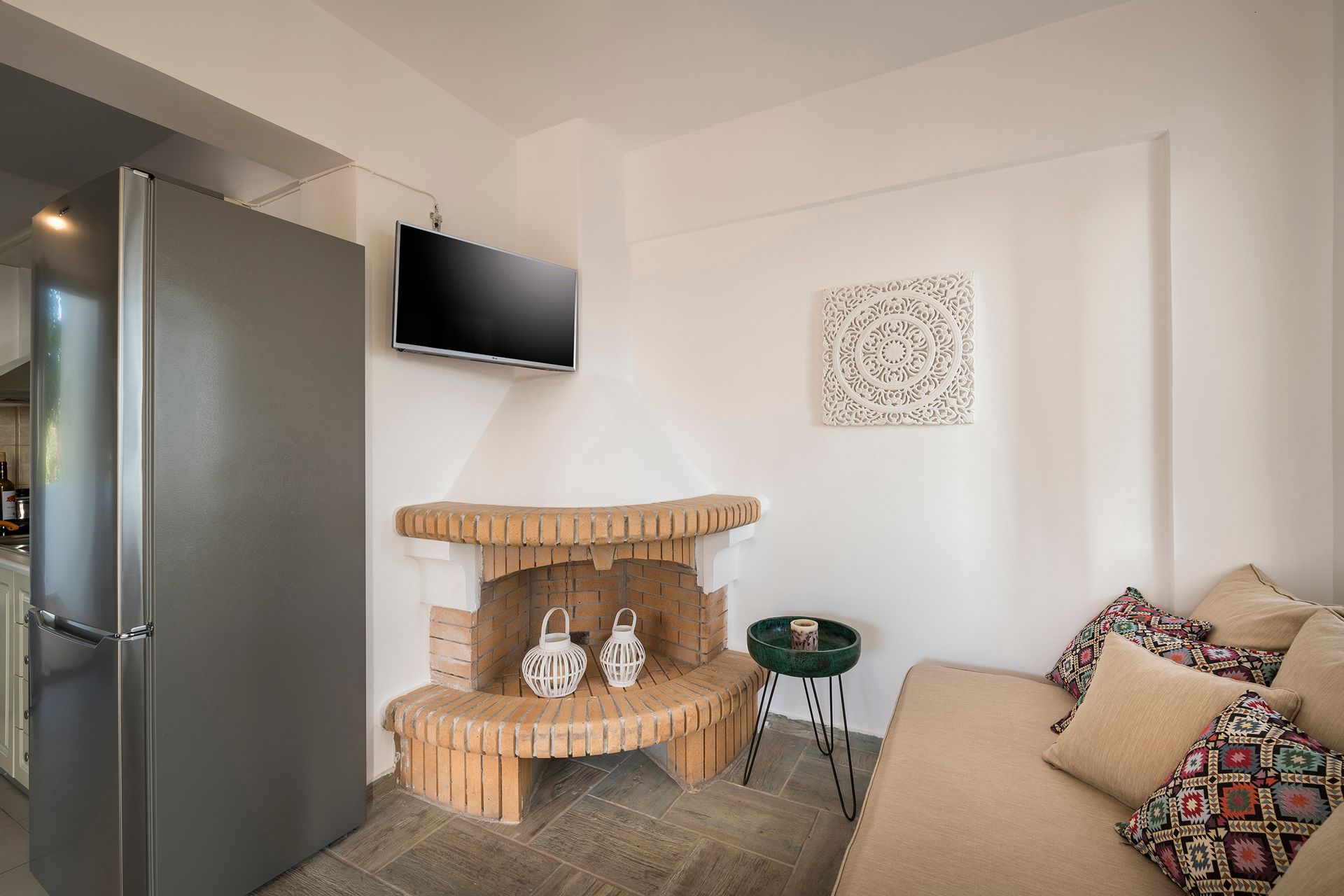 Both bedroom and living room have smart TVs. All rooms have Aircondition. Bedroom enjoys views to the sea and the pool.Heated pool during summer months upon request an extra charge €30/ day