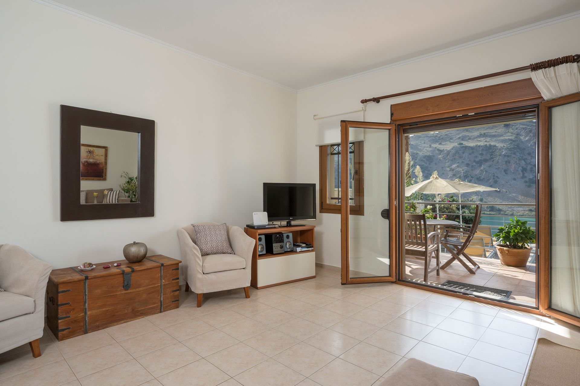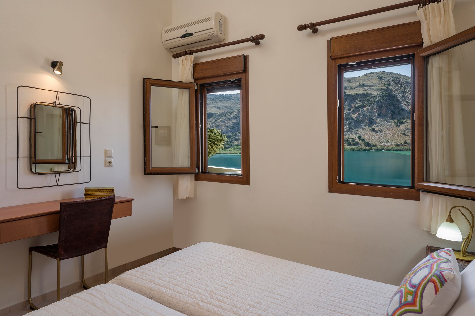 Villa offers unique views of the lake and views of Chania mountains! It is located in the most panoramic point of the region of Kournas, with many restaurants nearby with the famous Cretan cuisine. It is 4 km from the largest sandy beach of Crete. It is located between two major romantic cities, Chania is 30 km away and 35 km from the city of Rethymnon.