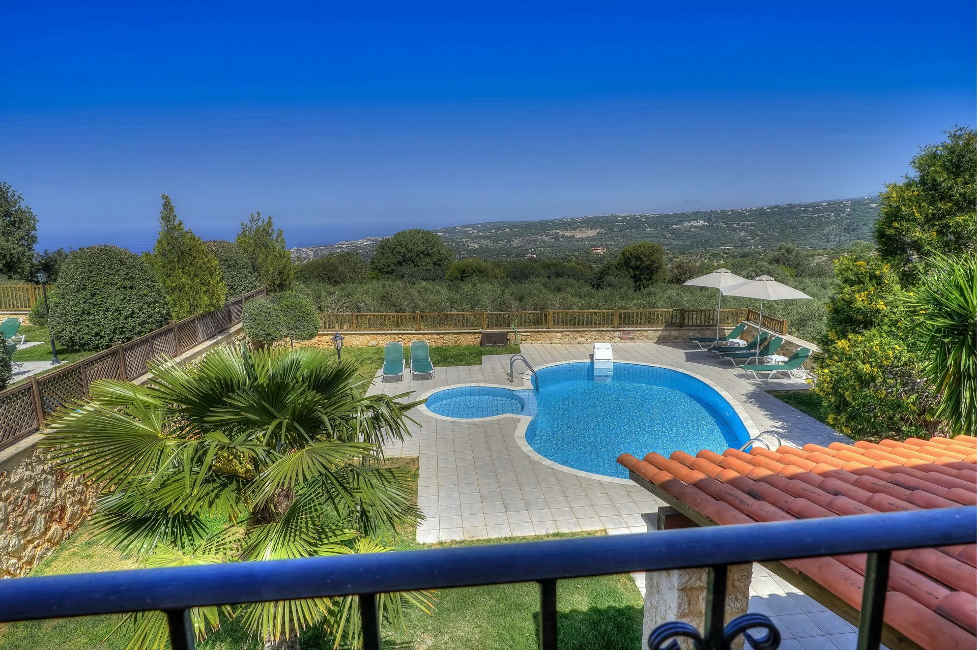 Chic and Comfortable Elessa Villa with spectacular views and landscape, beautifully furnished with private pool and garden near Gerani seaside village and Petres beach, and about 10 km from historic Rethymno city.