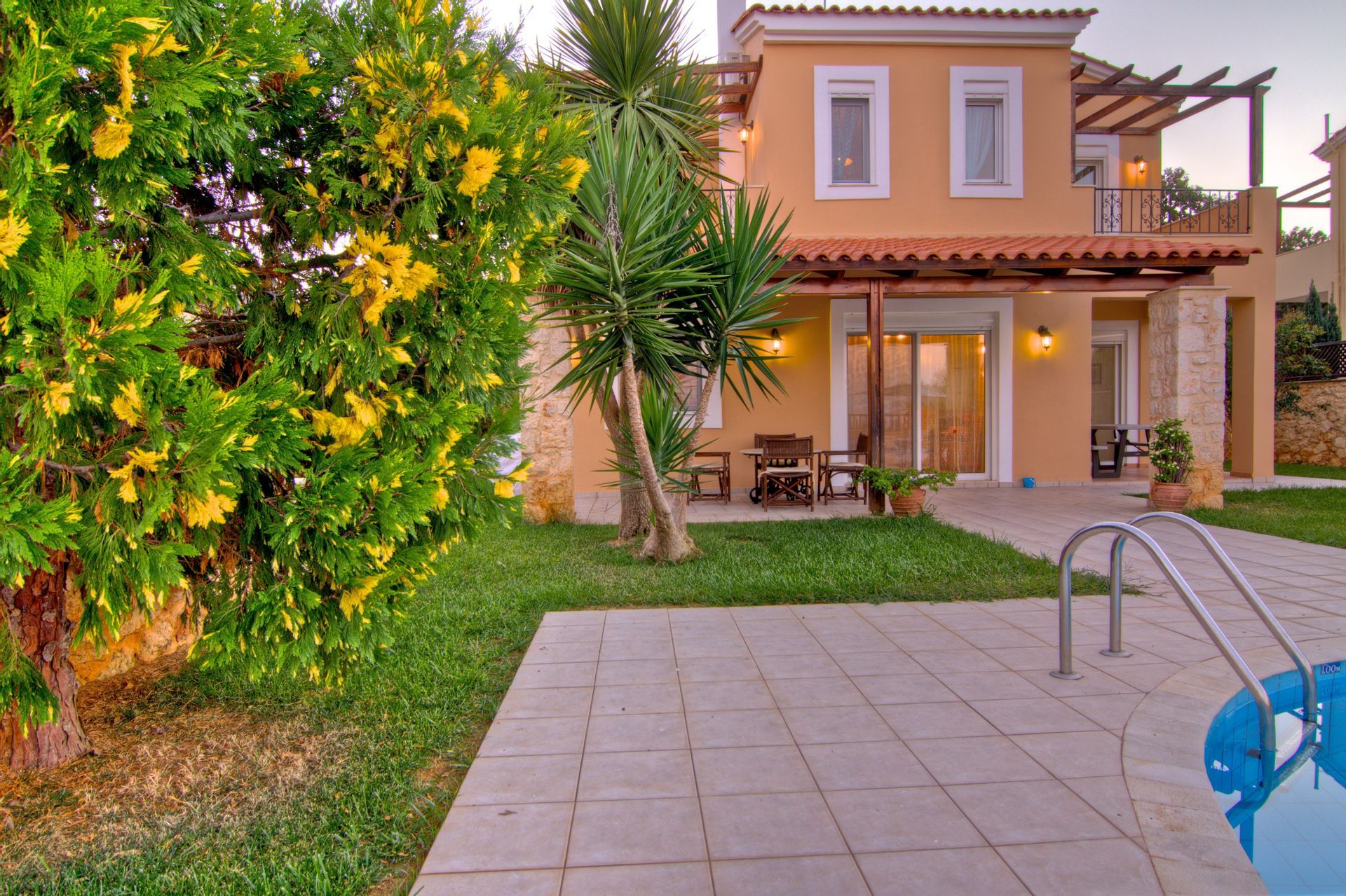 Elessa is part of Gerani Villas, four modern and spacious detached holiday homes with a private garden with swimming pool and sun terrace belongs to each villa. The property is set in Gerani, a quaint seaside village surrounded by orange, olive, cypress and pine trees. Just 5 km west, the bridge over Petres river marks the beginning of one of Crete's most beautiful sandy dream beaches. Gerani is a charming coastal village which is known for its long shoreline and the archaeologically impressive Gerani Cave, located on the outskirts of Rethymno town which boosts history and a rich culture. The broader area is perfect for guests who want to lounge on the secluded and spacious beach, hike the surrounding hills and enjoy the sleepy ambience of this traditional town. During the season, plenty of sports, watersports and dive centers are on offer on the beaches of Rethymnon (10 km), Kavros (13 km) and Giorgioupolis (19 km).