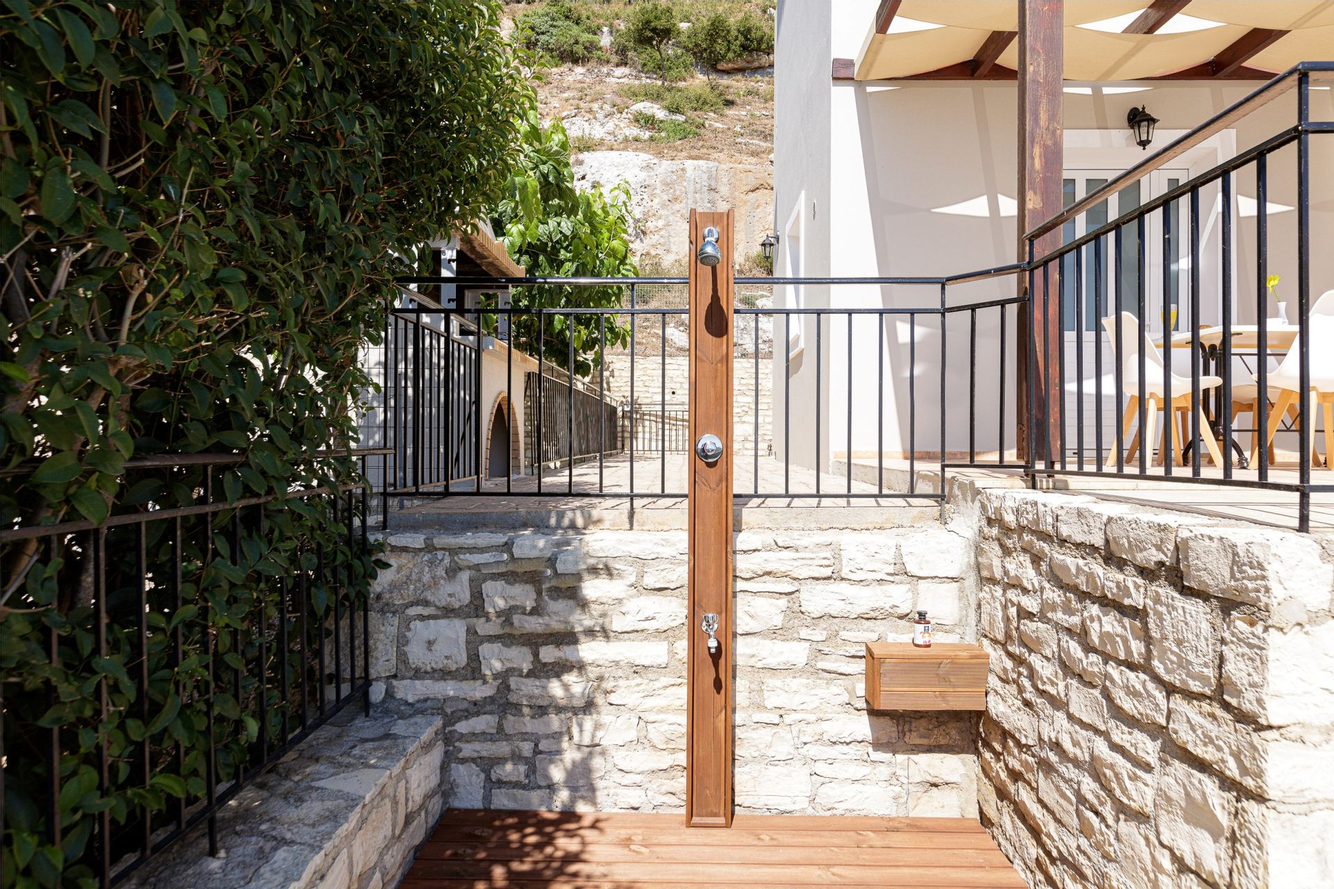 Eros Villa is set at a privileged spot of Agia Triada, a serene village perched on a hillside on North Crete with an unlimited and a panoramic view of the Cretan sea, about 10 km from the old historical town of Rethymno and 3 km from the nearest sandy beach of Adele (Adelianos Kampos). Near the villa you can find grocery shop, coffee shop and bakery. Eros Villa is part of “Agios Antonios Villa Complex”, built in tranquil area full of olive groves, near the historic Arkadi Monastery and the ancient city of Eletherna and Museum. The homonymous Agios Antonios Gorge (or Patsou Gorge) starts just 800 meters away, with its water gathered in the picturestque wetland of Potami, located at the foot of Psiloritis Mountain (Ida). The Venetian Harbour of Rethymno, is the ideal place to enjoy fresh fish; Platia Tavern belongs to the villa owner and stand out for the delicious local recipes, such as the famous ntakos salad and apaki.