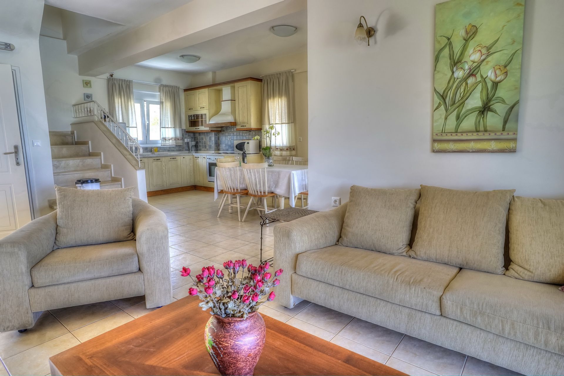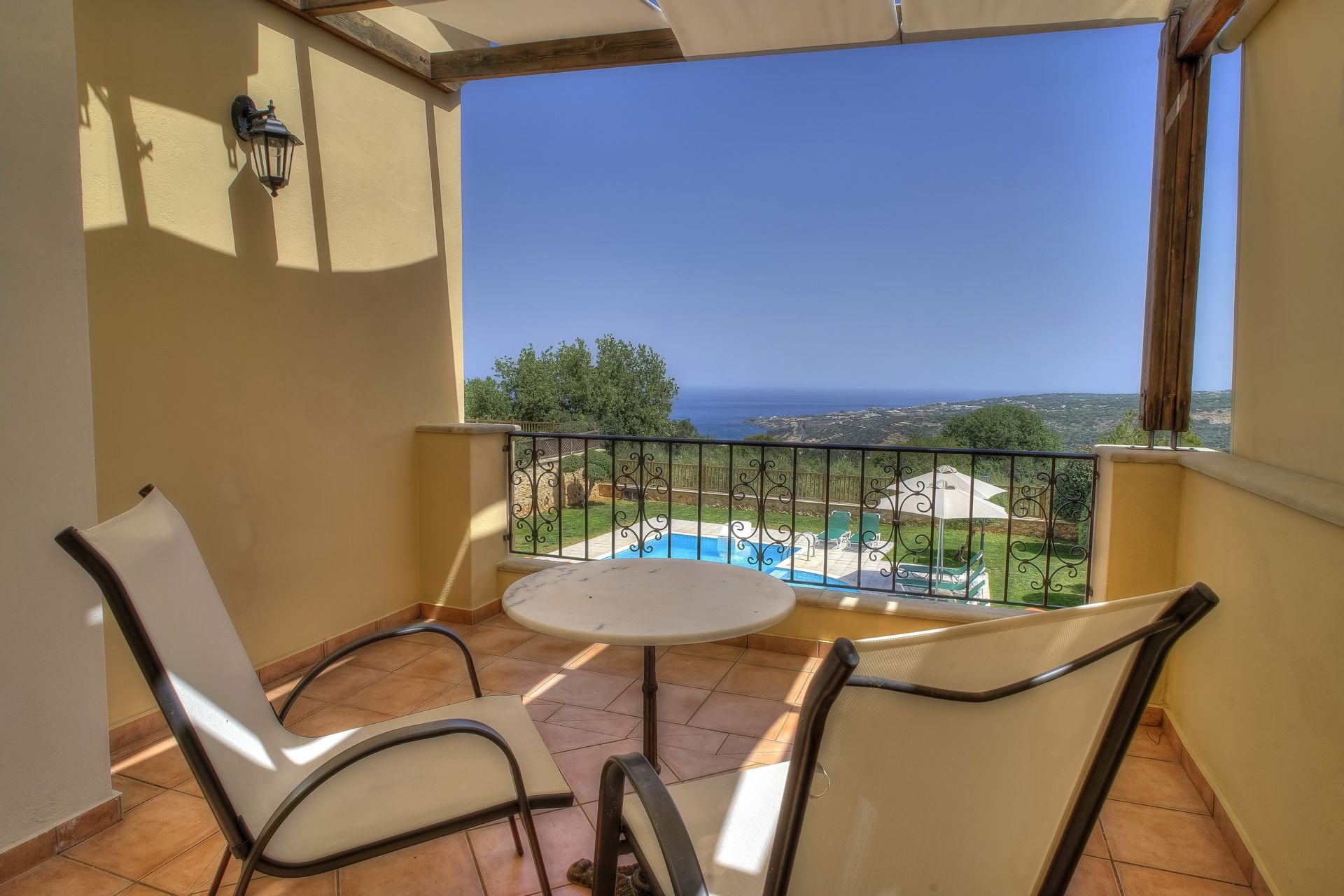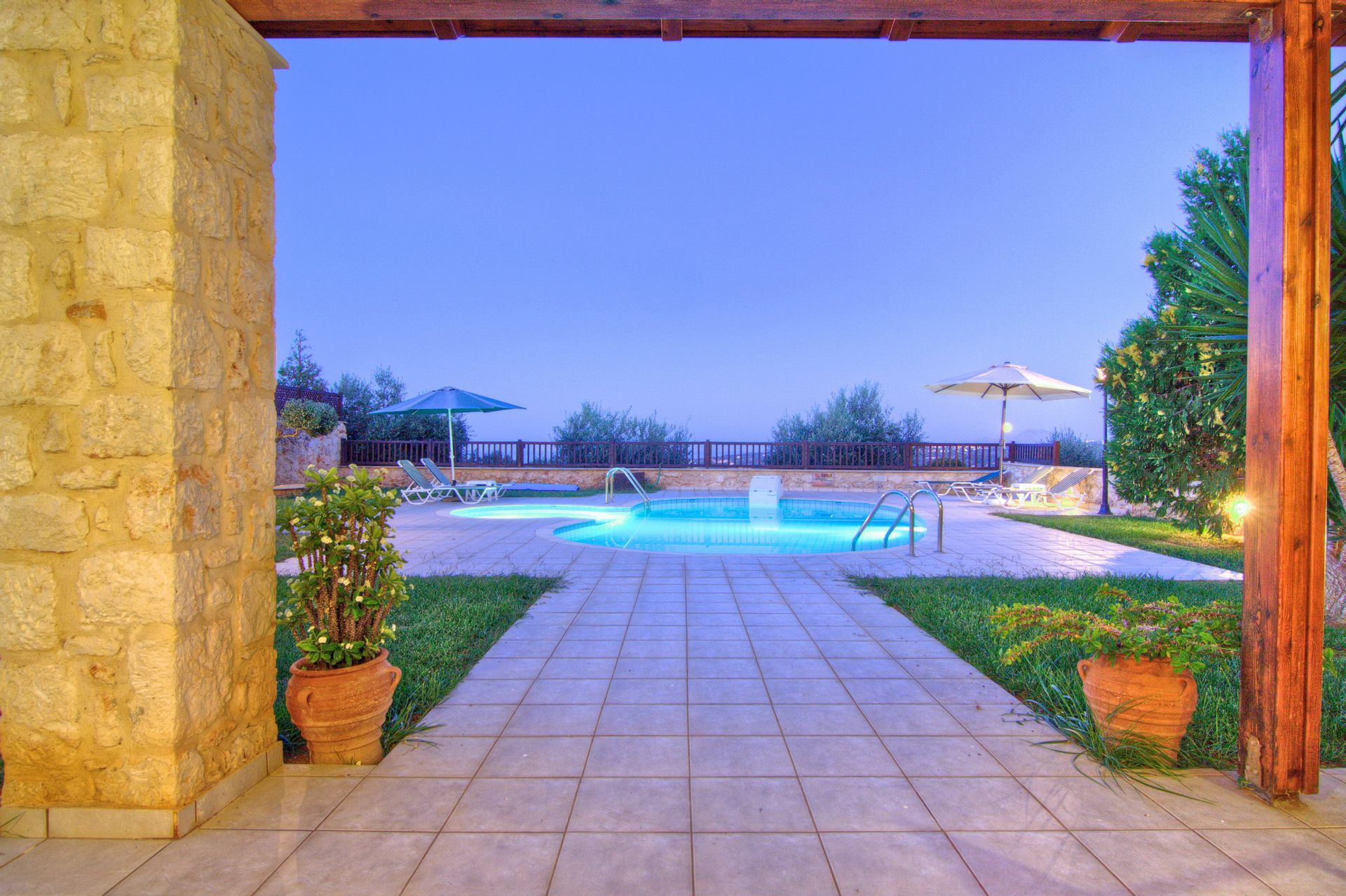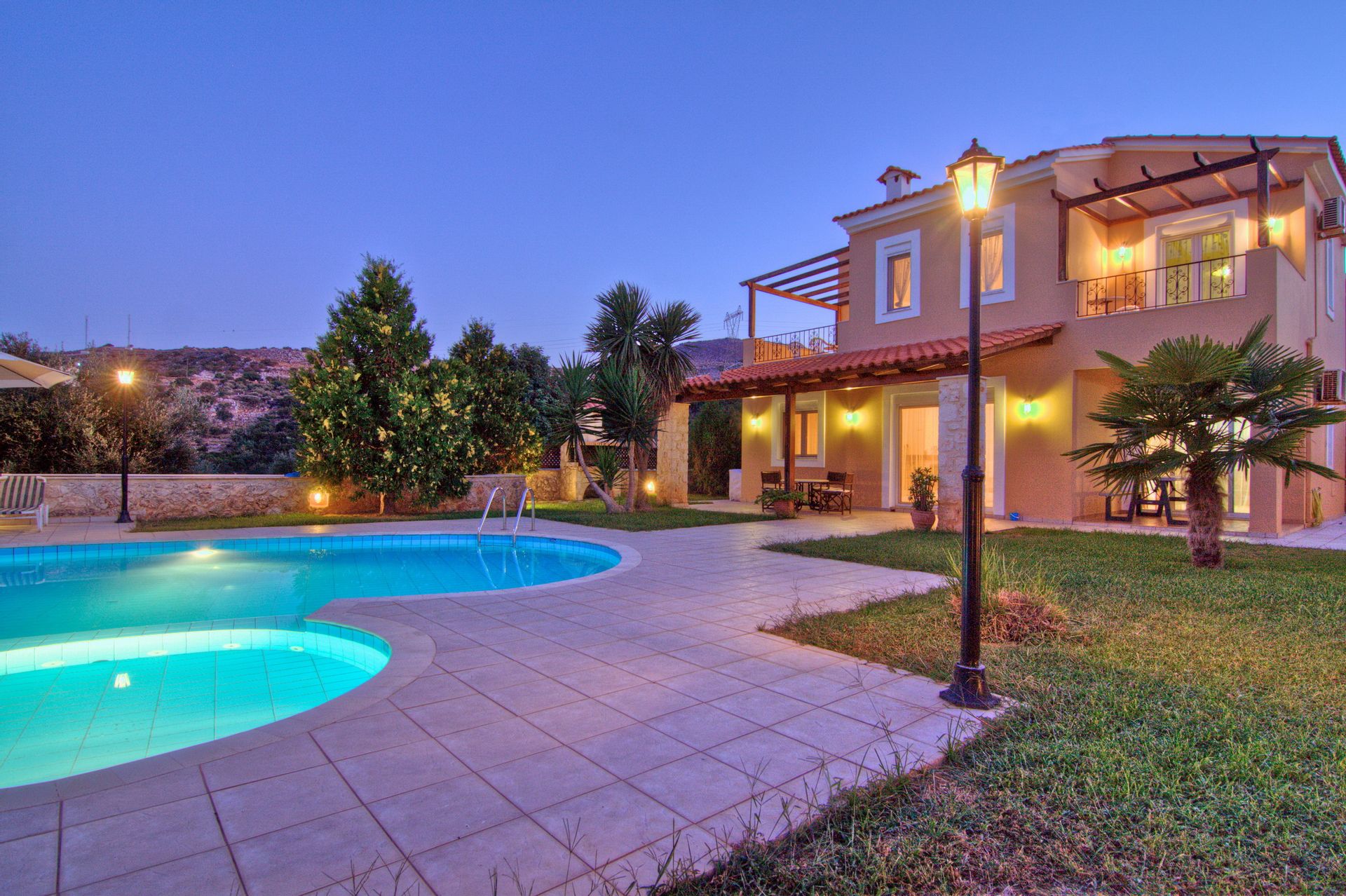 Modern family Anemoni Villa, a spacious detached holiday homes on the slope of a hill above Gerani coastal town, with a laid-back and low-key atmosphere, a private garden and a pool, proximity to a beach to play on the golden sands, swim or lie on a beach below.