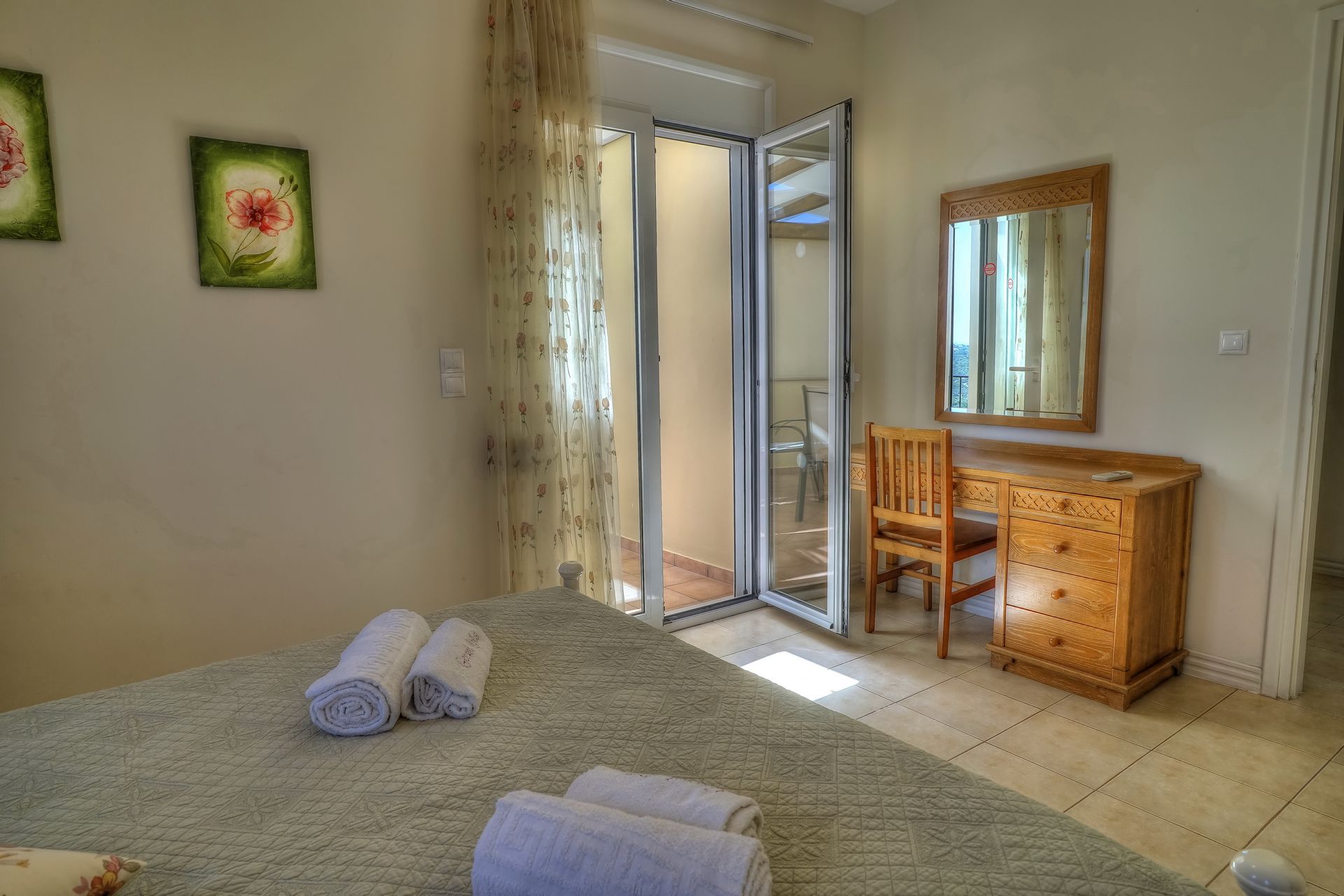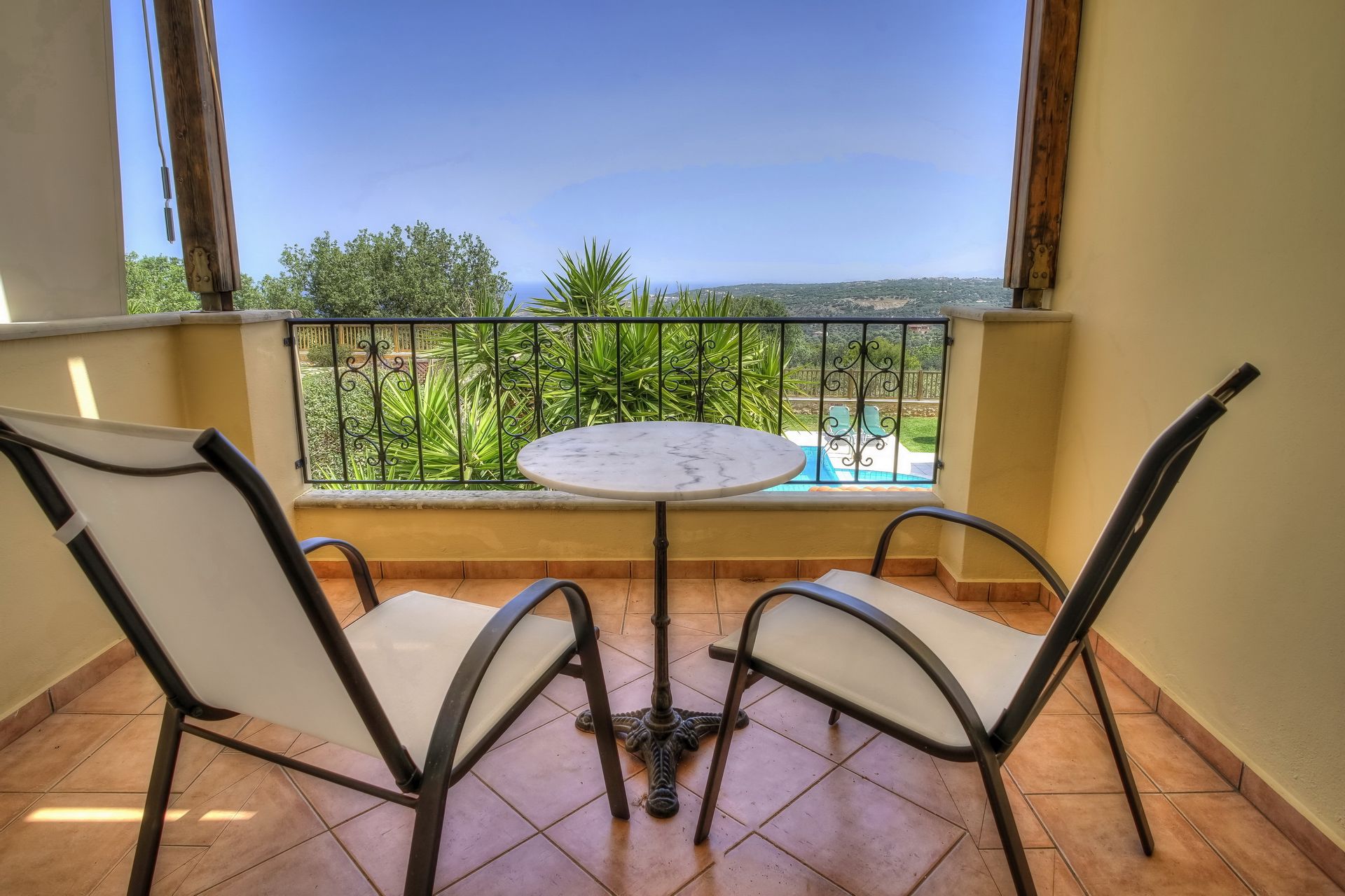 Anemoni Villa greets guests with its wonderful building and layout blending simplicity and comfort in a gorgeous environment with great views overlooking a quaint village and enjoying particularly beautiful views of the small bay and the Aegean Sea. Just 5 km west, the bridge over Petres river marks the beginning of one of Crete's most beautiful sandy dream beaches. Anemoni Villa is an entire private villa with a garden and private pool which is aimed at providing you with a perfect, luxurious & relaxed stay. It stands in a privileged geographical position which, even though quiet, and secluded, allows you to easily travel to the beautiful little settlement of Gerani, the long sandy beaches of Petres, Kavros or Giorgioupolis, and the towns of Rethymno and Chania. Indoors, the ground floor is composed of a living room with a suite, satellite color TV and open fireplace, a dining area with an integrated open-plan kitchen, a bedroom with a double bed and balcony, a bathroom with a shower and a storage room. The first floor, reached by a staircase is composed of a second bedroom with a double bed and balcony, a third bedroom with two single beds and balcony and a bathroom with a bathtub. Framed by walls of natural stone, the outdoor space of Anemoni Villa is perfect to spread out, relax and play games. It consists of a 40m2 swimming-pool with paddling-pool, a sun terrace with garden furniture, sunbeds and umbrellas, as well as a garden with lawns and ornamental plants. The BBQ facility of the villa is the ideal setting to enjoy grill lunch or dinner with friends and family. With its own plot and amazing panoramic views, Anemoni Villa is inspired by the modern private living vacation model in order to provide an integrated, playful & fulfilling experience during your time off in Crete.