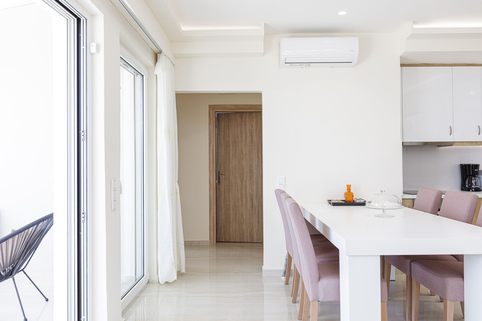 Villa Gloria is fitted out with a sophisticated, modern kitchen with an oven, microwave, dishwasher, refrigerator, and freezer, as well as a coffee machine, toaster, and kettle. In addition, there is a mixer, blender, water filter, juicer, and egg machine offered for visitors’ convenience. There is also a cozy dining area with ample seating.