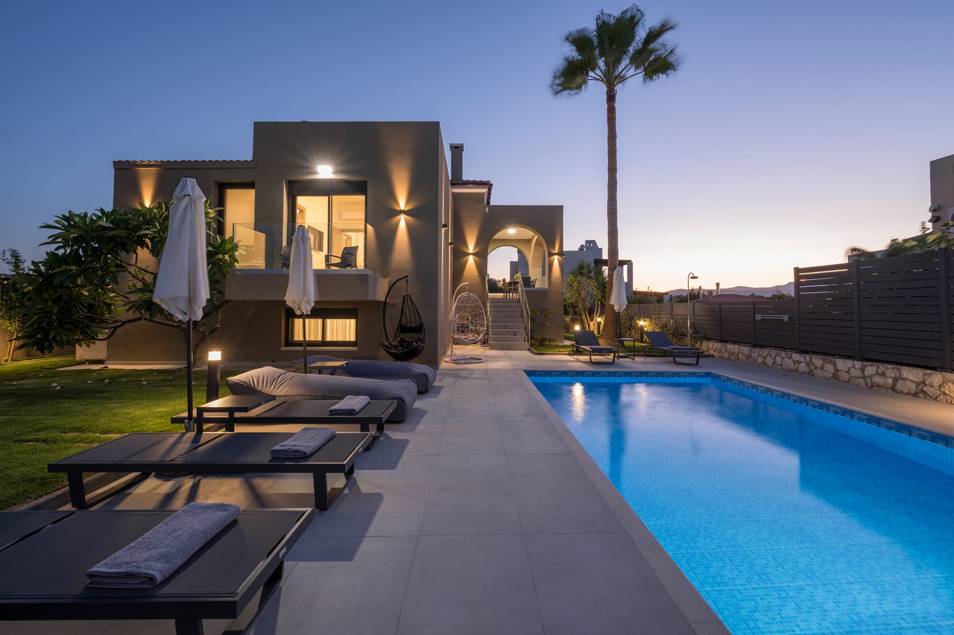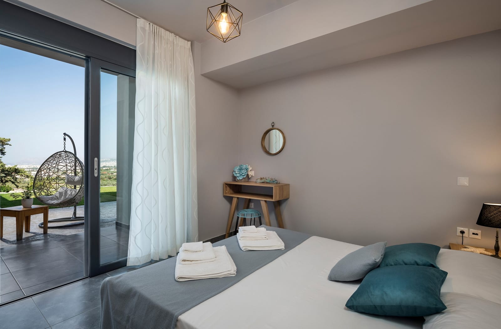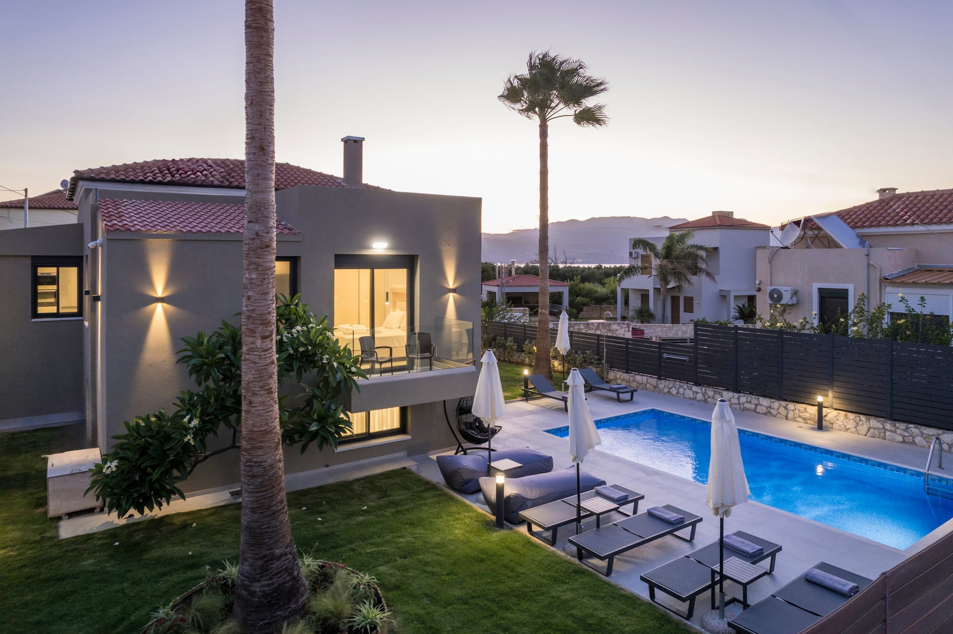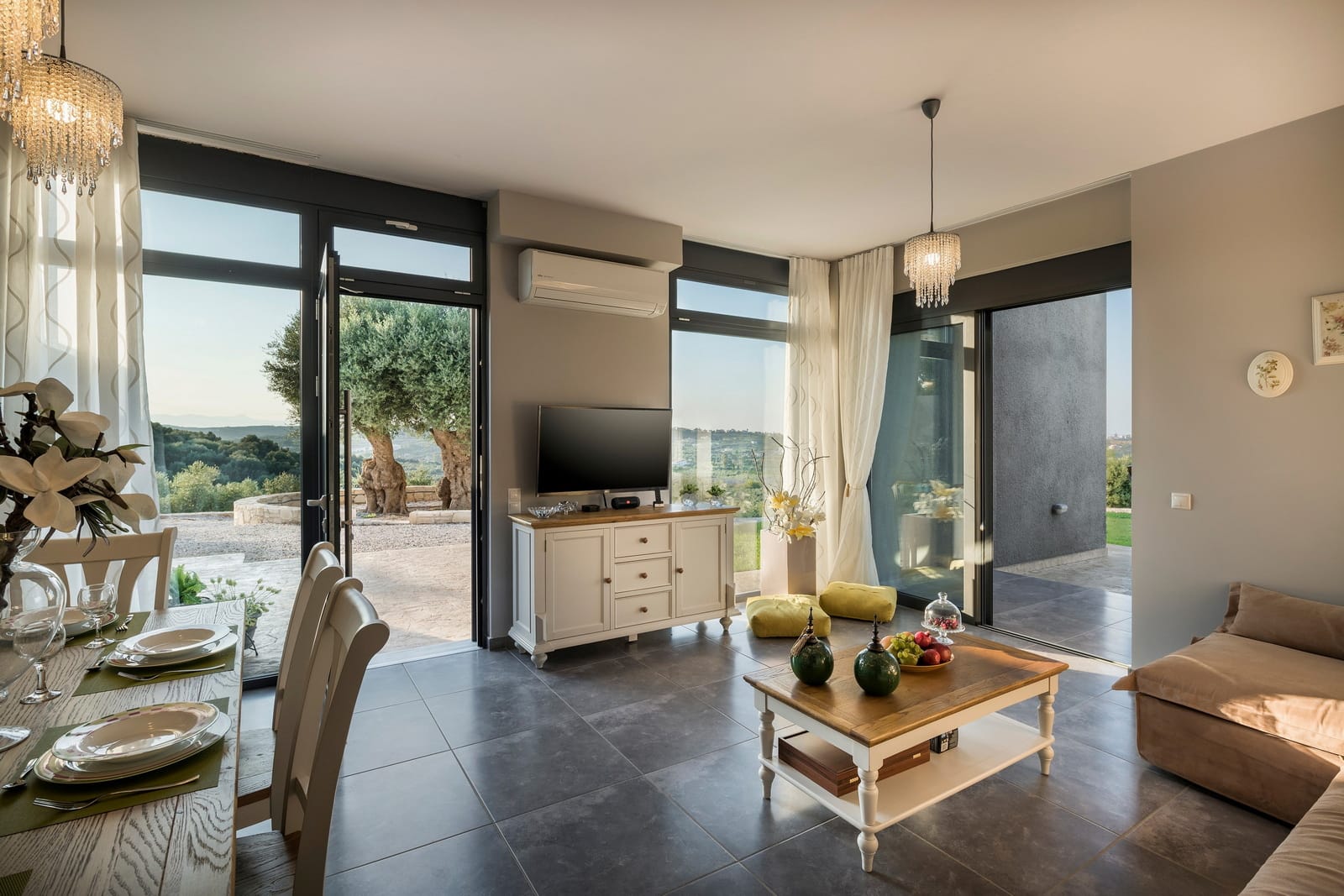 Olivenest Villa is located in Perivolia village, very close to the historic city of Chania (6.1 km), at an altitude of 90 m., In the foothills of the White Mountains, overlooking the city and the Cretan sea. Numerous shops for the daily supplies are located close to the villa. In the picturesque alleys of Chania you can find many souvenir shops, jewelry shops and atmospheric restaurant. Olivenest Villa is found in a strategic location to explore Western Crete’s attractions and more than 50 beautiful beaches. The closest organized beach Nea Chora is only 10 minutes ’drive, but you can head west to discover the turquoise-watered and pink-colored beaches of Falassarna, Balos lagoon and Elafonissi. Visit Paleochora for its six beautiful beaches and amazing local food to taste in tavernas. Samaria and Irini gorges are every nature lovers ’dream in Crete. The view from the archaeological site of Aptera is fantastic, from where you can see the entire gulf of Souda and part of Apokoronas.