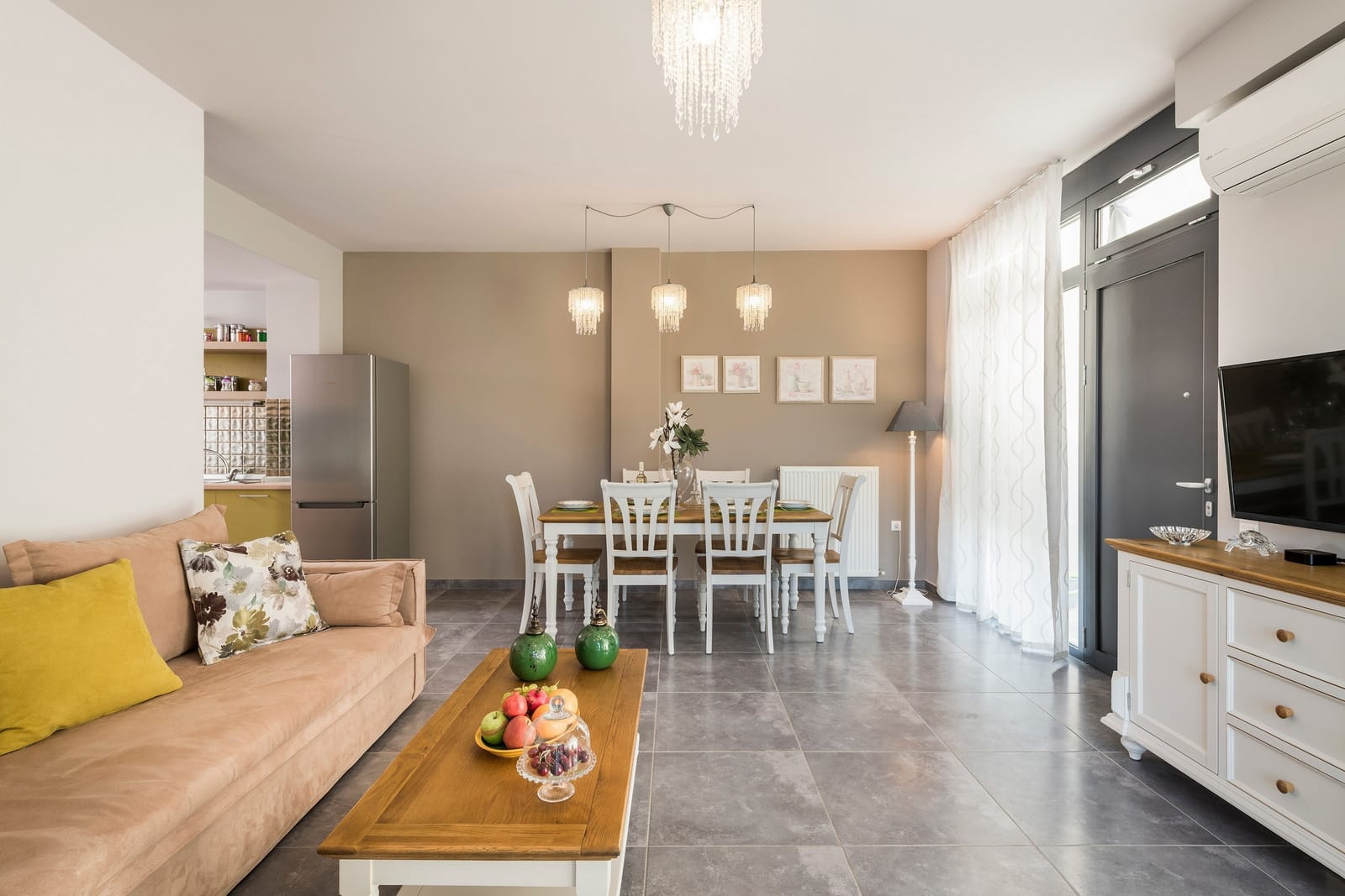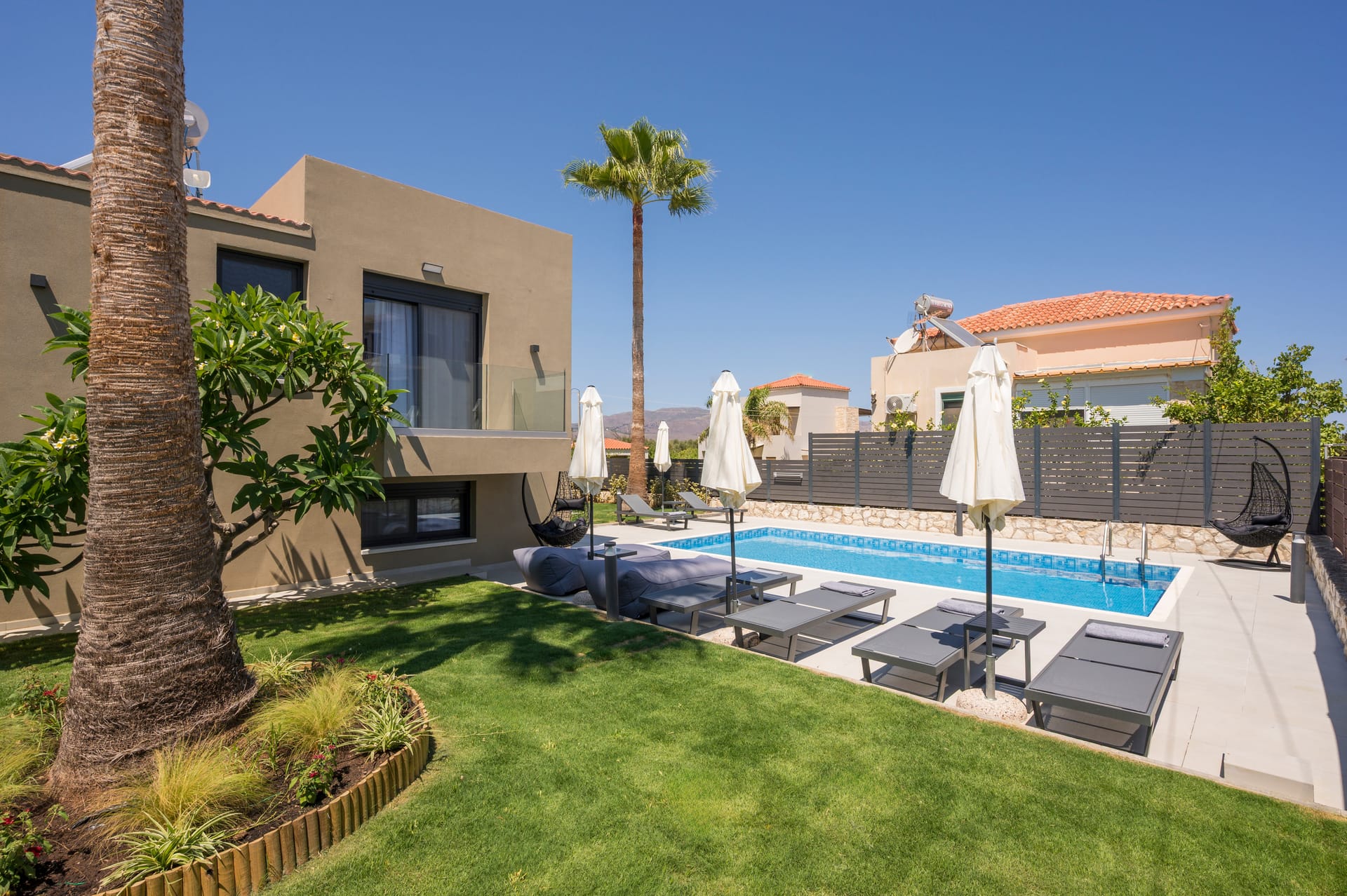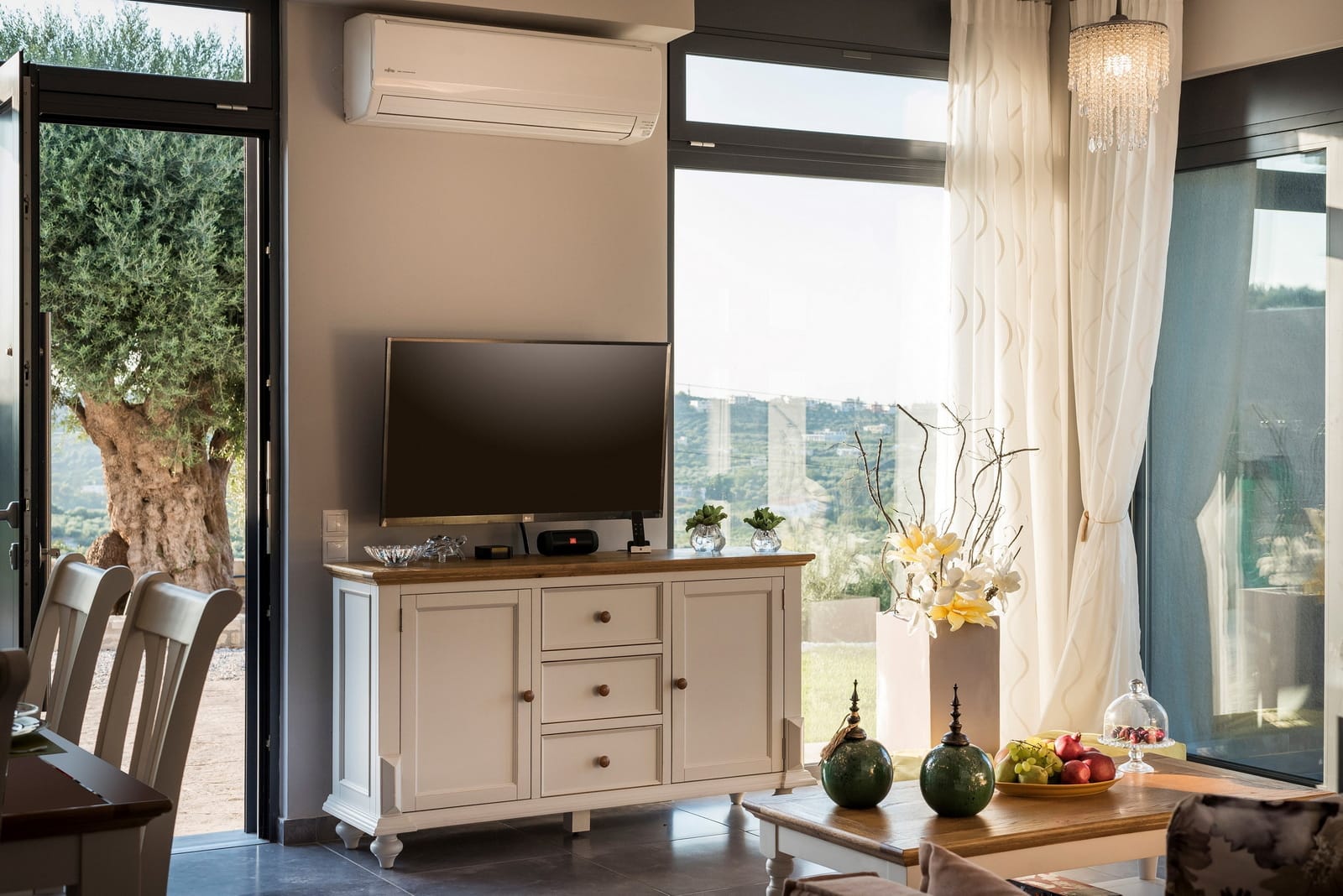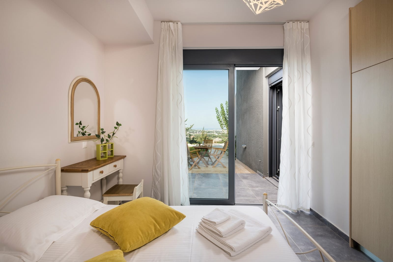 Olivenest Villa is located in Perivolia village, very close to the historic city of Chania (6.1 km), at an altitude of 90 m., In the foothills of the White Mountains, overlooking the city and the Cretan sea. Numerous shops for the daily supplies are located close to the villa. In the picturesque alleys of Chania you can find many souvenir shops, jewelry shops and atmospheric restaurant. Olivenest Villa is found in a strategic location to explore Western Crete’s attractions and more than 50 beautiful beaches. The closest organized beach Nea Chora is only 10 minutes ’drive, but you can head west to discover the turquoise-watered and pink-colored beaches of Falassarna, Balos lagoon and Elafonissi. Visit Paleochora for its six beautiful beaches and amazing local food to taste in tavernas. Samaria and Irini gorges are every nature lovers ’dream in Crete. The view from the archaeological site of Aptera is fantastic, from where you can see the entire gulf of Souda and part of Apokoronas.